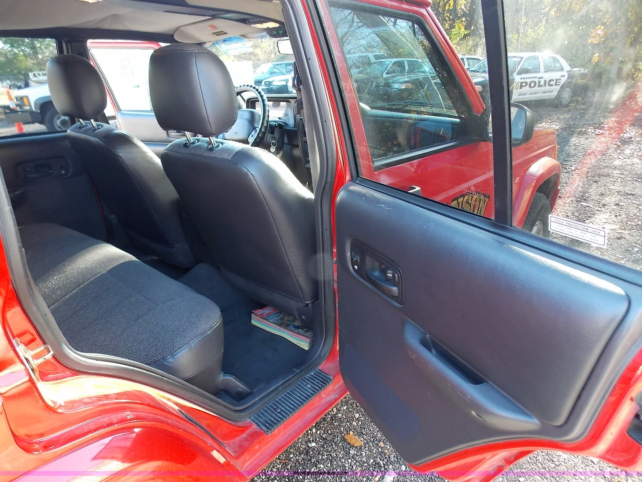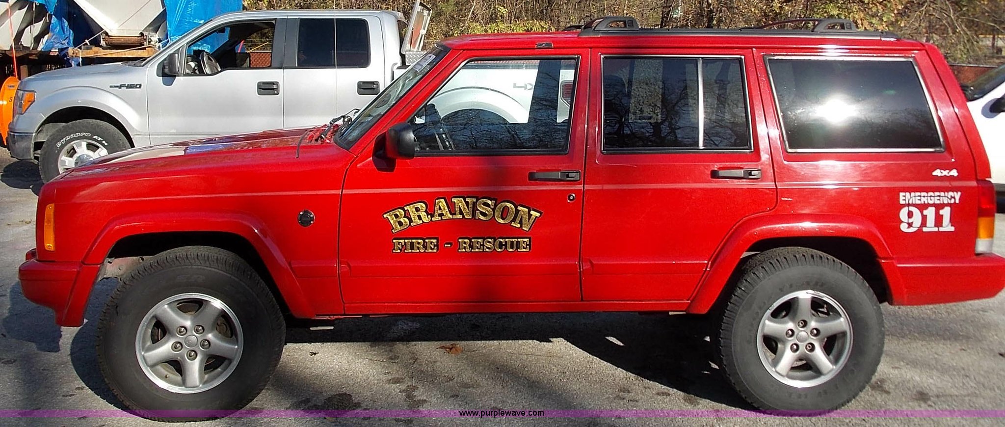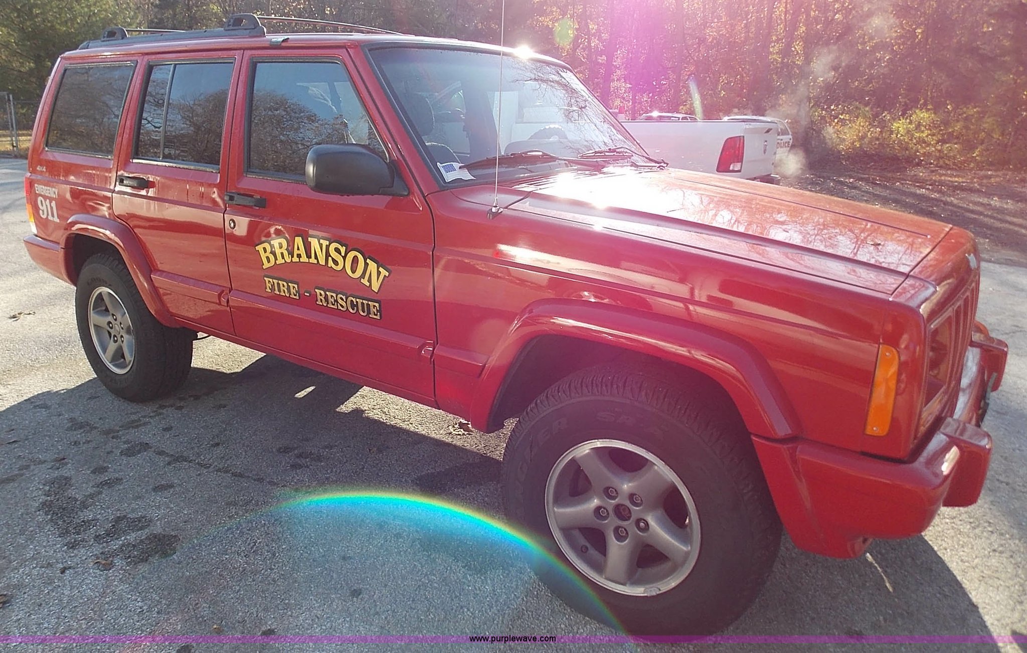 1999 Jeep Cherokee Sport SUV. 104,240 miles on odometer, 4.0L L6 OHV 12V gas engine, Automatic transmission, Four wheel drive, AC and heat, Tilt, Cruise, AM/FM/CD, Power windows, locks, and mirrors, Cloth interior, Schumacher battery charger/maintainer, Receiver hitch, Trailer wiring, 235/75R15 tires, Interior/exterior cosmetic damage, Dents and scratches, Headliner drooping, Dead battery. See special removal terms. Seller is a government entity who will be assigning and distributing the title. Please contact the seller for distribution questions. 1J4FF68S4XL617308. City of Branson. 625 Stockstill Lane. Branson, MO 65616