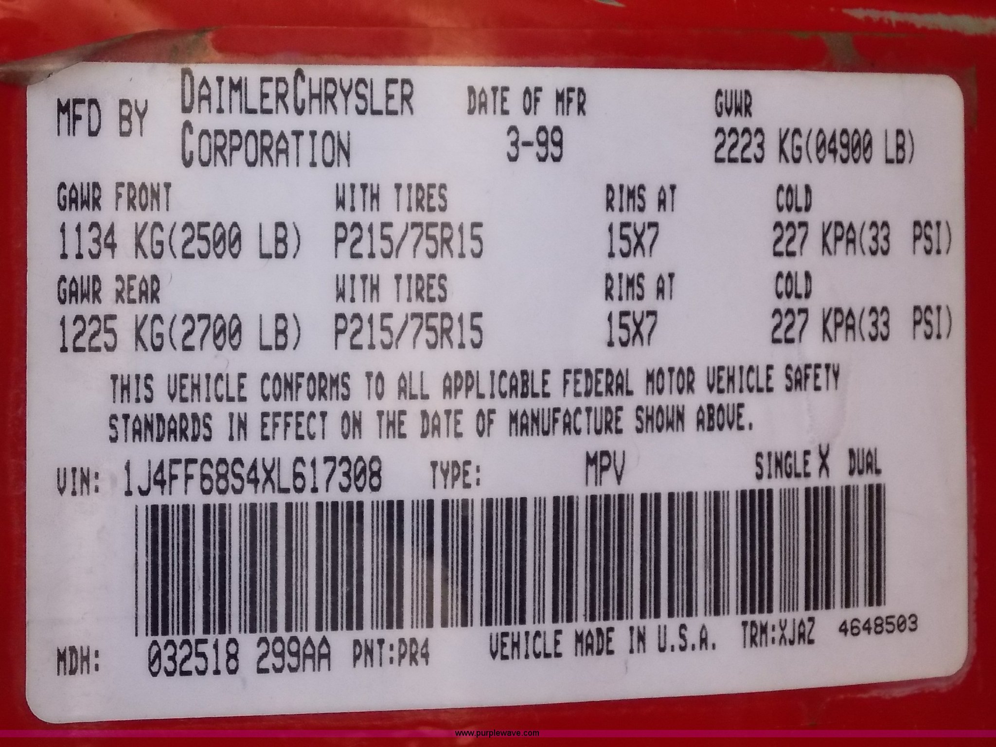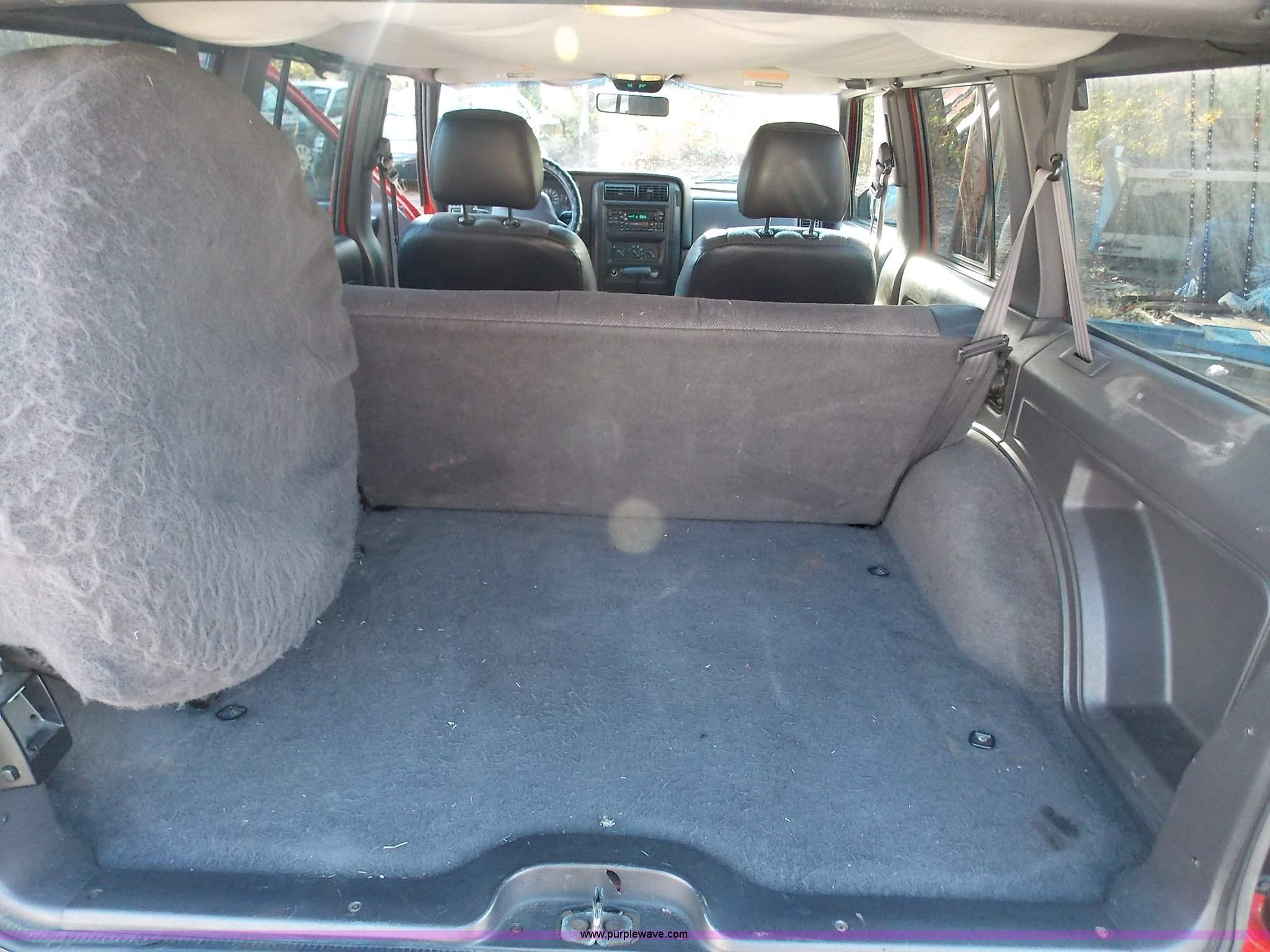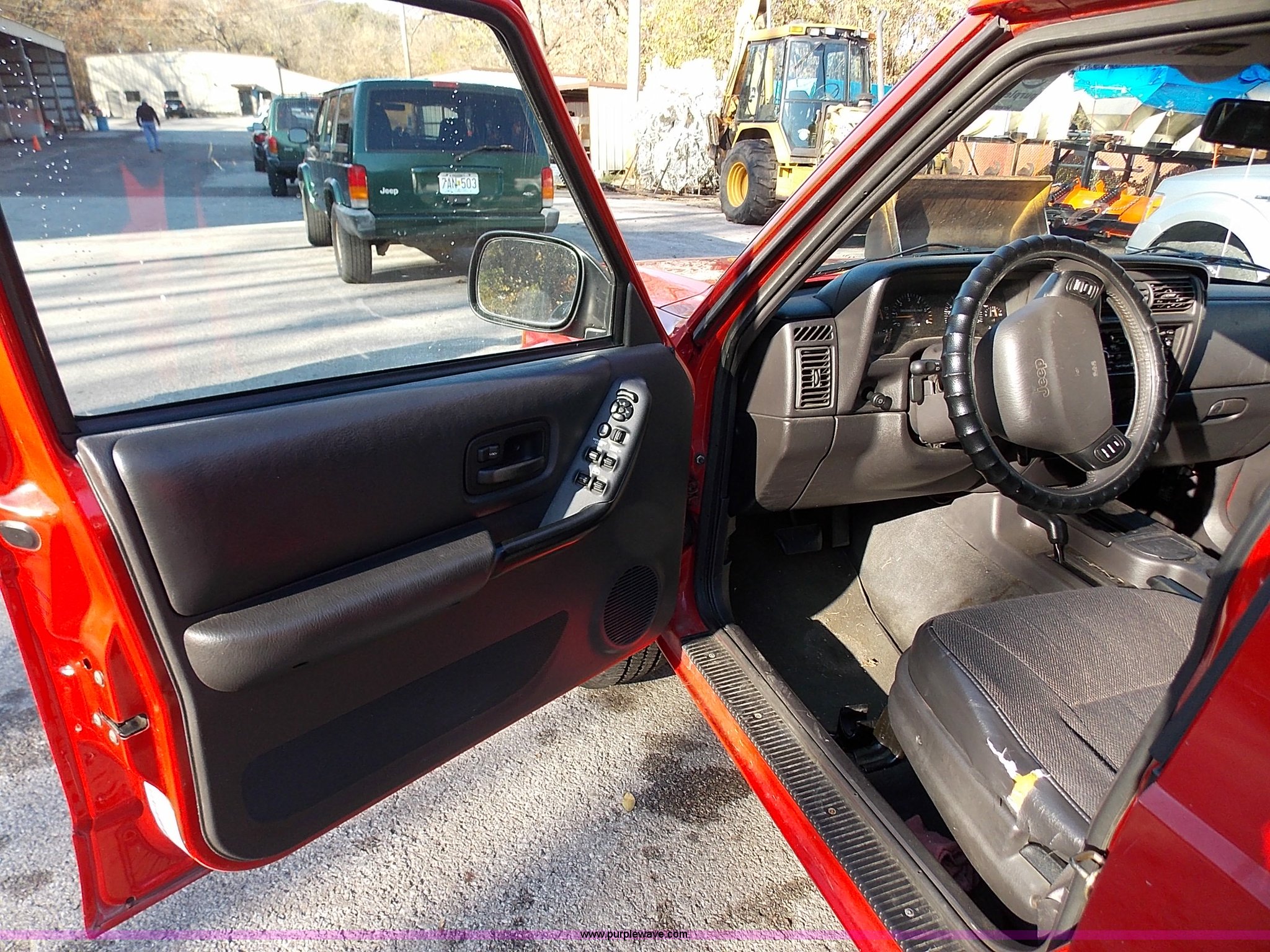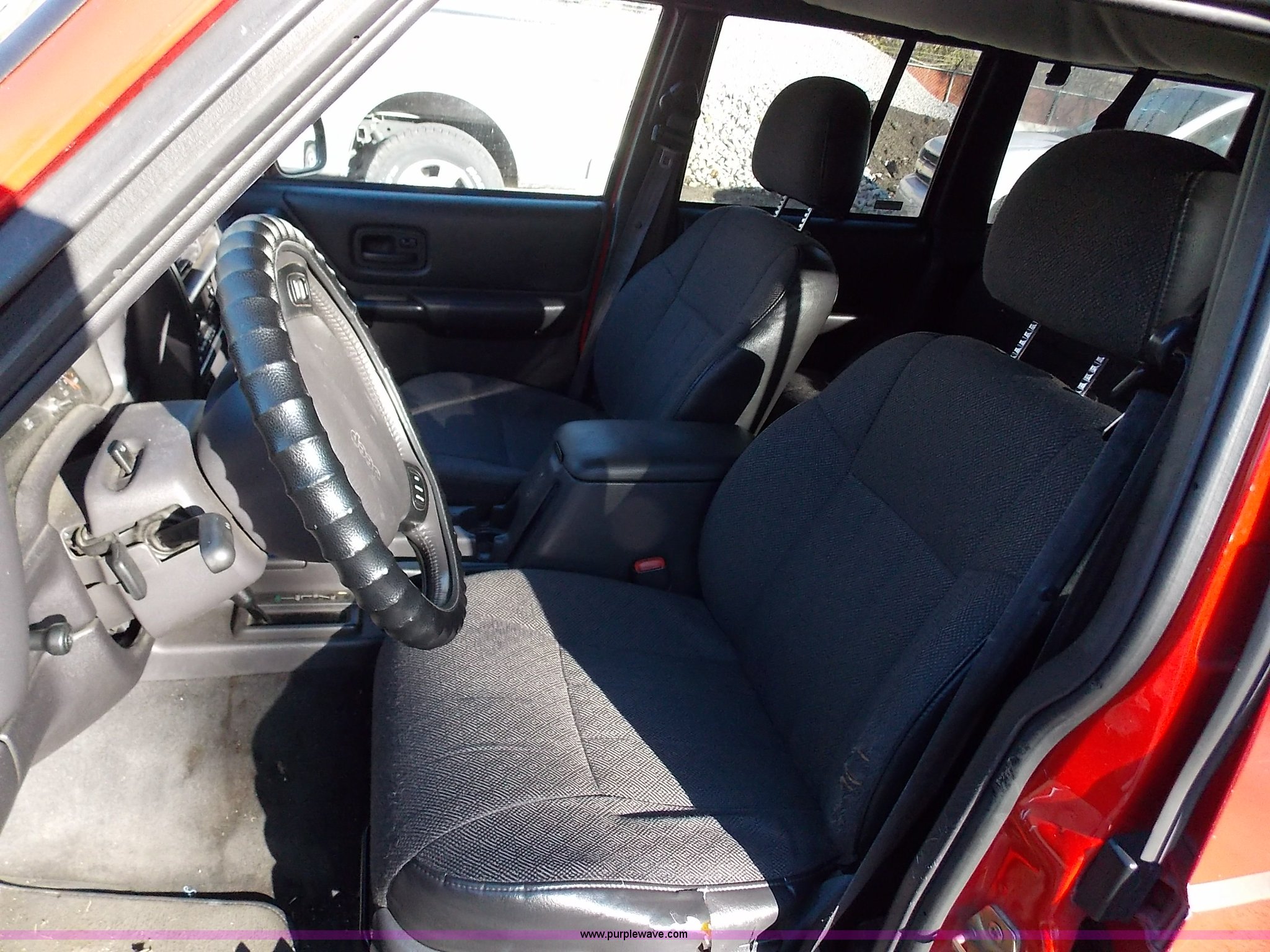 Purple Wave is selling a used Passenger Vehicle in Missouri. This item is a 1999 Jeep Cherokee Sport SUV with the following: 104,240 miles on odometer, 4.0L L6 OHV 12V gas engine, Automatic transmission, Four wheel drive, AC and heat, Tilt, Cruise, AM/FM/CD, Power windows, locks, and mirrors, Cloth interior, Schumacher battery charger/maintainer, Receiver hitch, Trailer wiring, 235/75R15 tires, Interior/exterior cosmetic damage, Dents and scratches, Headliner drooping, Dead battery