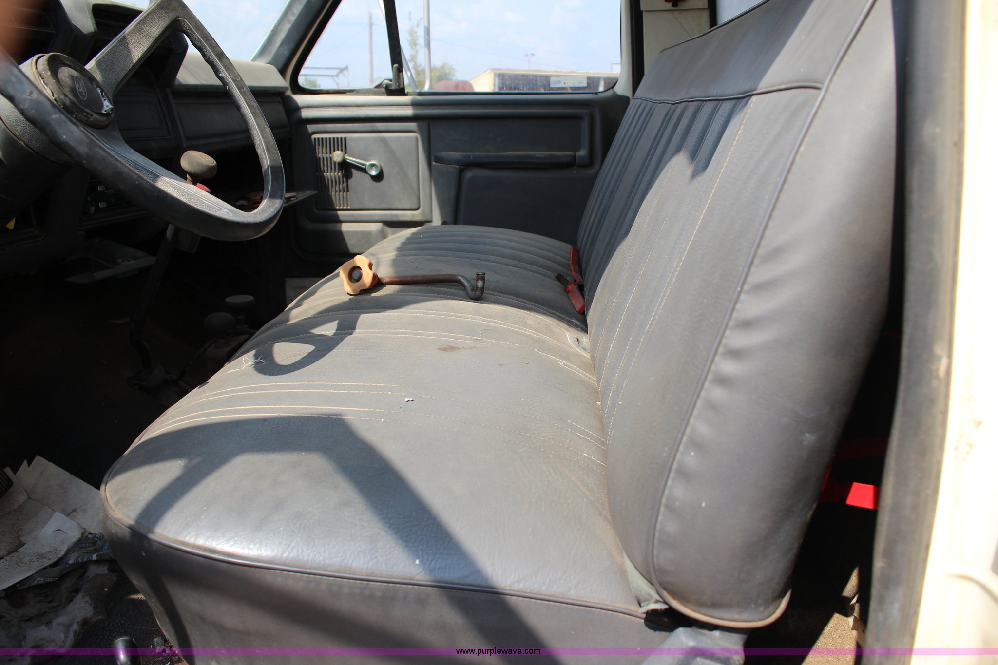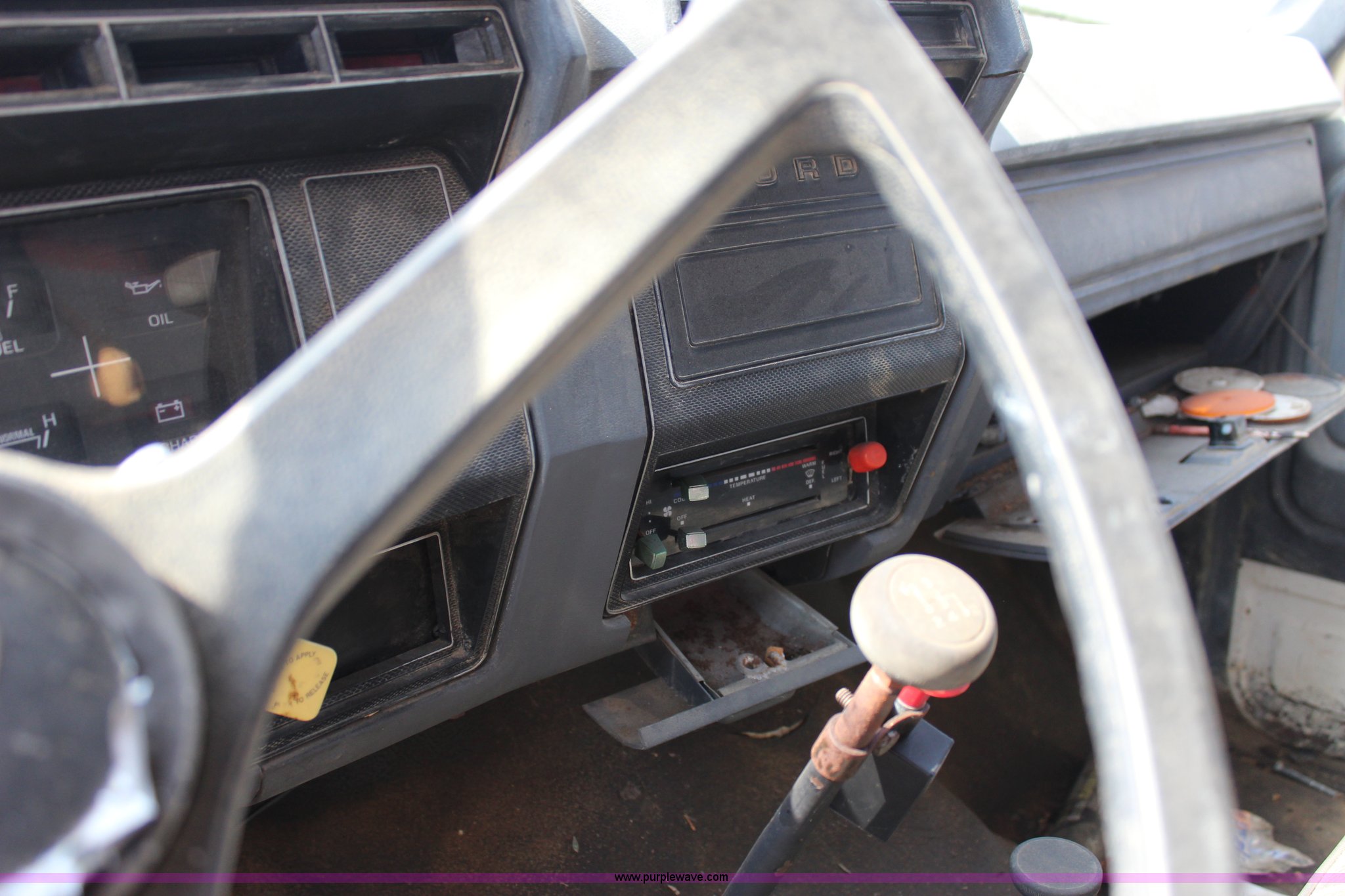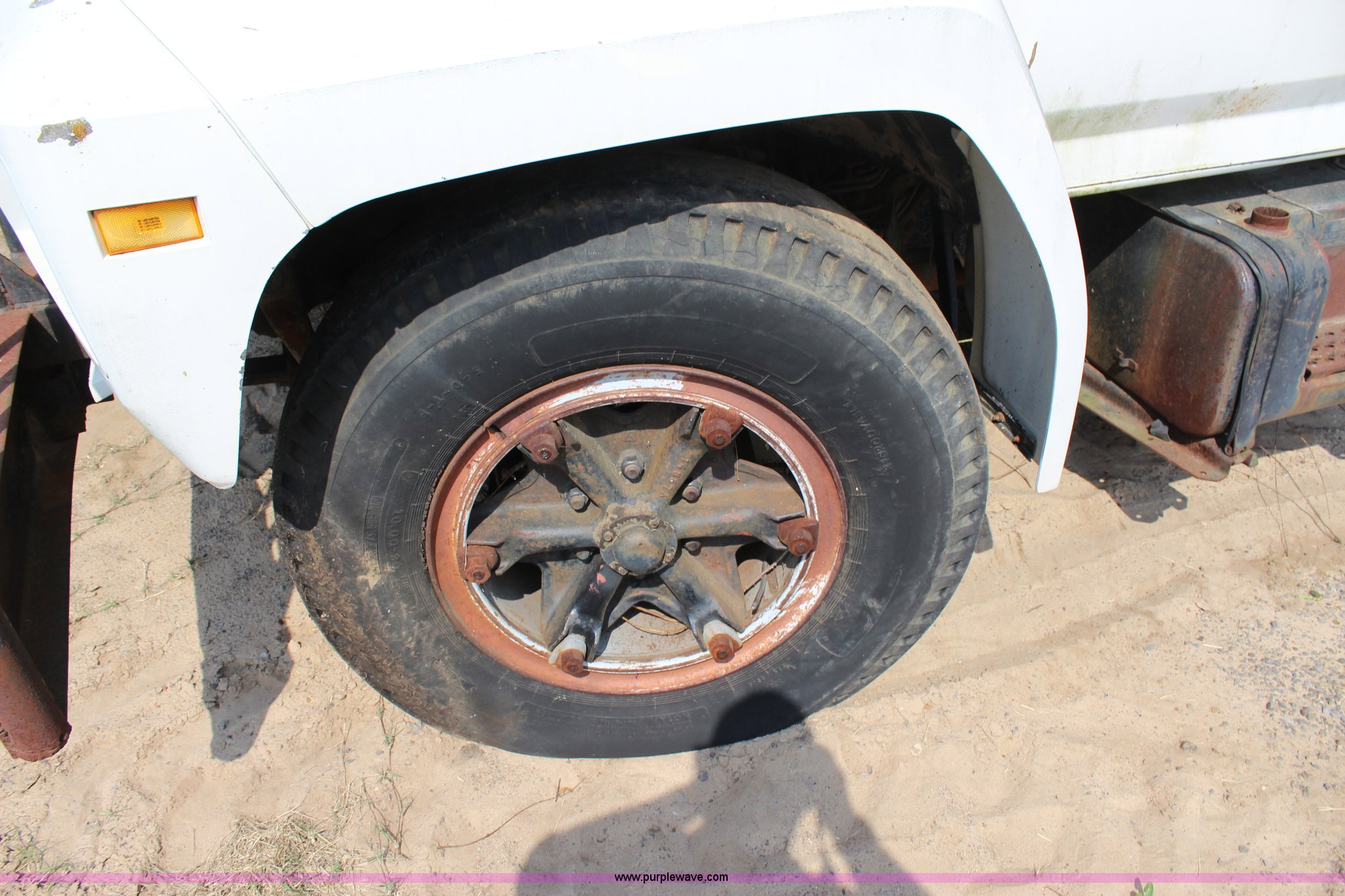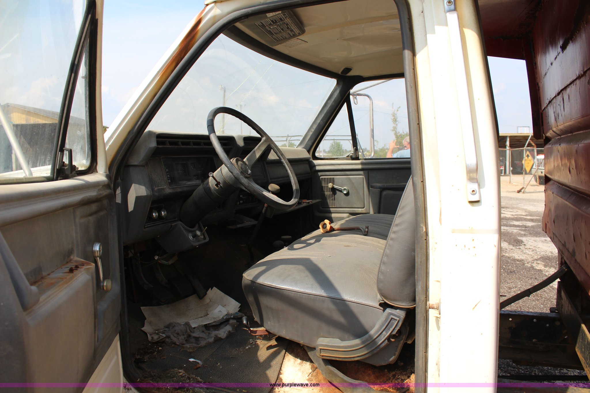 Purple Wave is selling a used Construction Dump Truck in Oklahoma. This item is a 1986 Ford F700 dump truck with the following: 45,771 miles on odometer, Ford 6.1L V8 diesel engine, Eight speed manual transmission, Two speed rear end, Single axle, AC and heat, Spring suspension seat, PTO, 10'L x 8'W steel dump bed, 27" side height, 18"H side boards, Manual operated end gate, Brush guard, Dual fuel tanks, 10.00-20 tires, GVWR 24,500 lbs, Tires flat, Unknown operating condition, Unit# 2