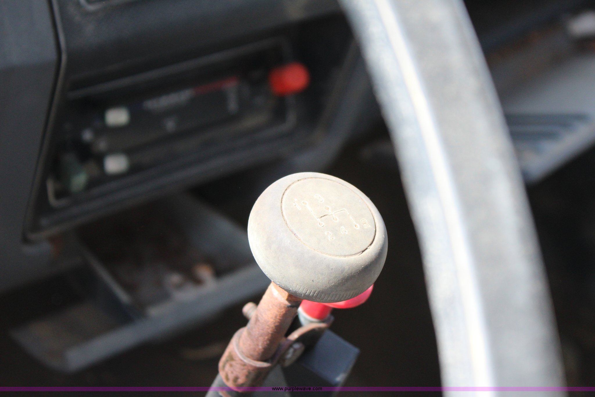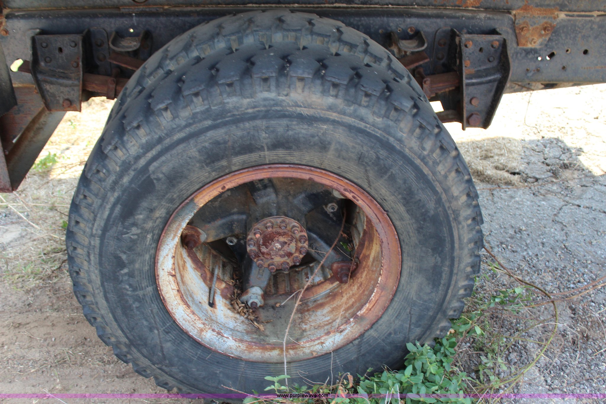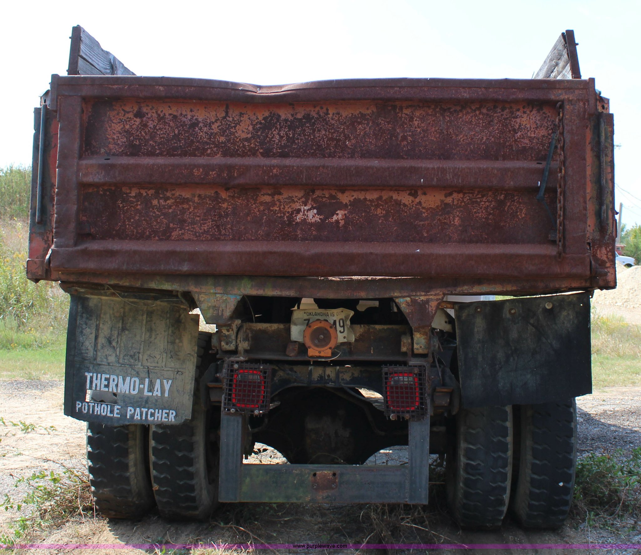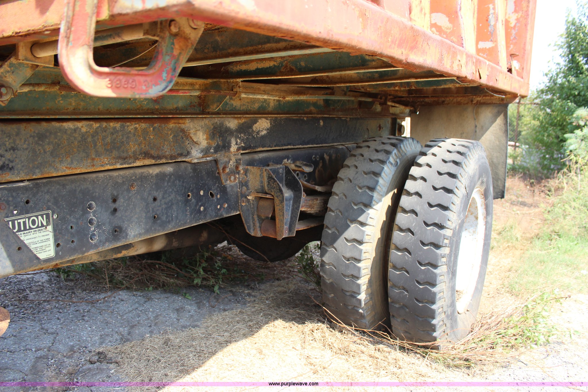 Purple Wave is selling a used Construction Dump Truck in Oklahoma. This item is a 1986 Ford F700 dump truck with the following: 45,771 miles on odometer, Ford 6.1L V8 diesel engine, Eight speed manual transmission, Two speed rear end, Single axle, AC and heat, Spring suspension seat, PTO, 10'L x 8'W steel dump bed, 27" side height, 18"H side boards, Manual operated end gate, Brush guard, Dual fuel tanks, 10.00-20 tires, GVWR 24,500 lbs, Tires flat, Unknown operating condition, Unit# 2