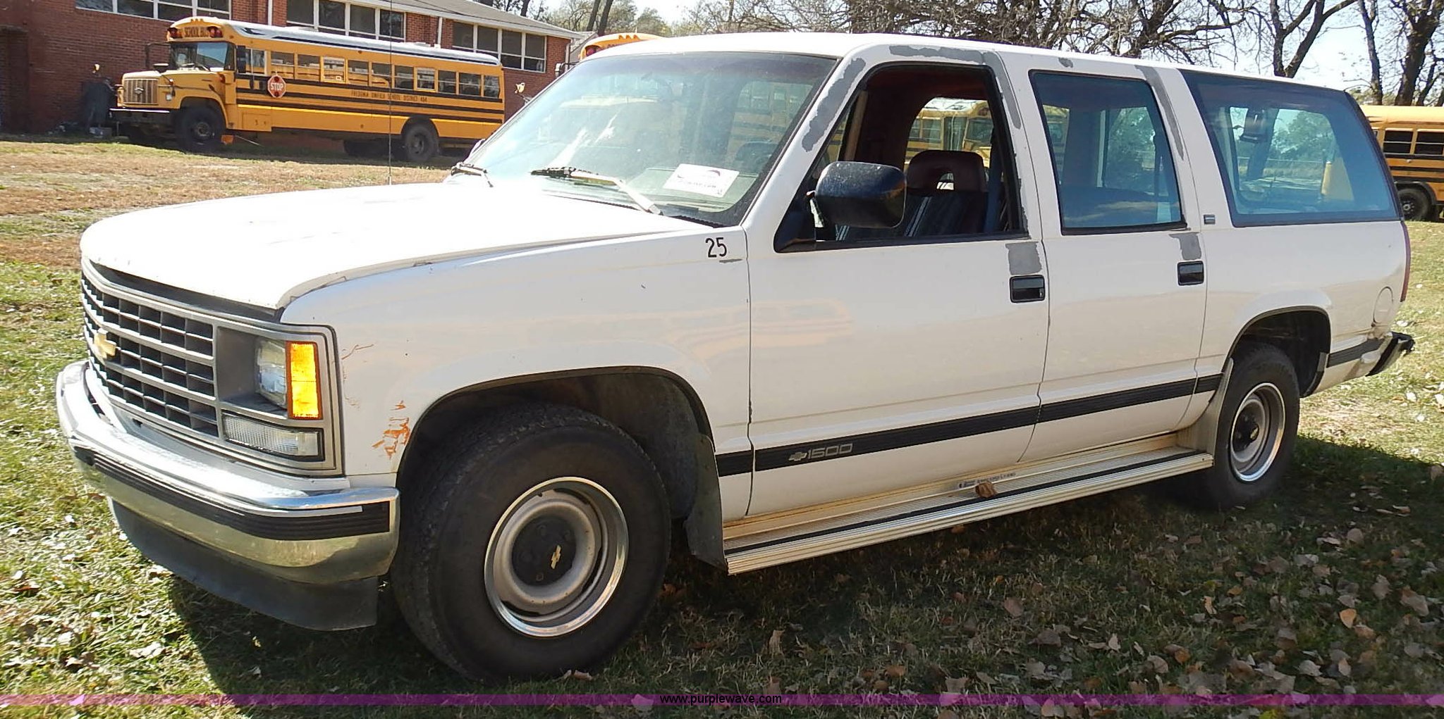 Purple Wave is selling a used Passenger Vehicle in Kansas. This item is a 1993 Chevrolet Suburban C1500 SUV with the following: 222,770 miles on odometer, 5.7L V8 OHV 16V gas engine, Automatic transmission, AC and heat, Non-operational AC, Tilt, Manual windows and locks, Vinyl interior, Seat cover, Running boards, Ball hitch, Trailer wiring, 235/75R15 tires, Third seat included, Interior/exterior cosmetic damage, Muffler needs to be replaced, Dead battery, Paint chipping, Dents, Scratches, Stereo missing, Unit# 25