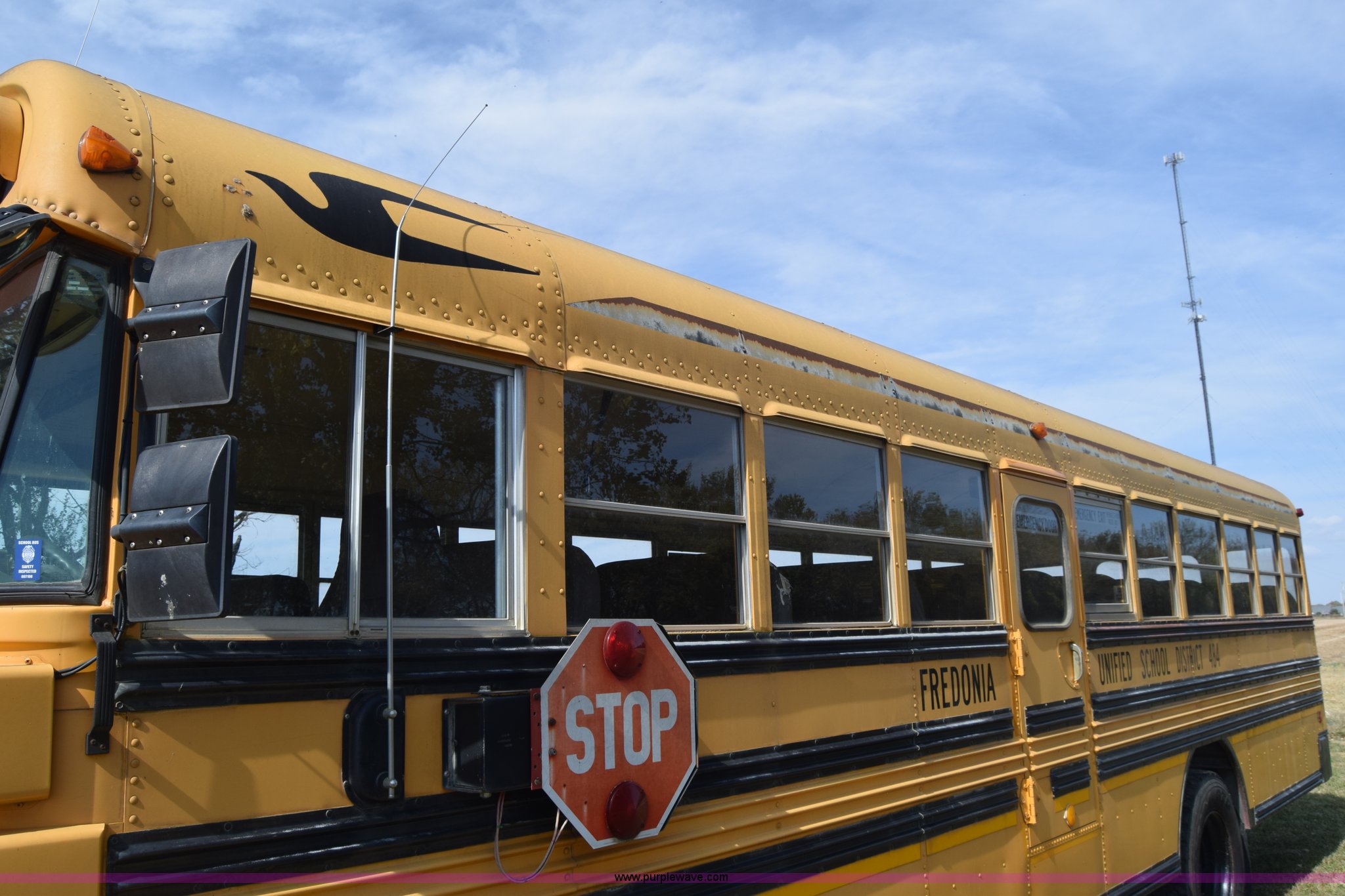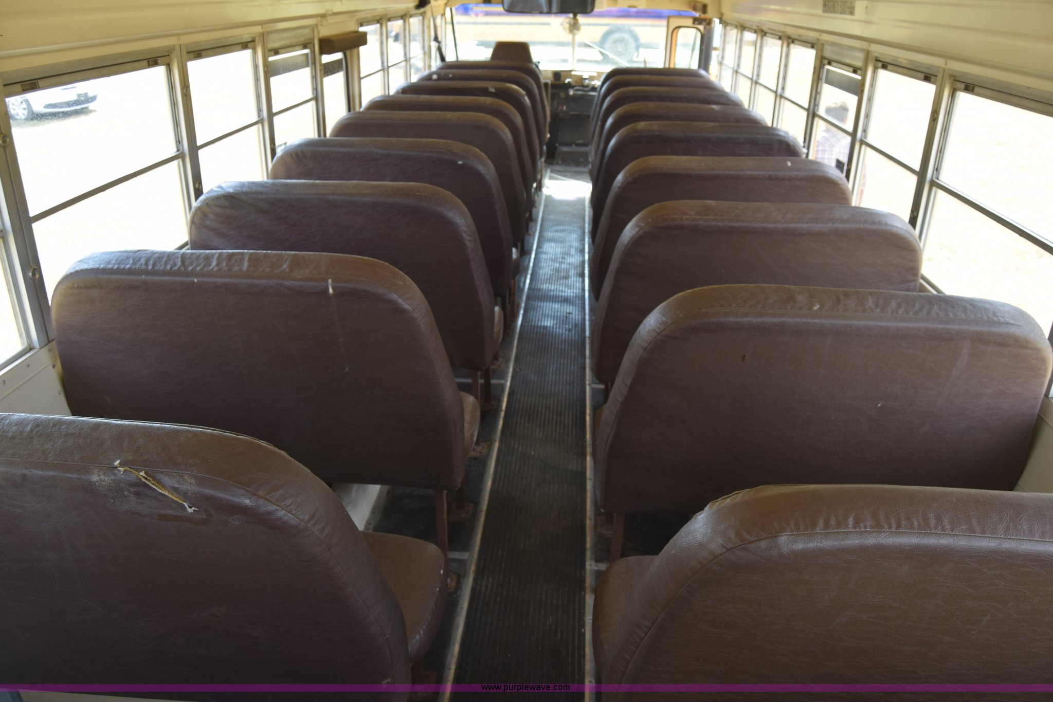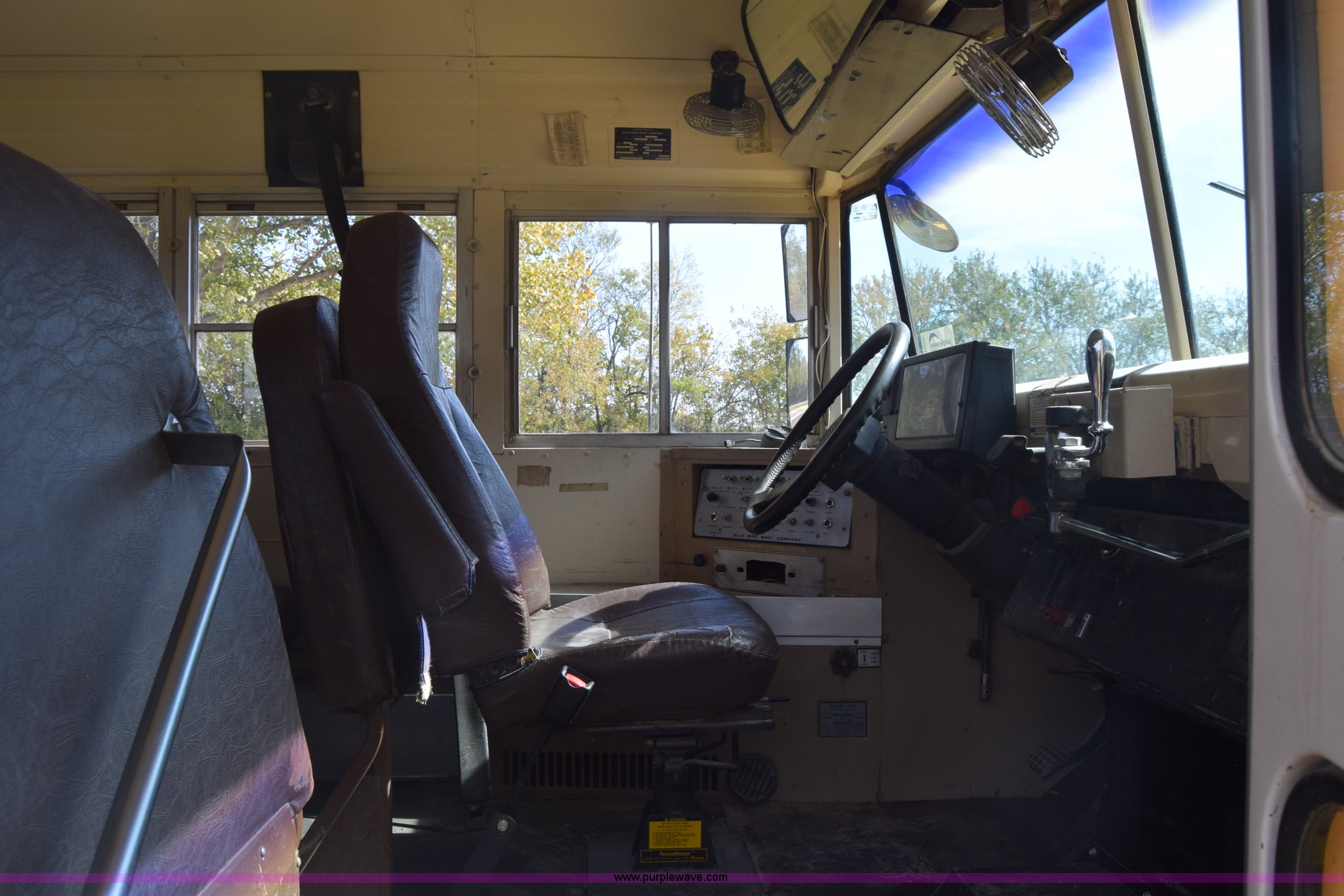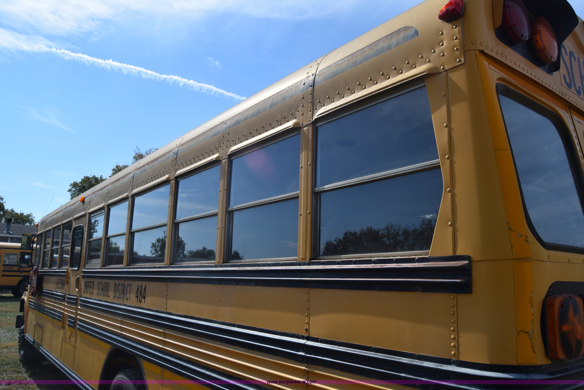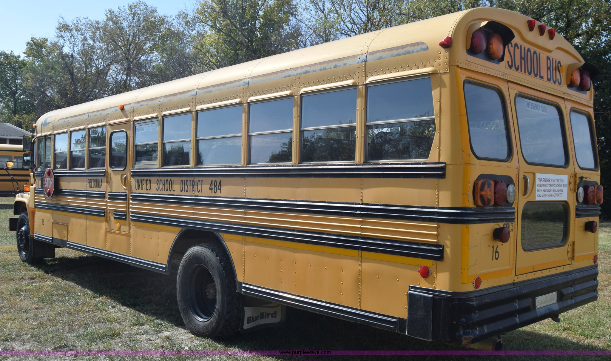 Purple Wave is selling a used Bus in Kansas. This item is a 1995 Chevrolet Blue Bird school bus with the following: 184,135 miles on odometer, Caterpillar 3116 6.6L six cylinder diesel engine, Automatic transmission, Heat, Manual windows, Vinyl interior, 56 passenger capacity, 295/75R22.5 tires, GVWR 27,960 lbs, Interior/exterior cosmetic damage