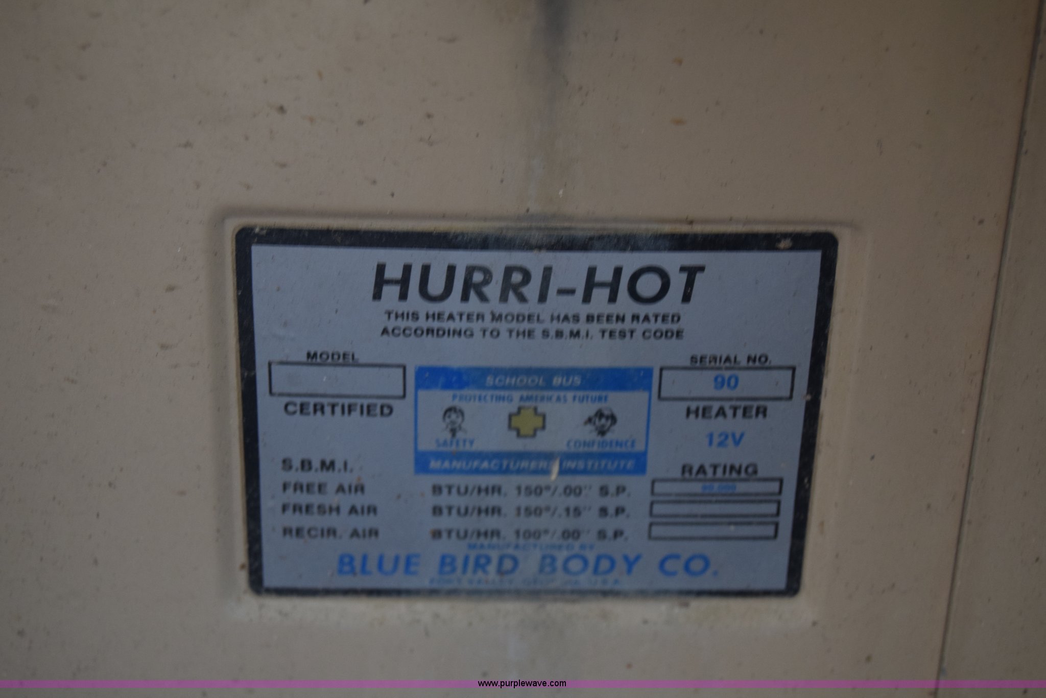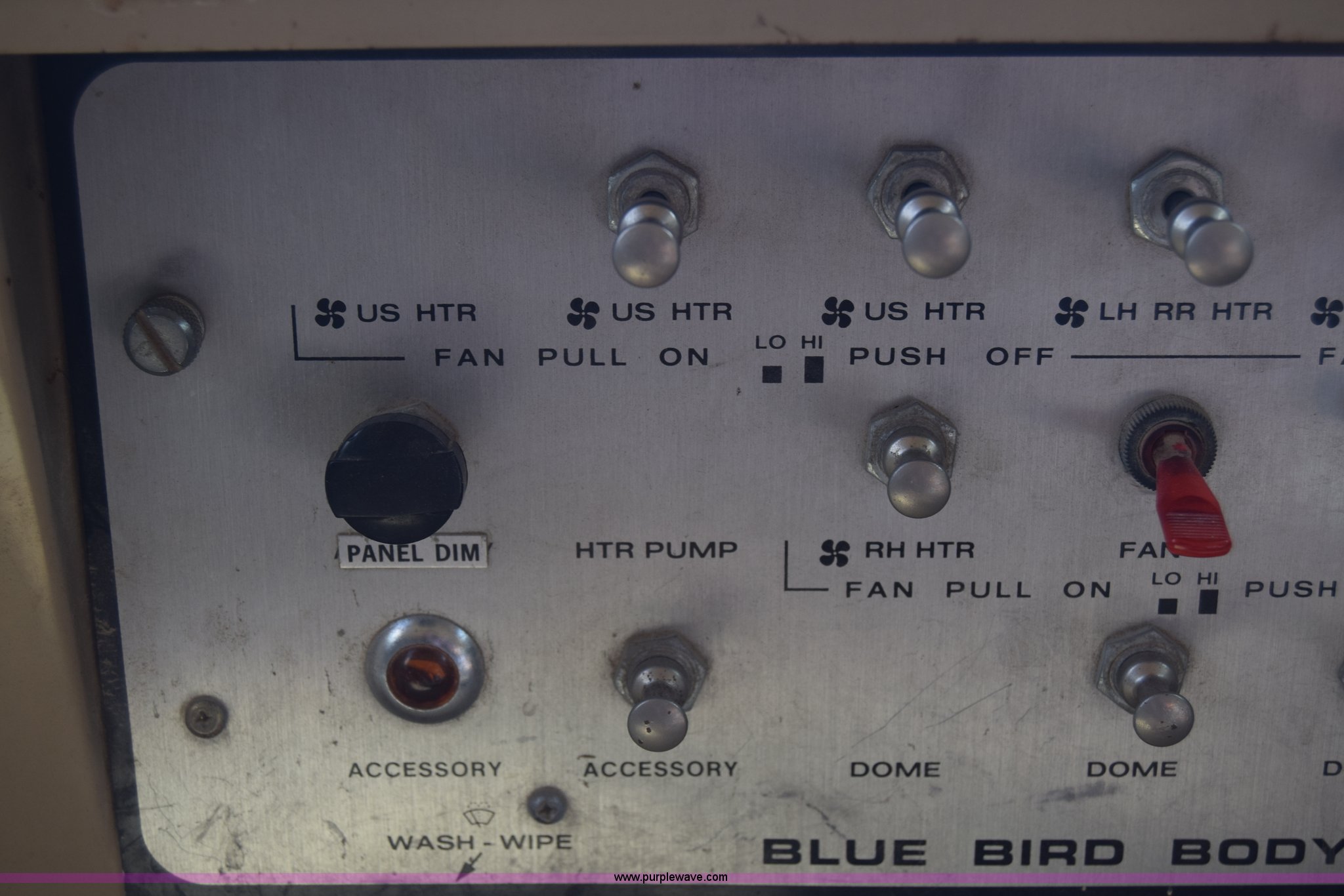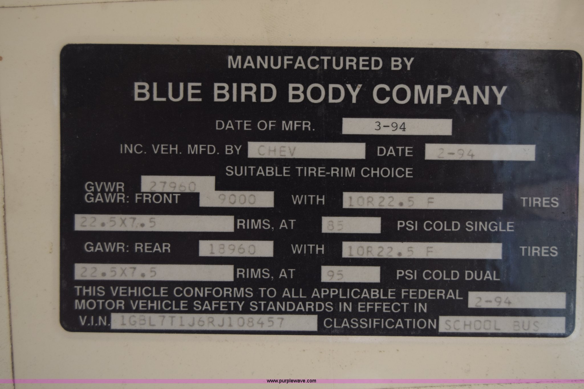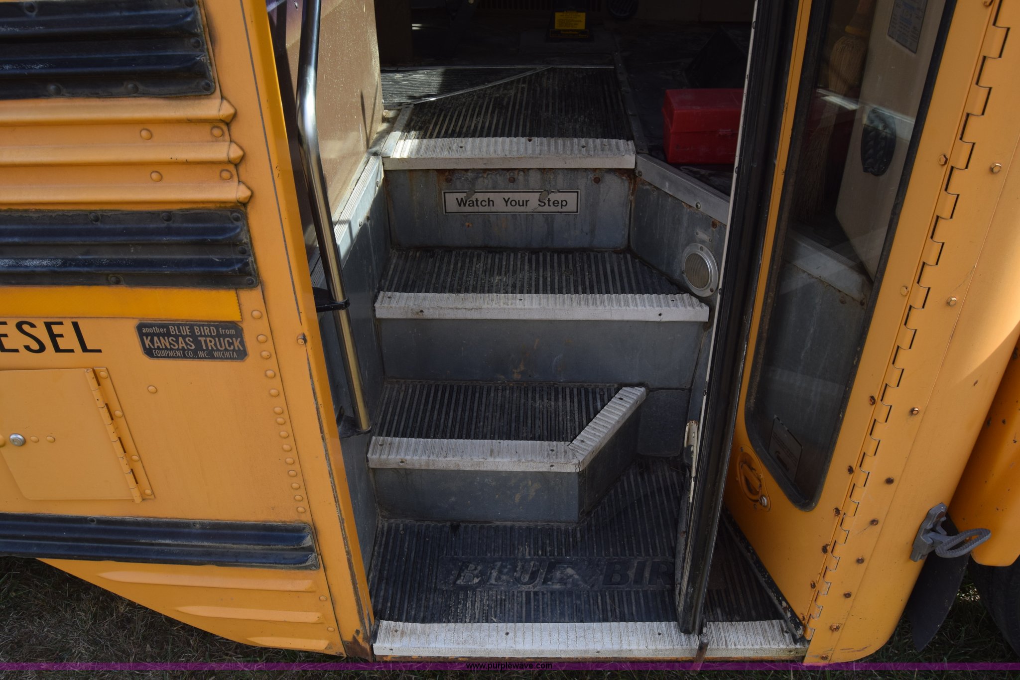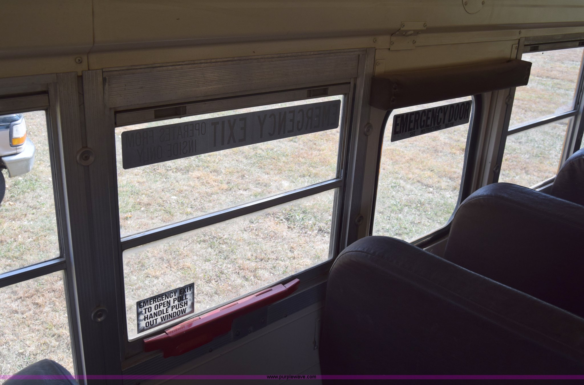 Purple Wave is selling a used Bus in Kansas. This item is a 1995 Chevrolet Blue Bird school bus with the following: 184,135 miles on odometer, Caterpillar 3116 6.6L six cylinder diesel engine, Automatic transmission, Heat, Manual windows, Vinyl interior, 56 passenger capacity, 295/75R22.5 tires, GVWR 27,960 lbs, Interior/exterior cosmetic damage