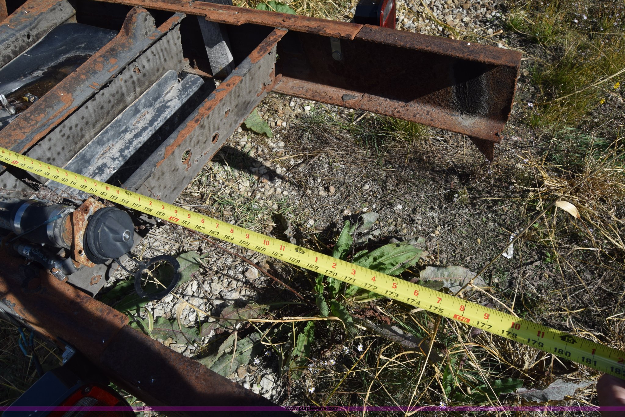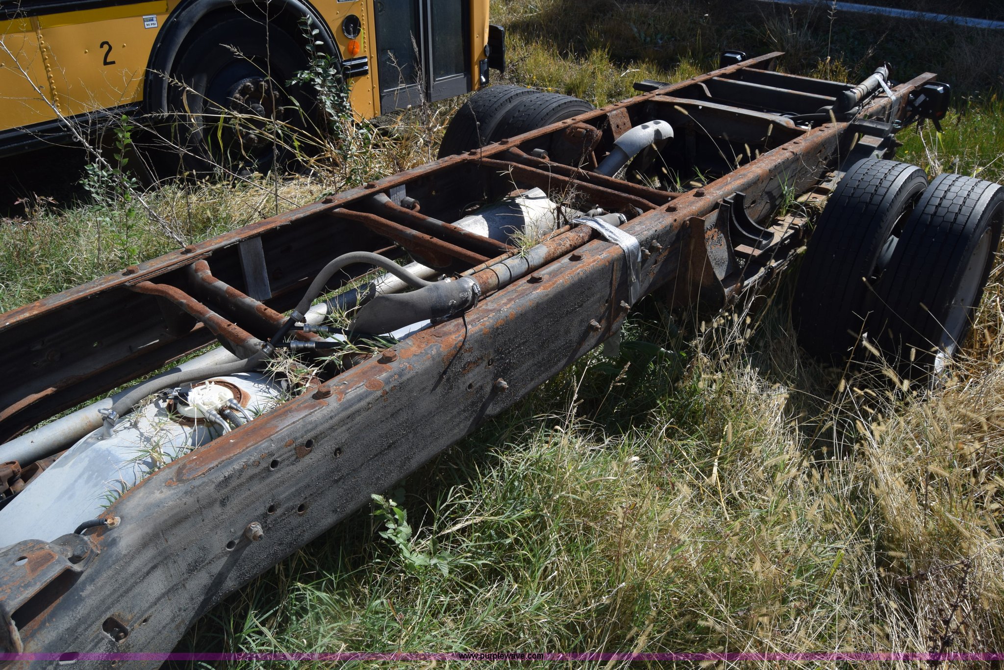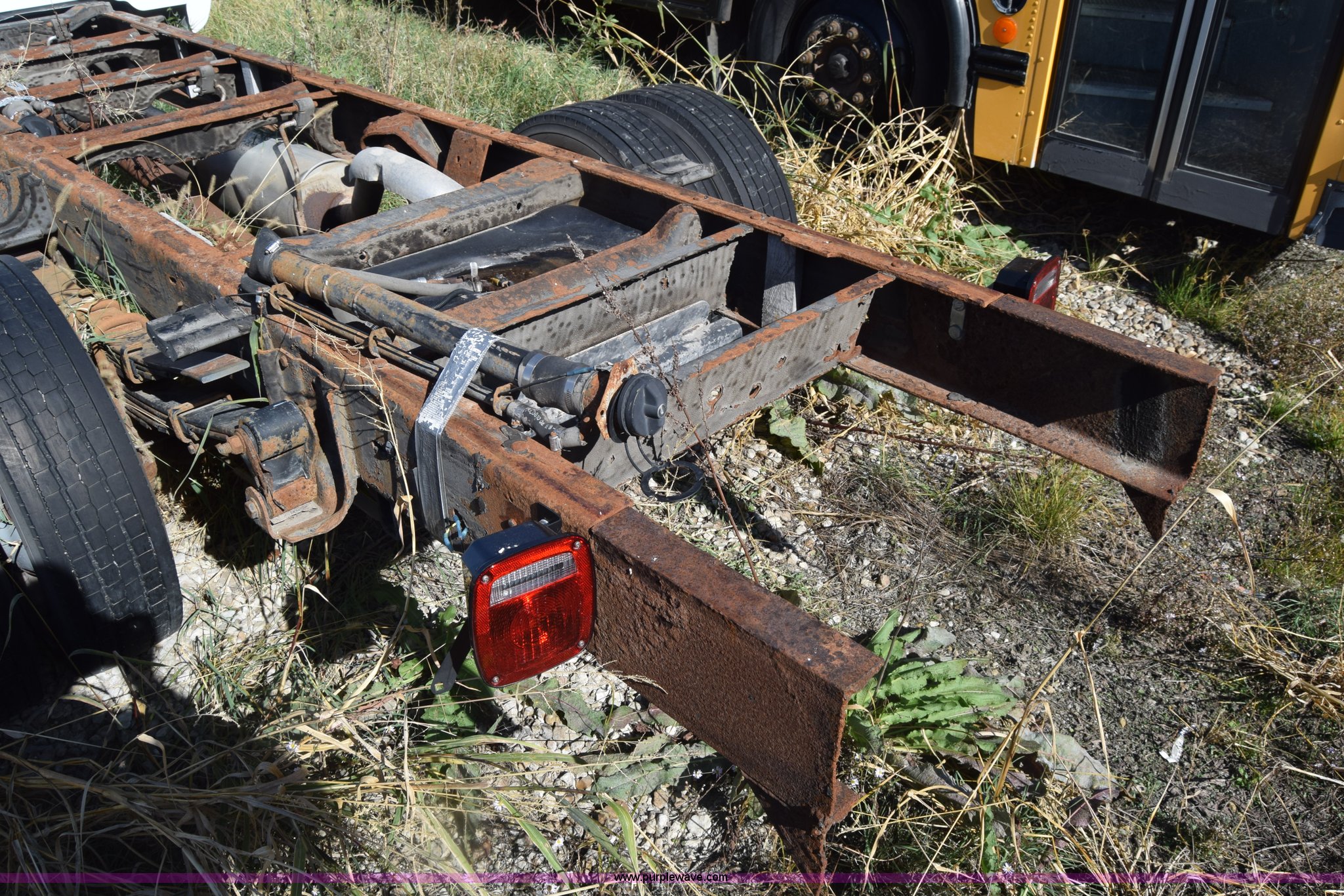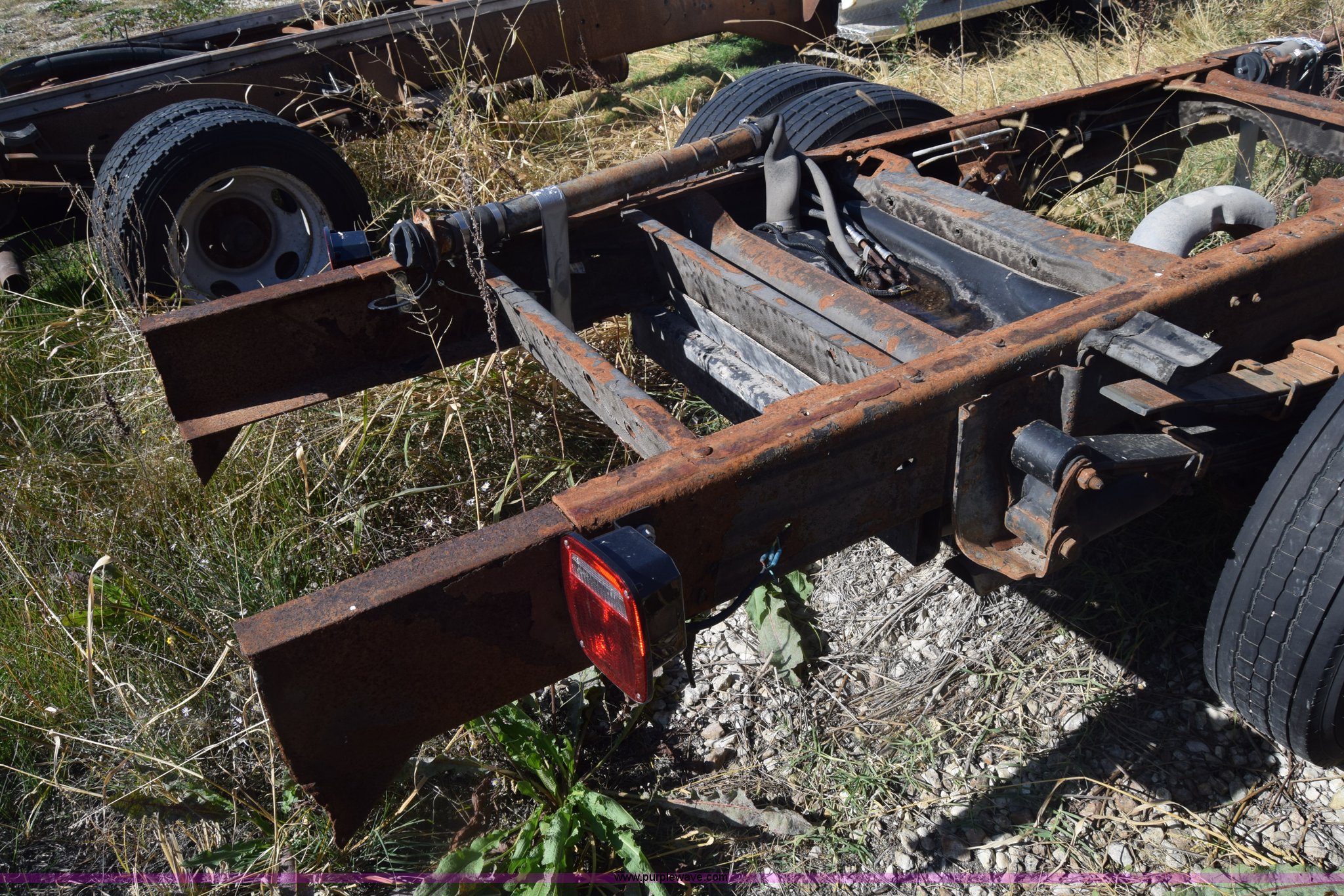 2002 Chevrolet Silverado 3500 pickup truck cab and chassis. 68,867 miles on odometer, 8.1L V8 OHV 16V gas engine, Automatic transmission, AC and heat, AM/FM, Manual windows and locks, Vinyl interior, Running boards, 14' from rear of cab to rear of chassis, 225/70R19.5 tires, Interior/exterior cosmetic damage, Dead battery, Seat torn. 3GBKC34G52M116694. USD 373 Newton. 100 S Evans. Newton, KS 67114