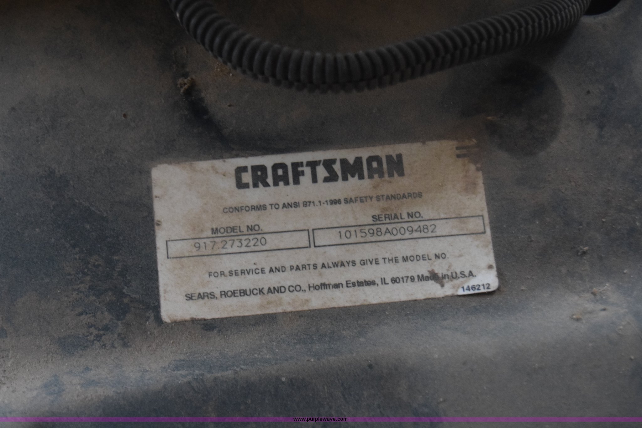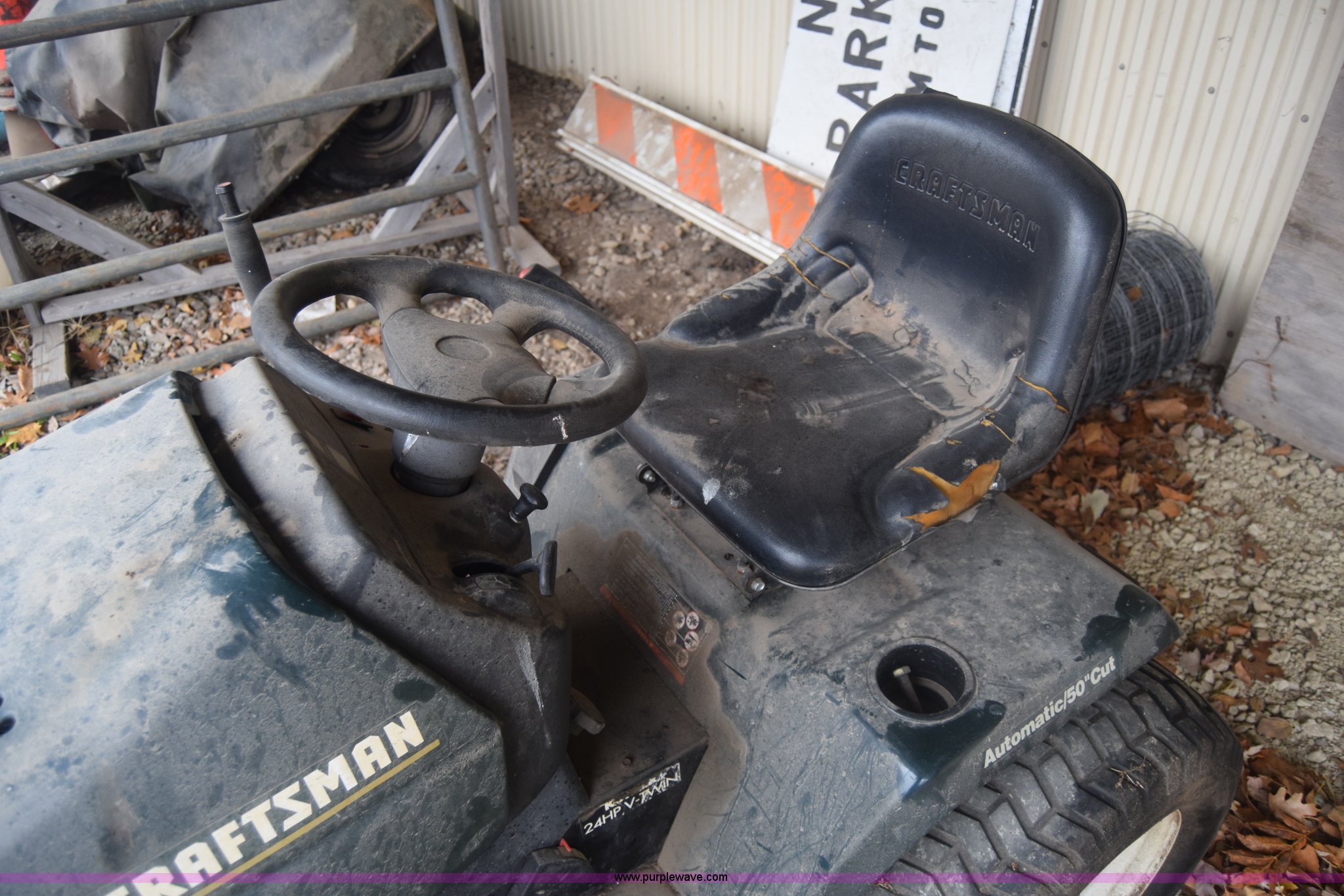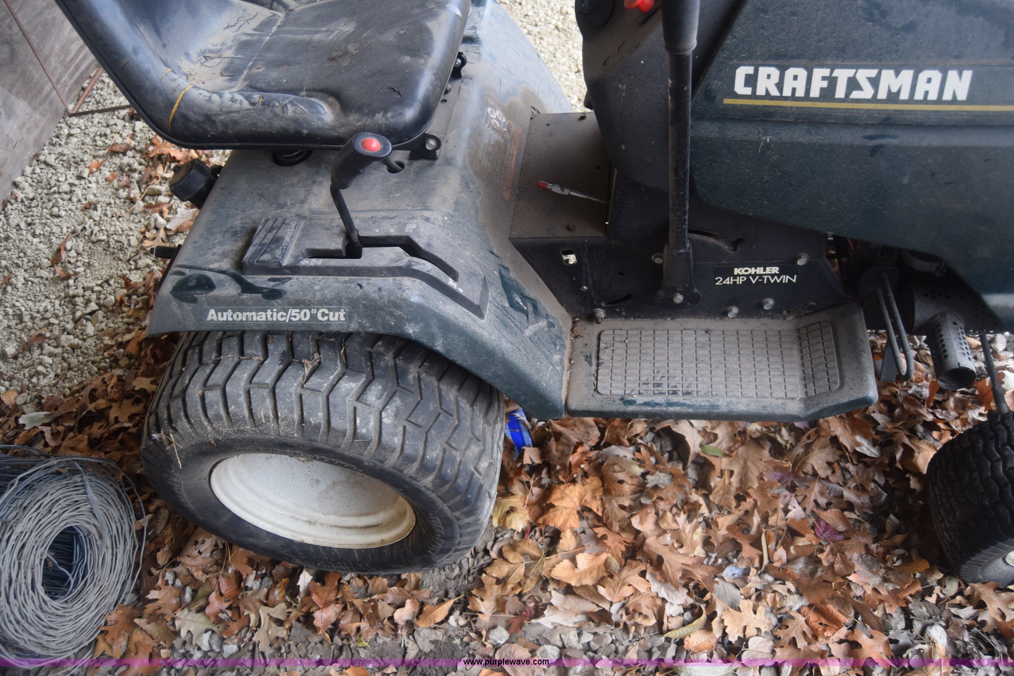 Purple Wave is selling a used Lawn and Garden in Kansas. This item is a Craftsman garden tractor with the following: 553 hours on meter, Kohler 24 HP V-twin gas engine, Model 917273220, Hydrostatic transmission, 16 x 7.50-8 front tires, 24 x 12.00-12 rear tires, No mowing deck