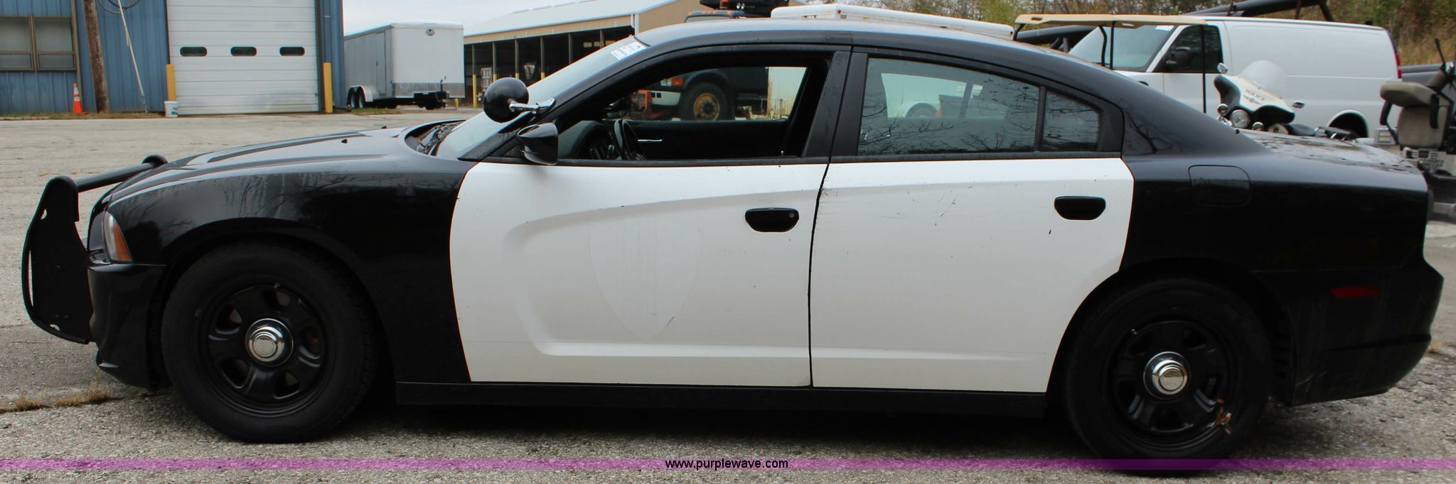 Purple Wave is selling a used Passenger Vehicle in Kansas. This item is a 2012 Dodge Charger Police with the following: 107,130 miles on odometer, 5.7L V8 OHV 16V gas engine, Automatic transmission, AC and heat, Tilt, Cruise, AM/FM, Power windows, locks, mirrors, and seat, Cloth interior, Spotlight, Grill guard, 225/60R18 tires, Scratches, Equipment holes