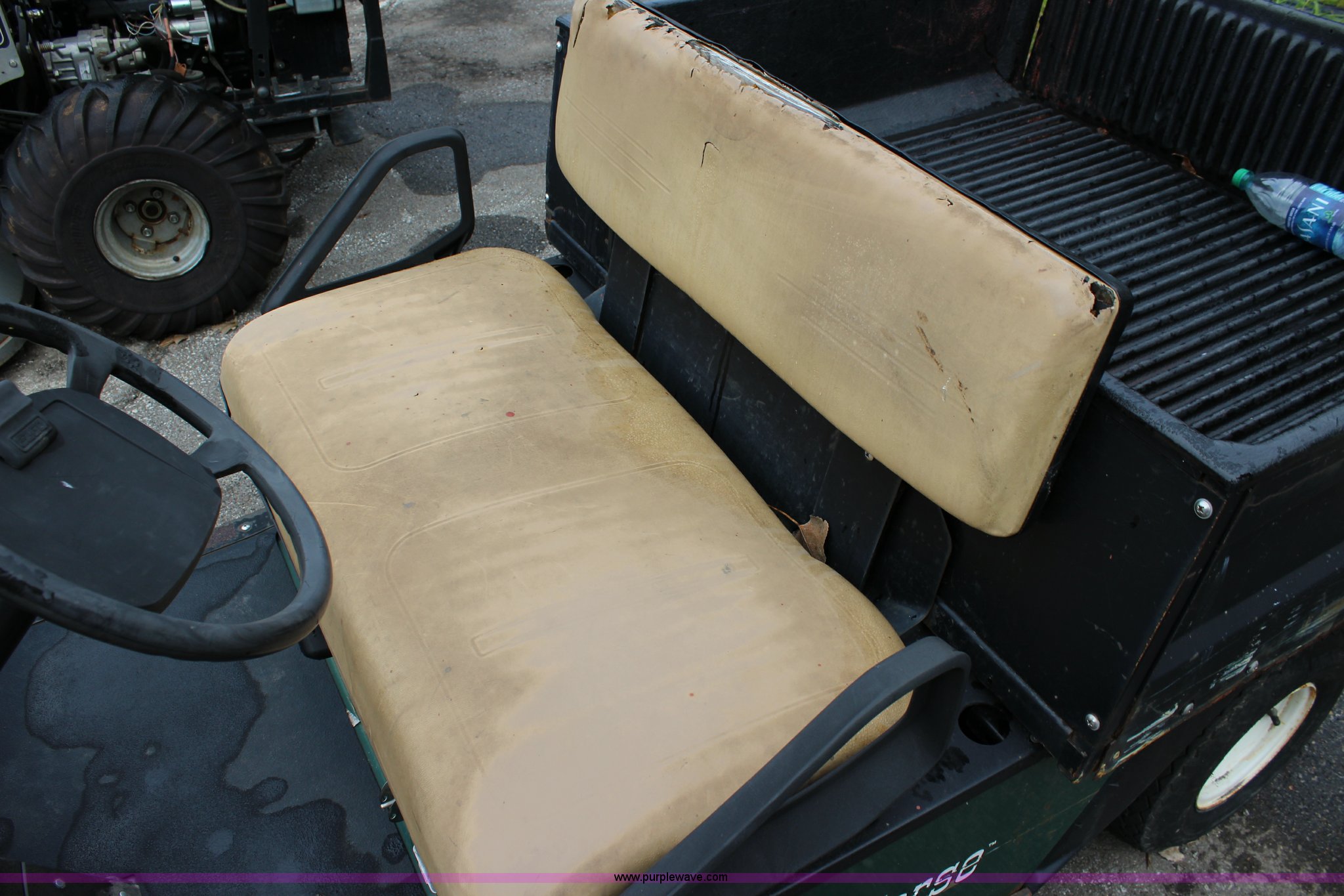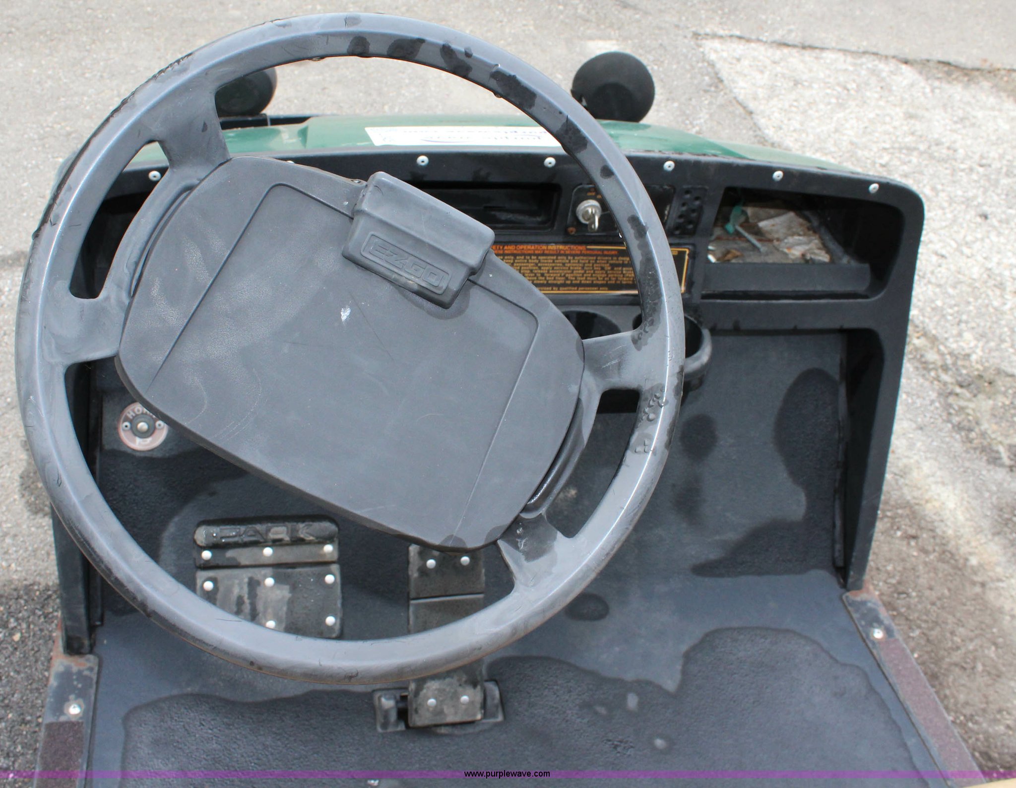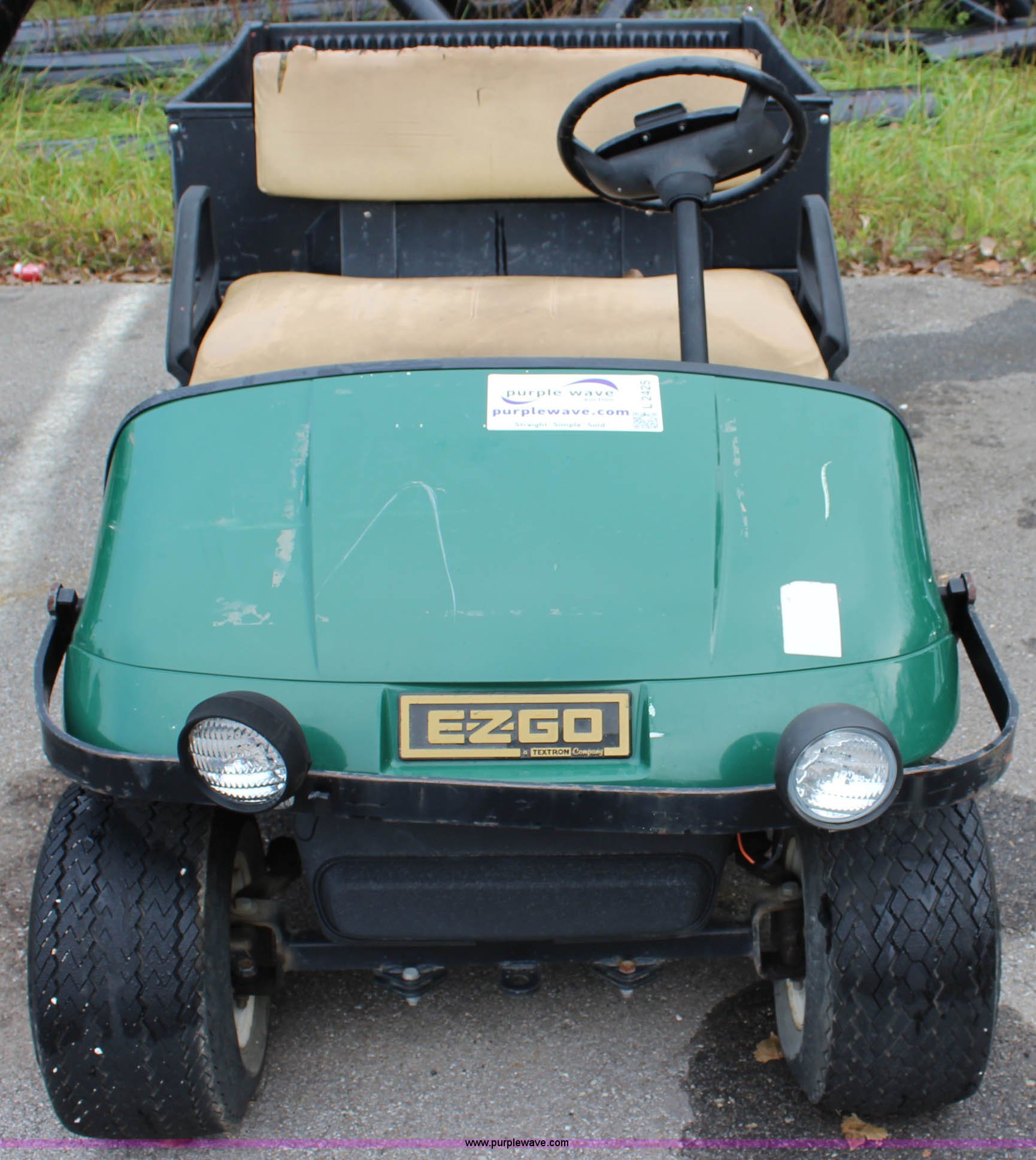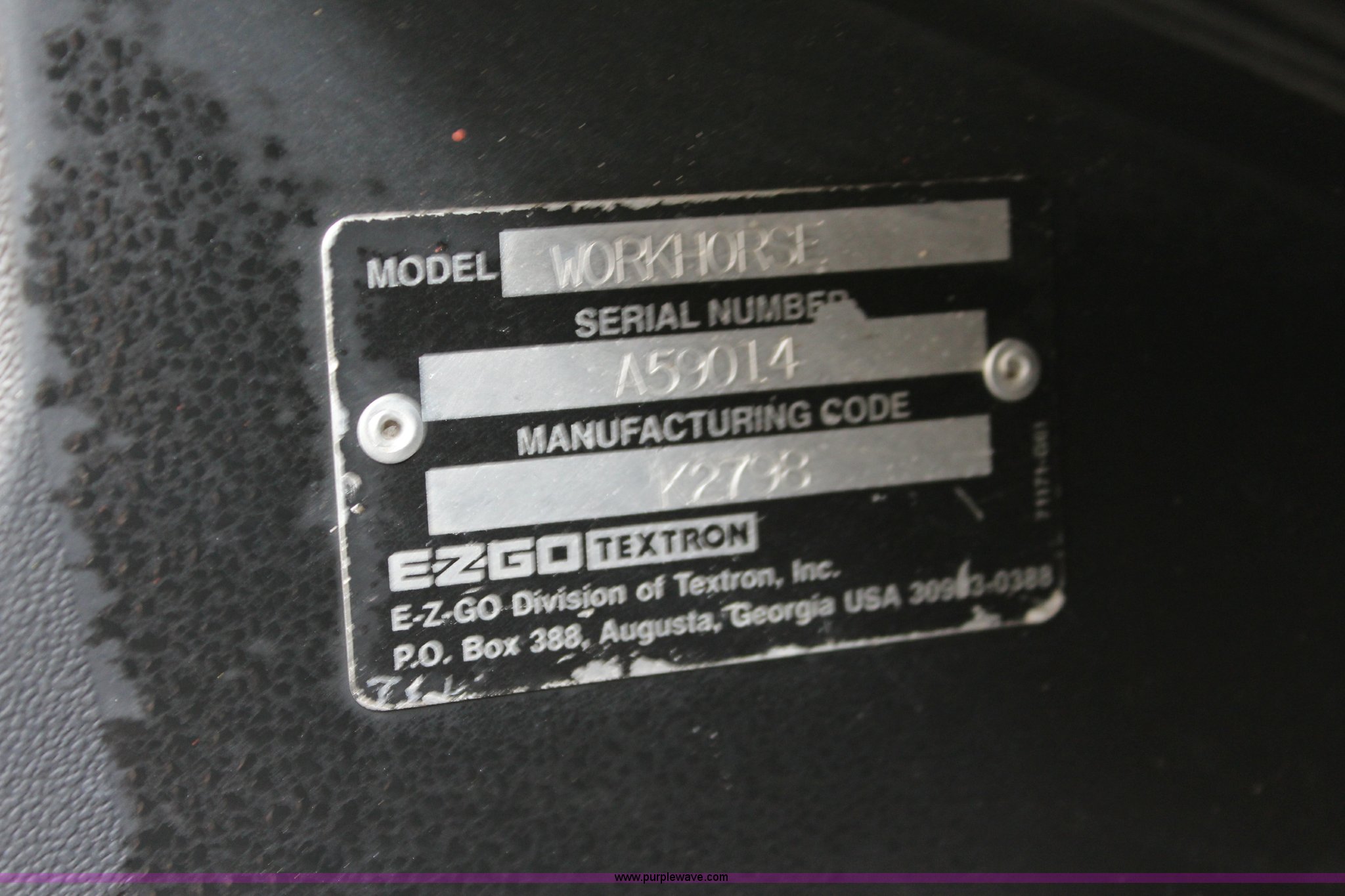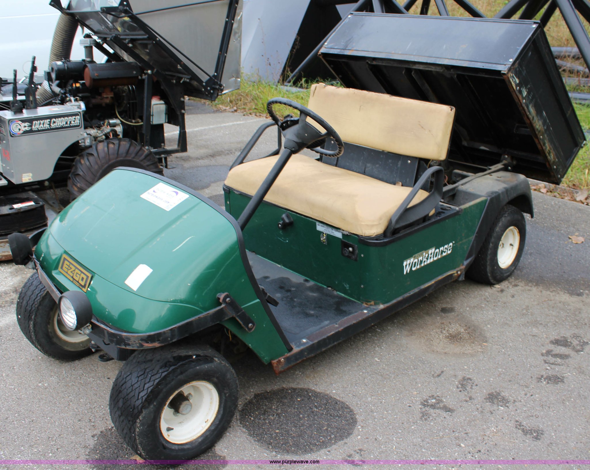 Purple Wave is selling a used Golf Cart in Kansas. This item is a Ez-go Workhorse golf cart with the following: Gas engine, 48"W x 40" bed, Electric dump, 18x8.50-8 tires, Serial A59014