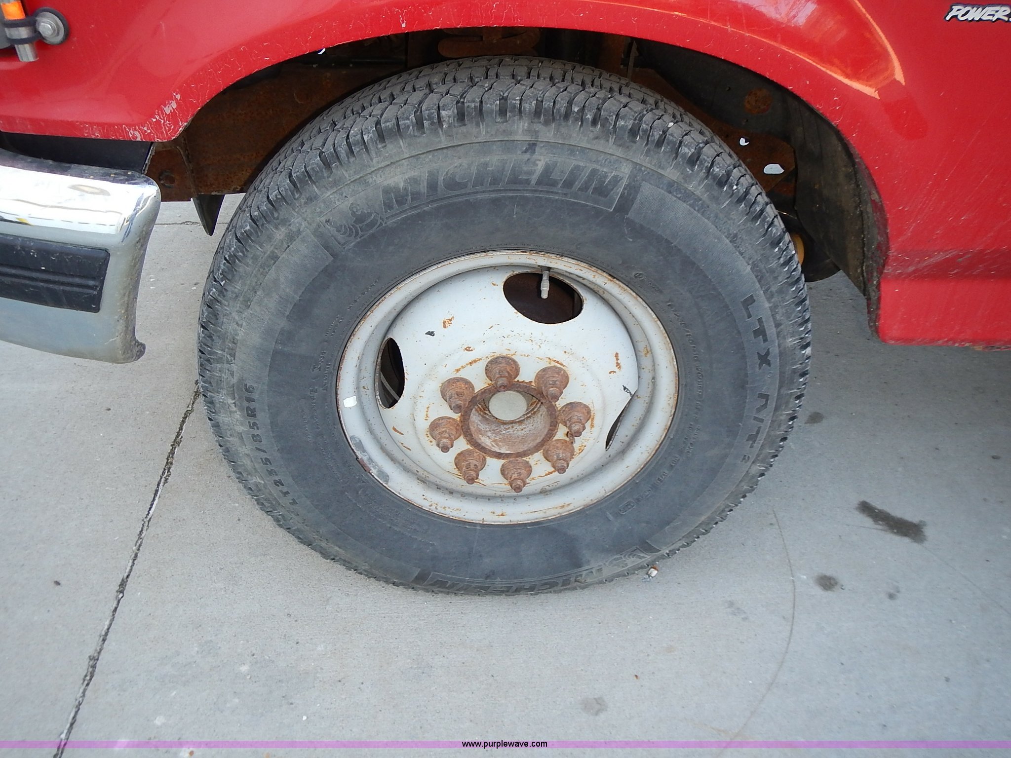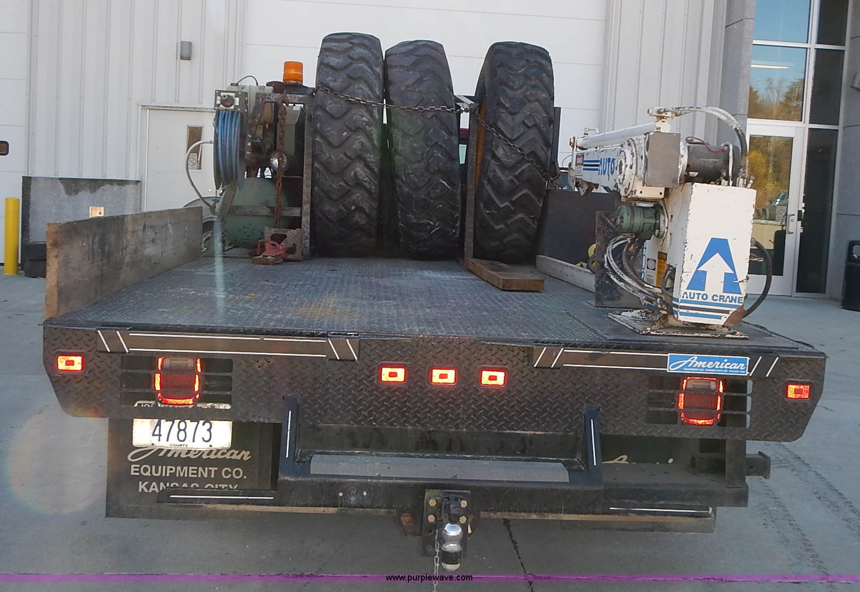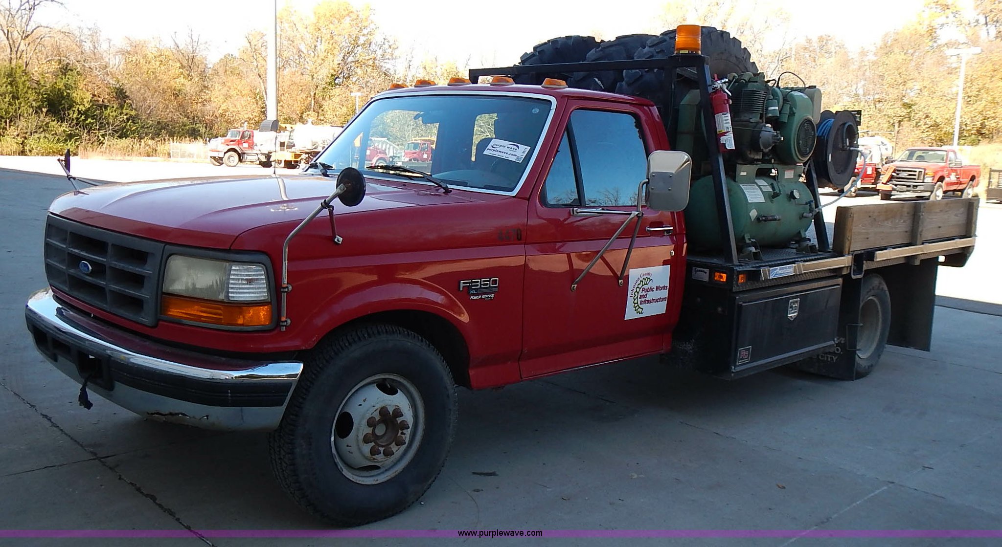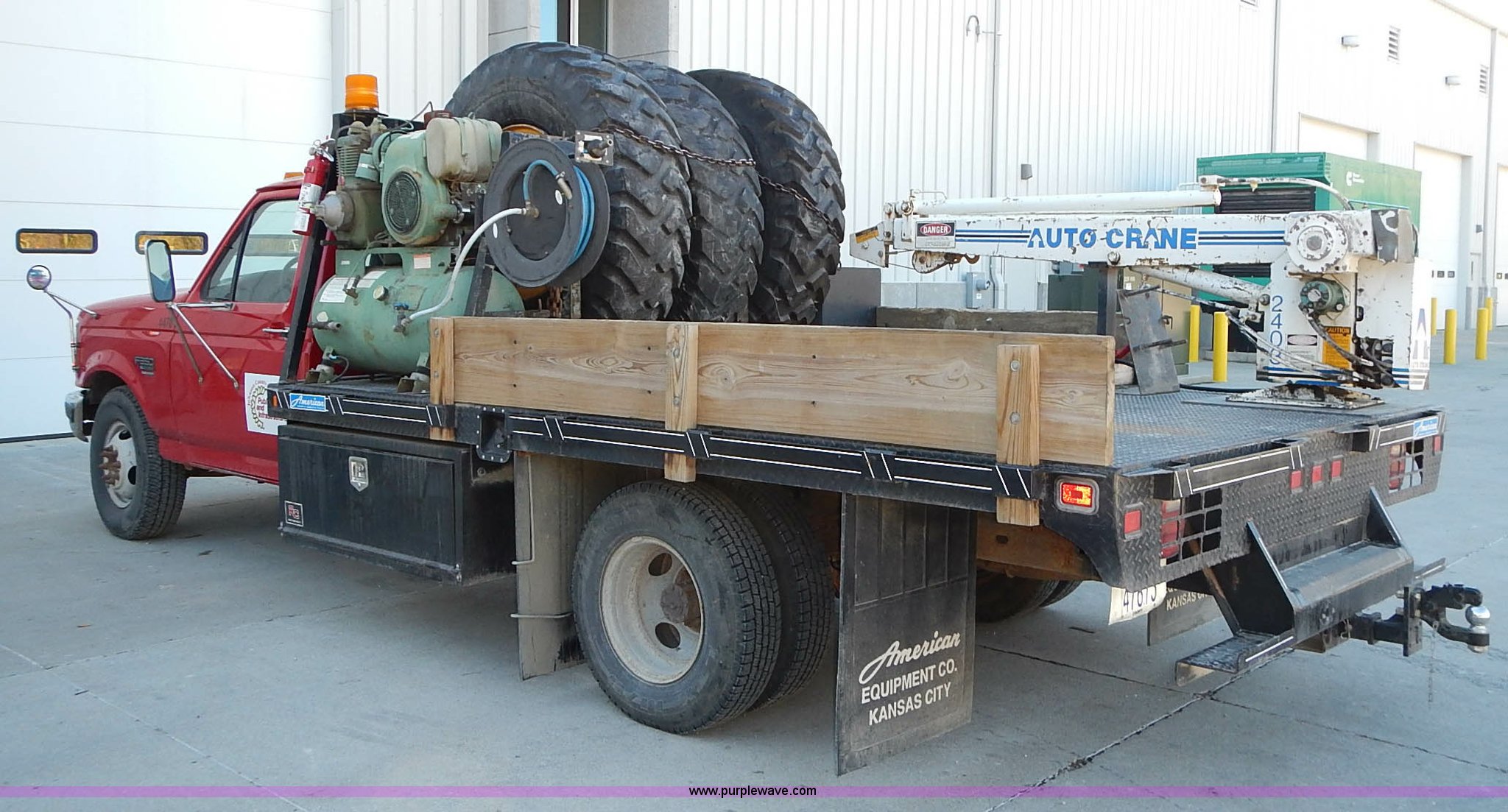 Purple Wave is selling a used 3/4 or 1 Ton Pickup or Van in Kansas. This item is a 1997 Ford F350 XL flatbed pickup truck with crane with the following: 85,435 miles on odometer, 7.3L V8 OHV 16V diesel engine, Automatic transmission, AC and heat, AM/FM, Manual windows and locks, Vinyl interior, Jensen 12'L x 8'2"W flatbed, Toolbox, Buckeye air compressor, Kohler gas engine, 10 HP, Hose reel, Auto Crane 2403-DR crane, 2,400 lbs maximum lift capacity, Remote, Receiver hitch, 215/85R16 tires, Bed contents and tires are not included, Bumper rusted, Decals will be removed prior to auction, Unit# FLT4470