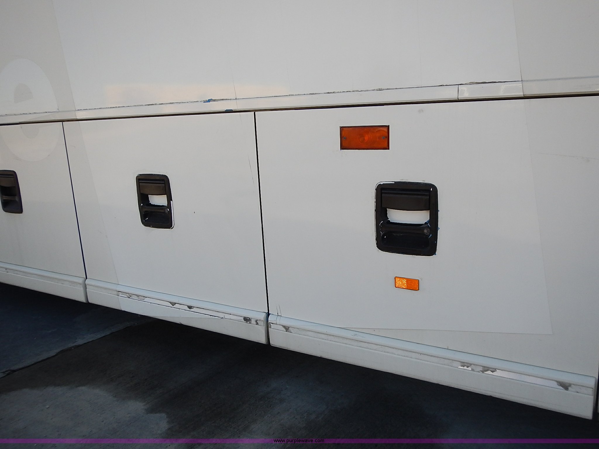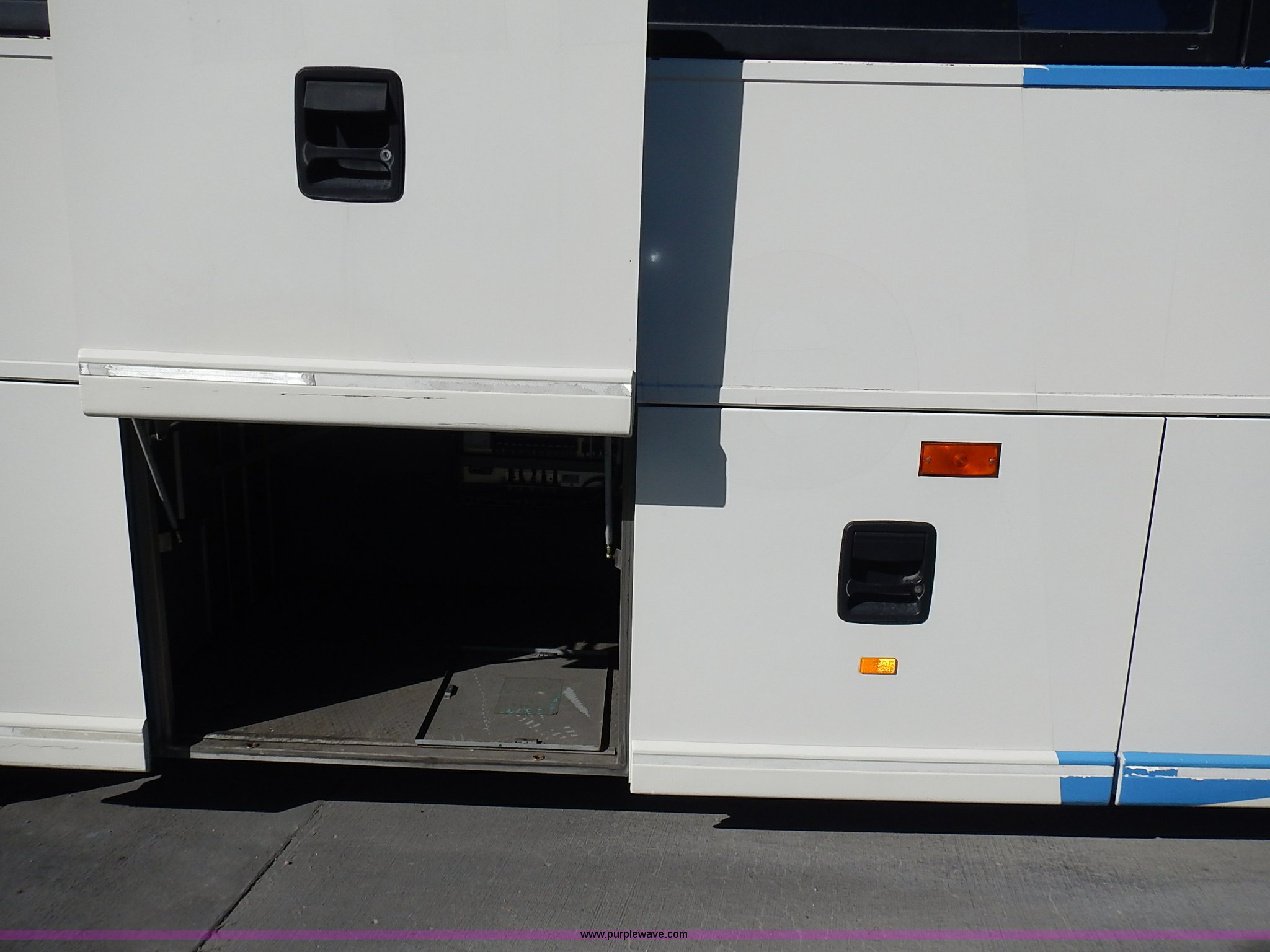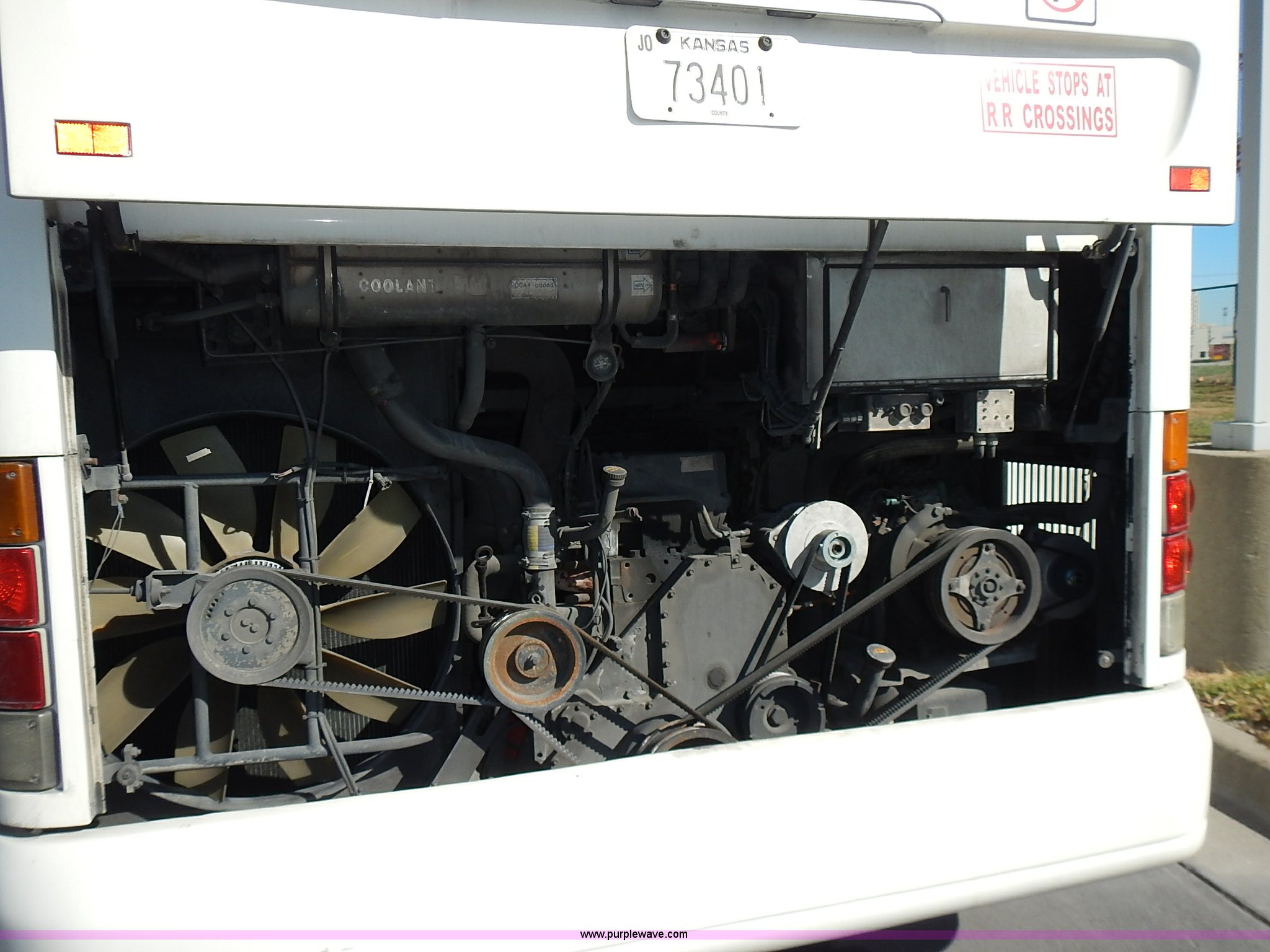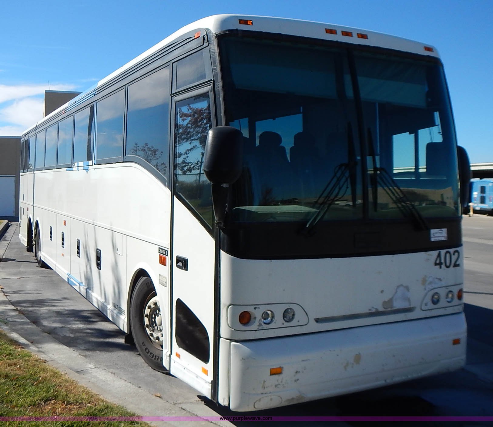 Purple Wave is selling a used Bus in Kansas. This item is a 2004 Van Hool C2045L coach bus with the following: 56,230 miles on odometer, 643,243 actual miles, Cummins ISM 10.8L L6 turbo diesel engine, Allison automatic transmission, AC and heat, AM/FM, Suspension seat, On-board restroom, Overhead storage, 57 passenger capacity, Ceiling and front emergency egress, Underside luggage storage, Television monitors, Air suspension, Air brakes, 315/80R22.5 front tires, 215/80R22.5 rear tires, GVWR 50,700 lbs, Roof water damage, Seats worn, Unit# JCT402