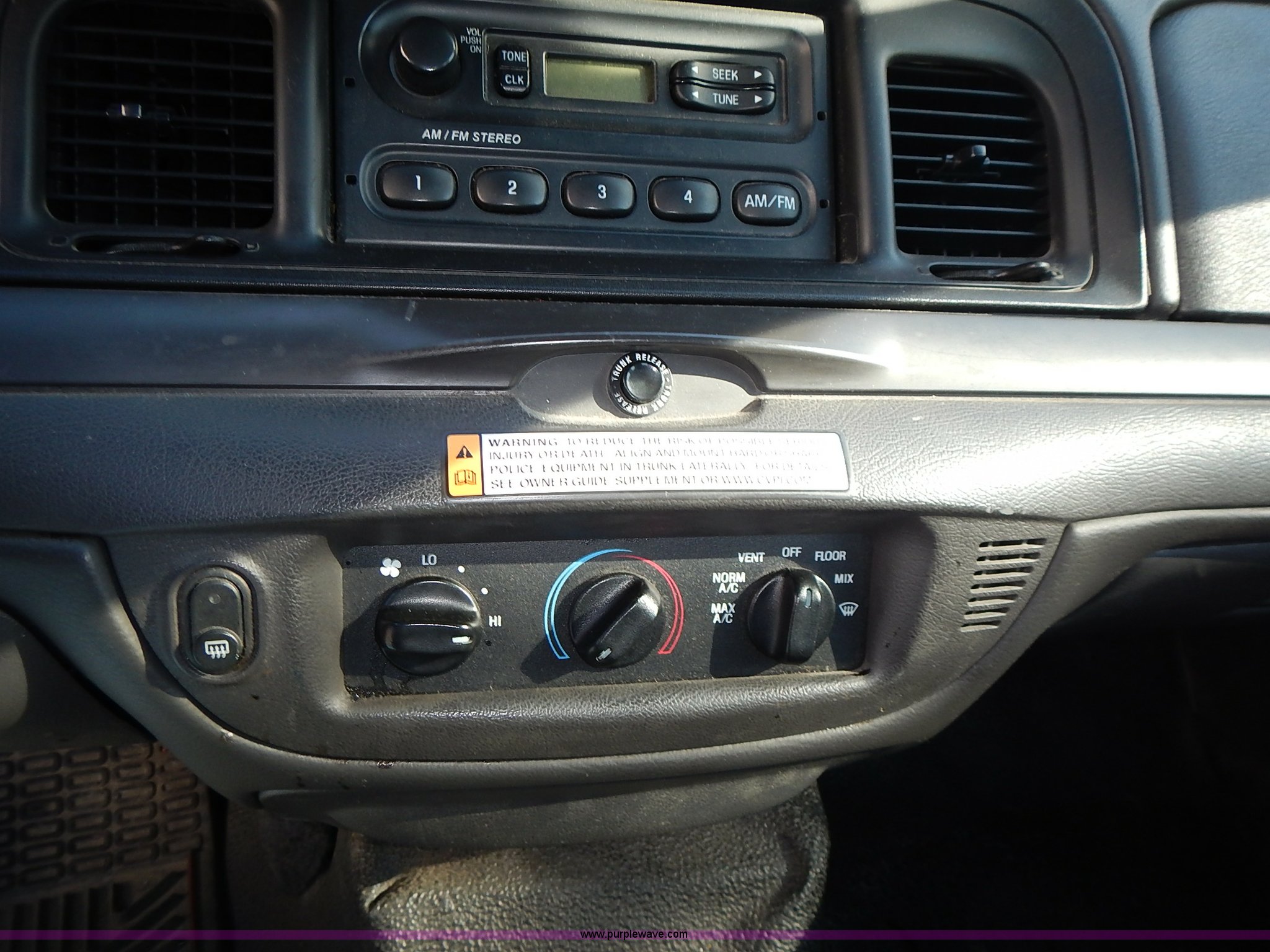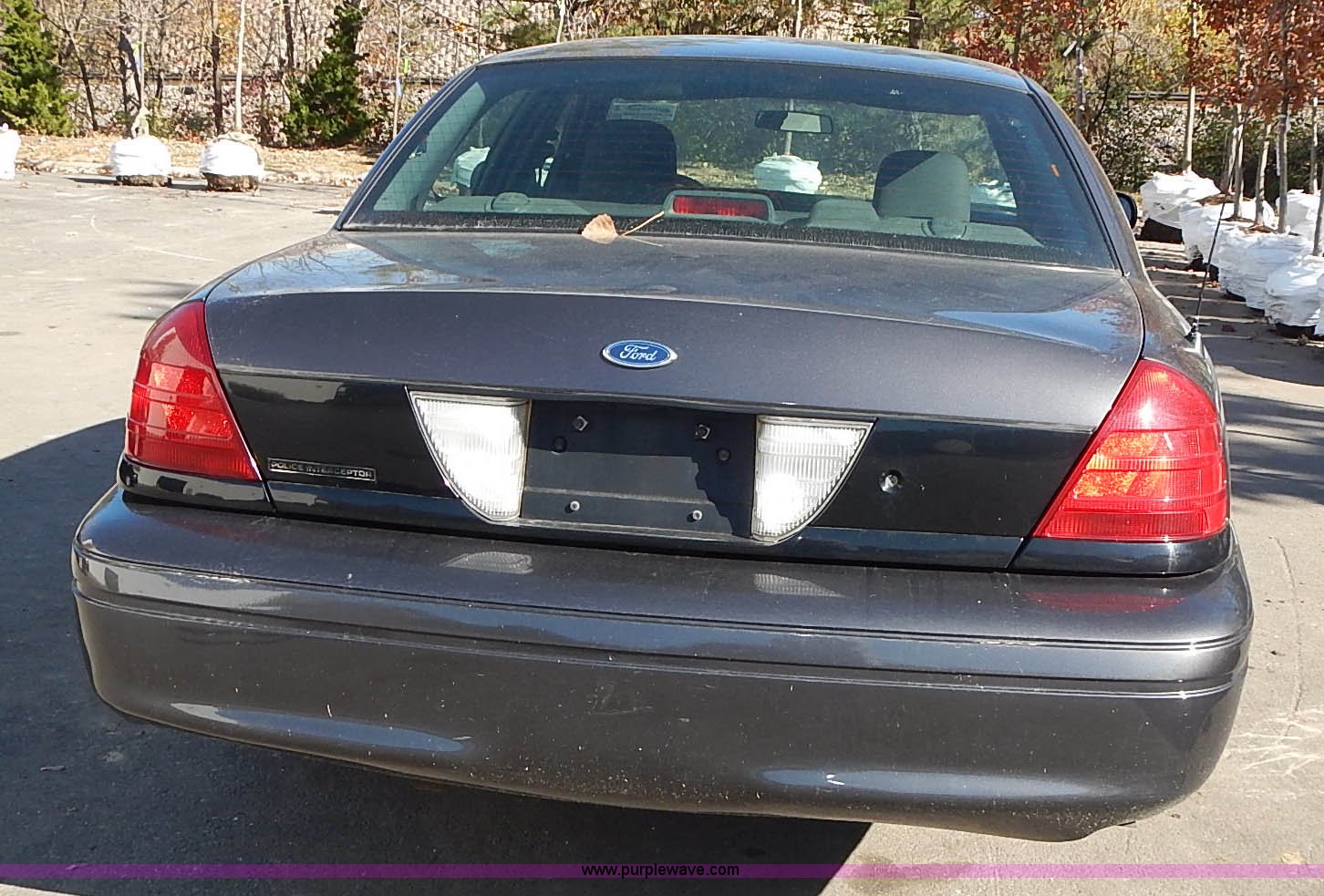Purple Wave is selling a used Passenger Vehicle in Kansas. This item is a 2005 Ford Crown Victoria Police Interceptor with the following: 90,012 miles on odometer, 4.6L V8 SOHC 16V gas engine, Automatic transmission, AC and heat, Tilt, Cruise, AM/FM, Power windows, locks, mirrors, and seat, Cloth interior, Spotlights, 225/60R16 tires, Paint chipping