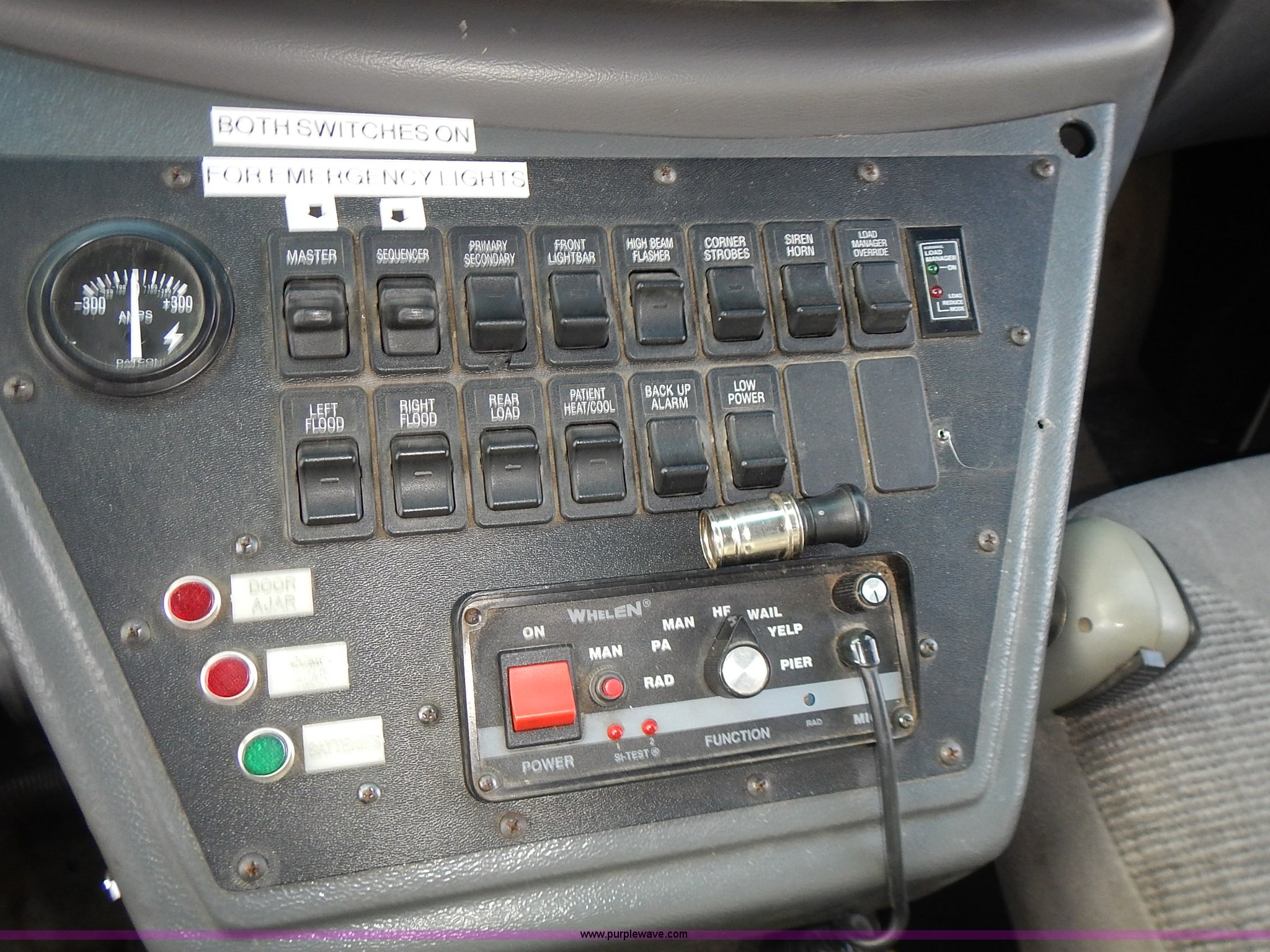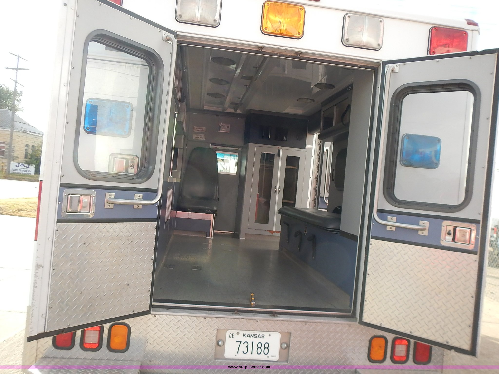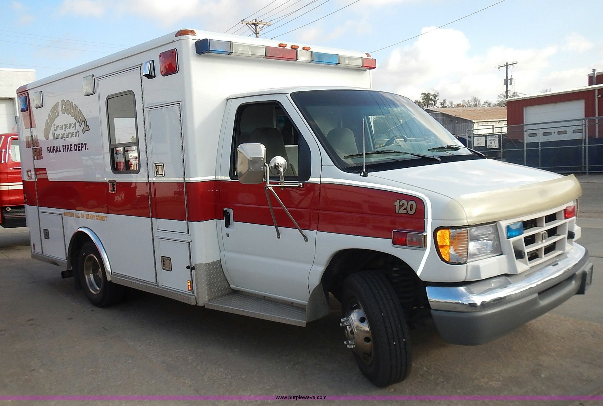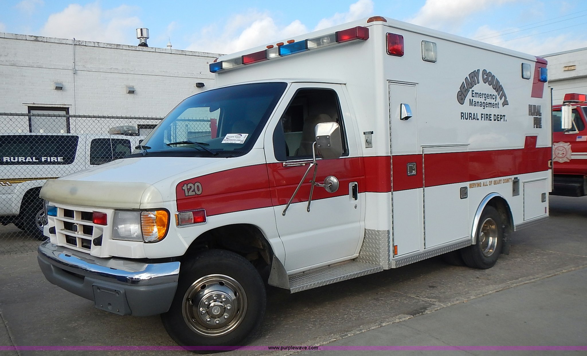 Purple Wave is selling a used Fire Truck or Emergency Vehicle in Kansas. This item is a 1997 Ford Econoline E350 ambulance with the following: 157,296 miles on odometer, 7.3L V8 OHV 16V turbo diesel engine, Automatic transmission, AC and heat, Tilt, Cruise, AM/FM, Power windows and locks, Cloth/vinyl interior, Emergency lights and sirens, Whelen PA/siren controls, (2) oxygen hookups, Vacuum hookup, Receiver hitch, Trailer wiring, Firestone 225/75R16 tires, Decals will be removed prior to auction, No inverter, No rear interior power, Batteries replaced in October 2015, Lights, sirens, and controls will be removed if unit is purchased by a non-emergency agency, Unit# 120