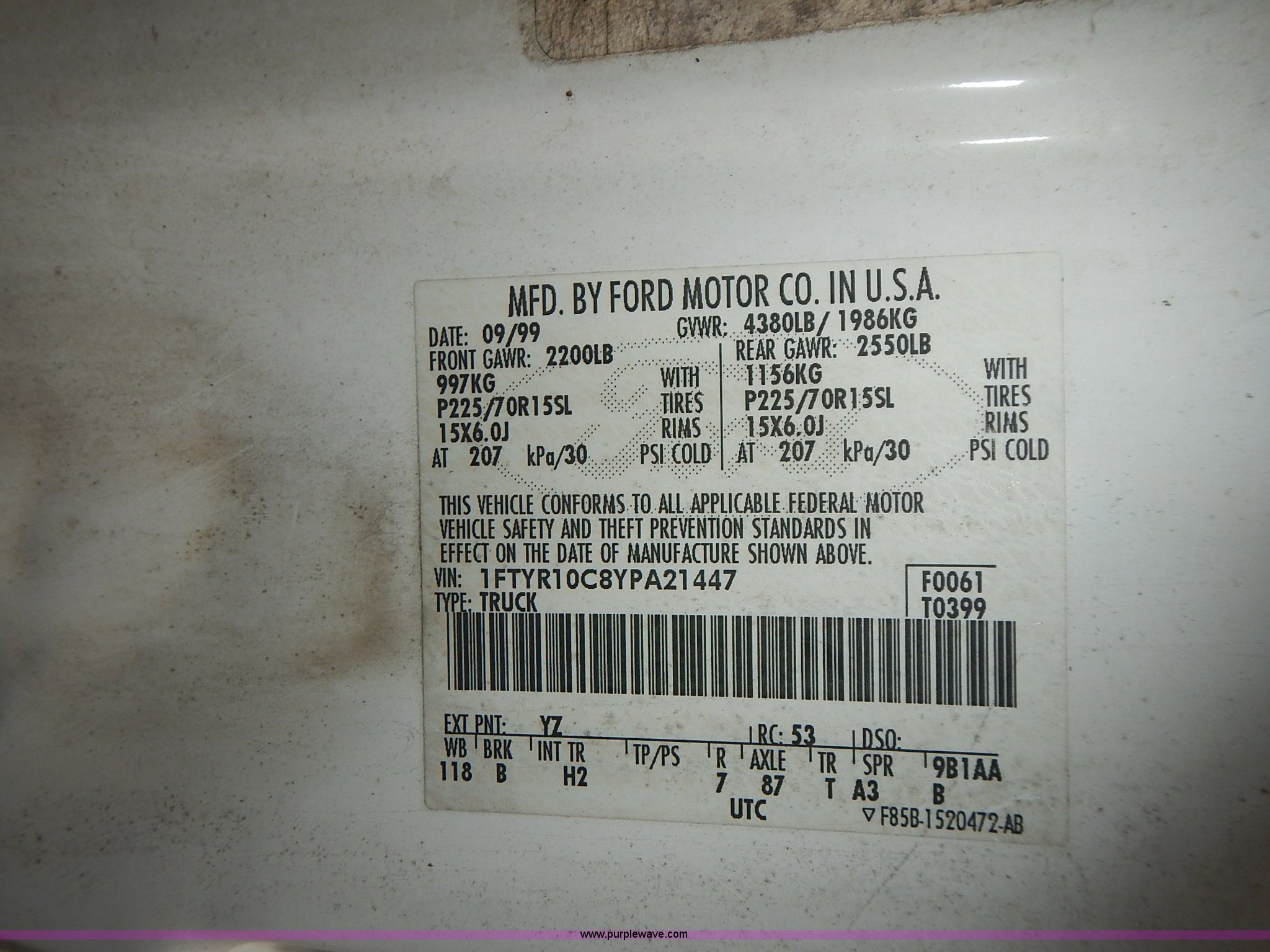Purple Wave is selling a used Compact Pickup or Van in Kansas. This item is a 2000 Ford Ranger pickup truck with the following: 92,349 miles on odometer, 2.5L L4 SOHC 8V gas engine, Automatic transmission, AC and heat, AM/FM, Manual windows and locks, Vinyl interior, Topper, Bed mat, 215/70R15 tires, Interior/exterior cosmetic damage, Transmission issues