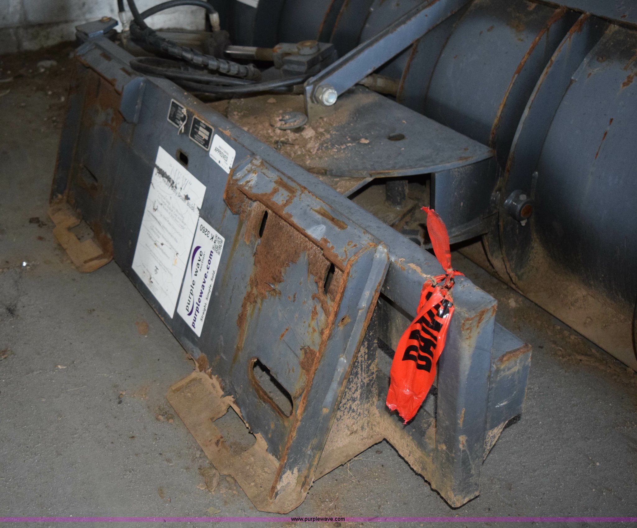 Purple Wave is selling a used Skid Steer Attach. in Minnesota. This item is a Thomas B304/U-203B skid steer blade with the following: 78"W, Hydraulic angle adjustment, Bolt-on cutting edge, Serial WO26011