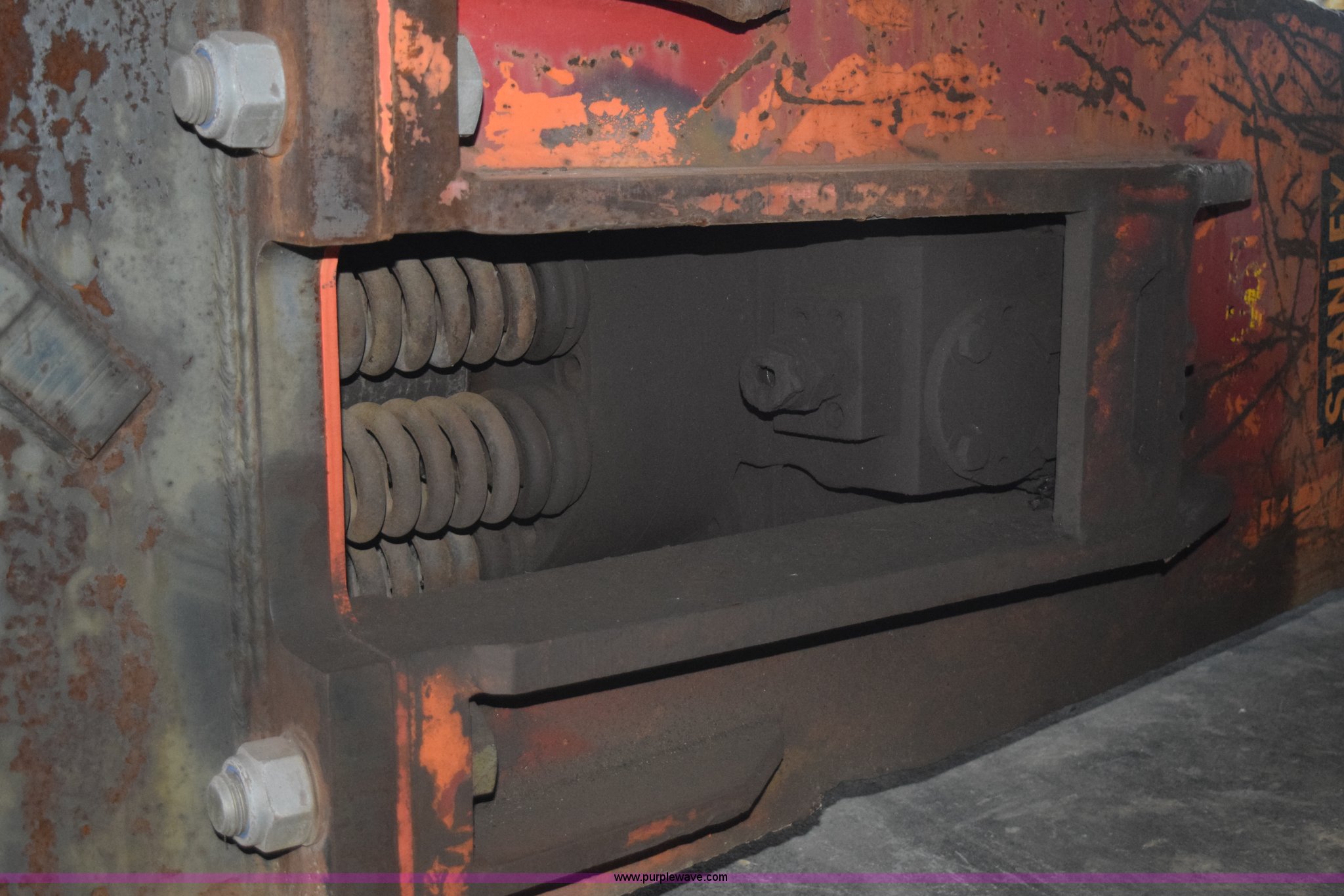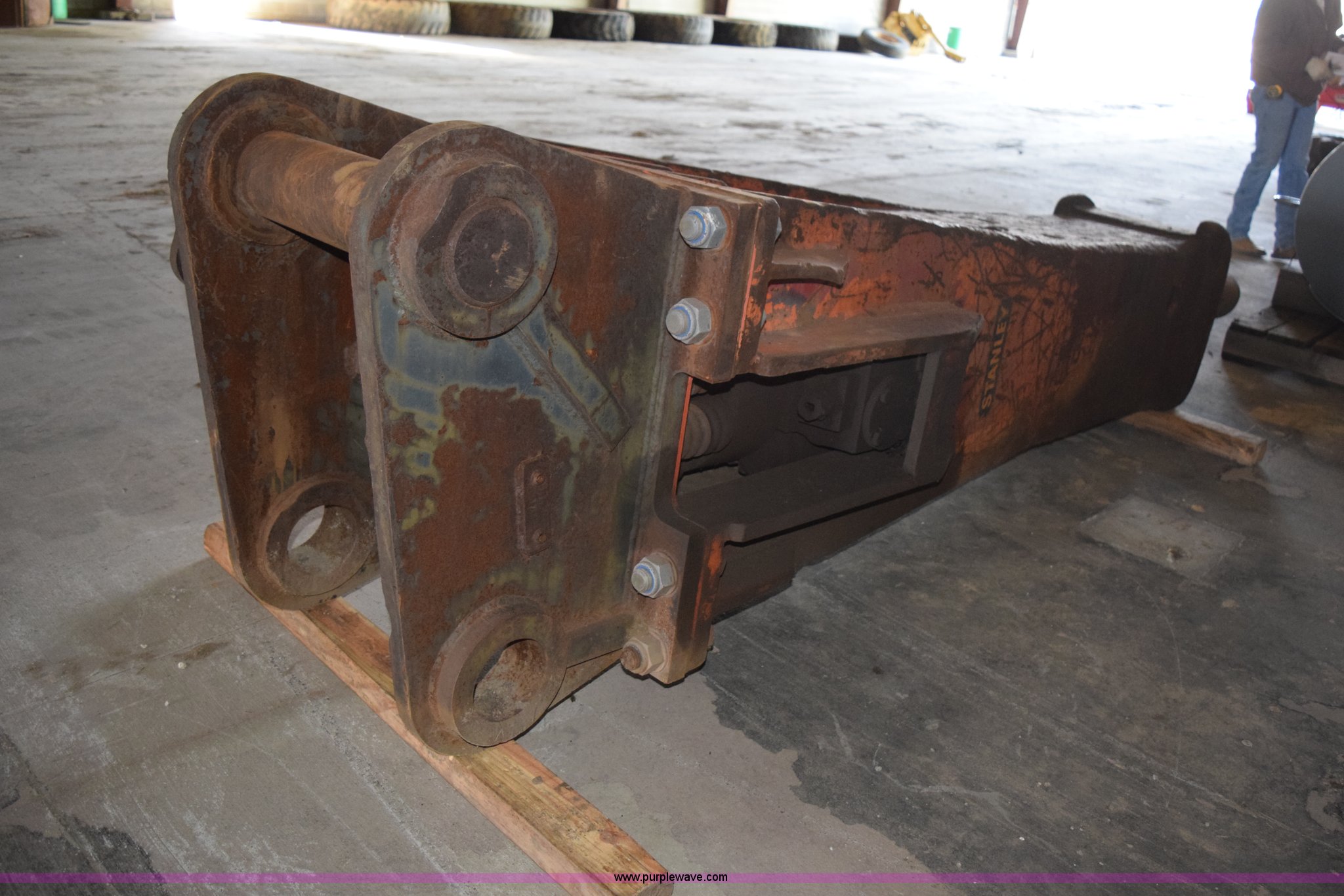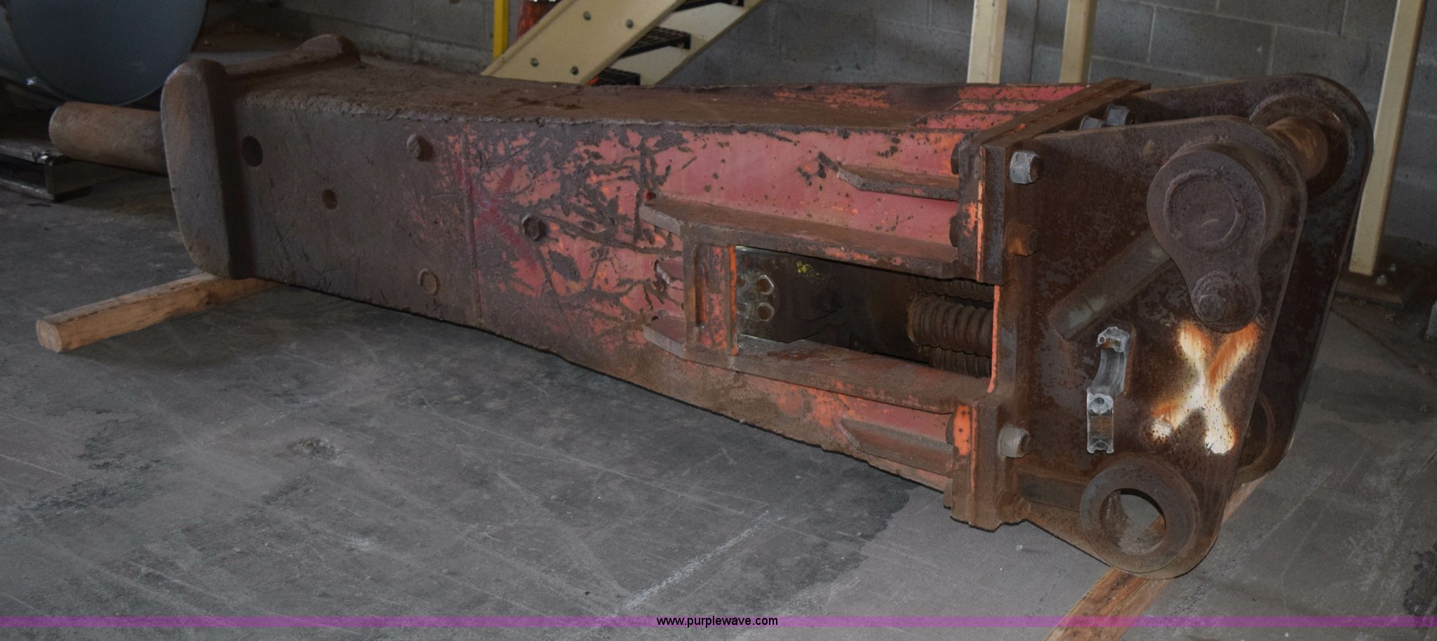 Purple Wave is selling a used Excavator Attach. in Minnesota. This item is a Stanley MB6900 hydraulic breaker with the following: 27"L x 7" diameter bit, 24" between pins, 17" between pin holes, 5" pin diameter, Serial 2158