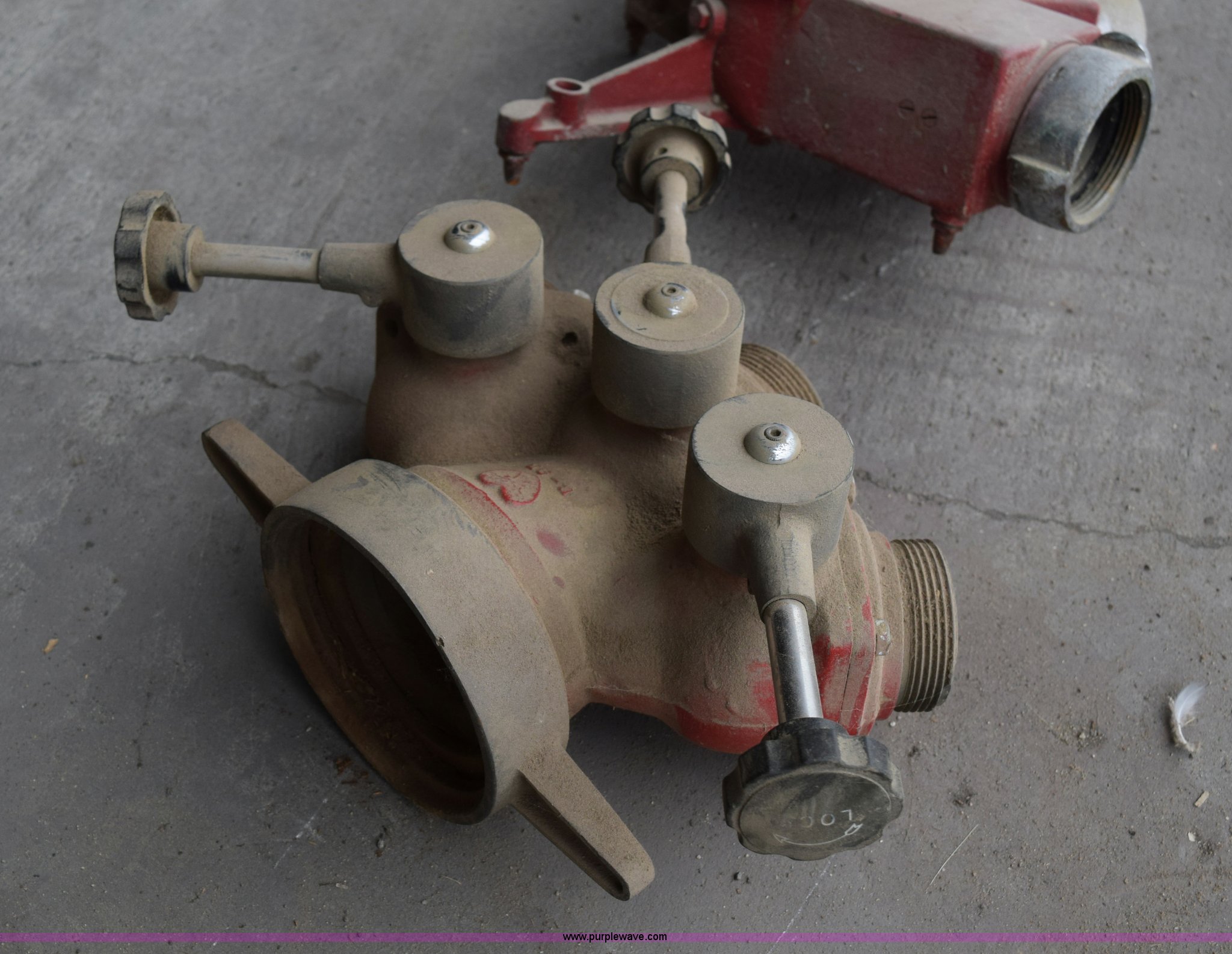 Fire truck water cannon. Manual adjust, Elk Hart one to three valve. Laurentian Properties. 9358 Highway 53. Cook, MN 55723