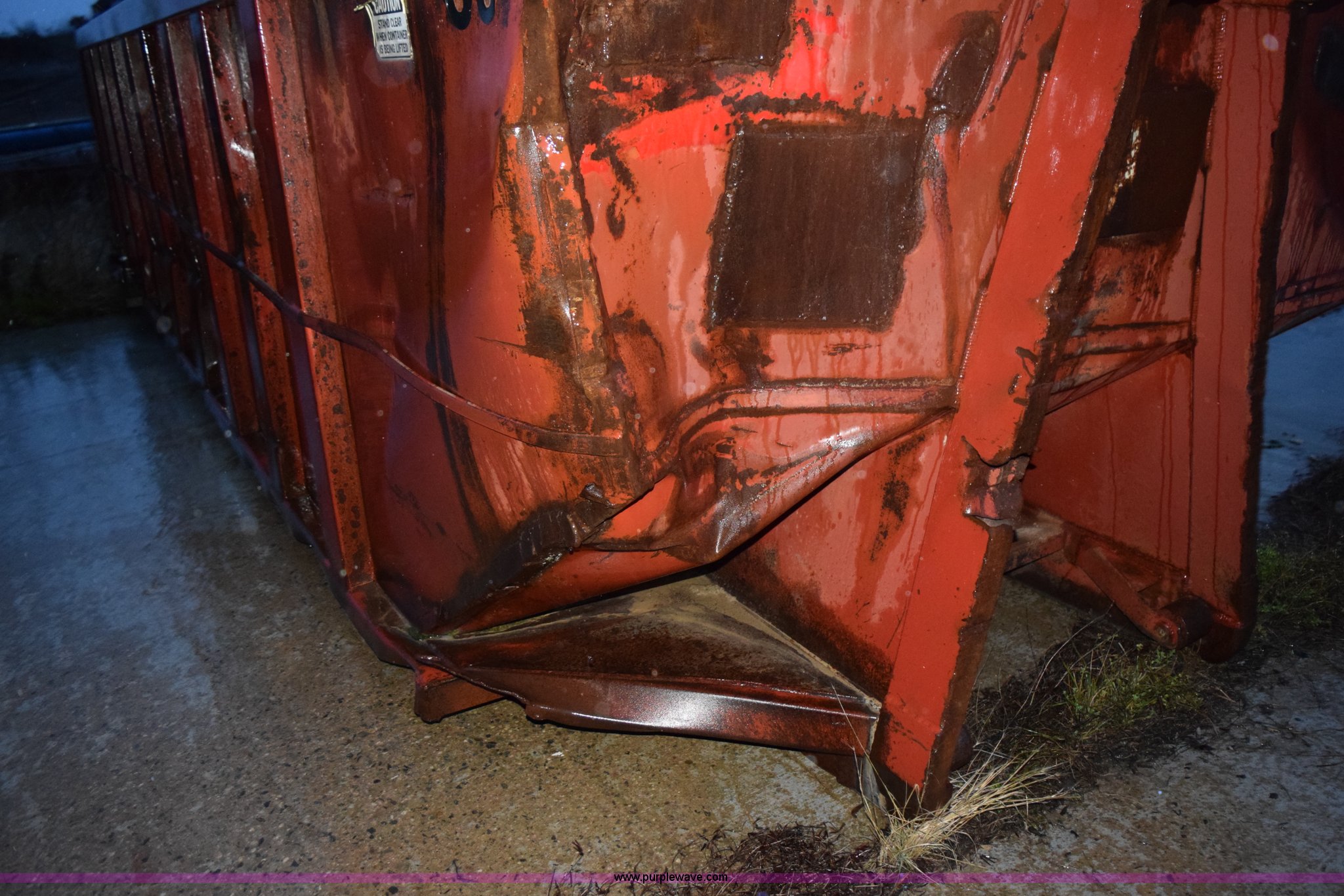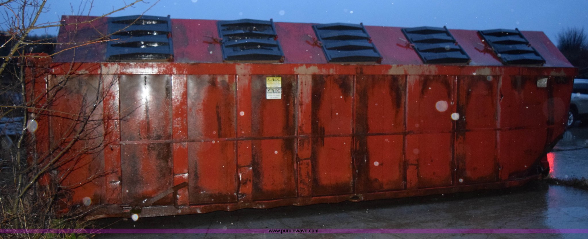 Purple Wave is selling a used Refuse or Compaction Equip. in Minnesota. This item is a (2) roll-off dumpsters with the following: 21'L x 93"W, (10) openings, Dents
