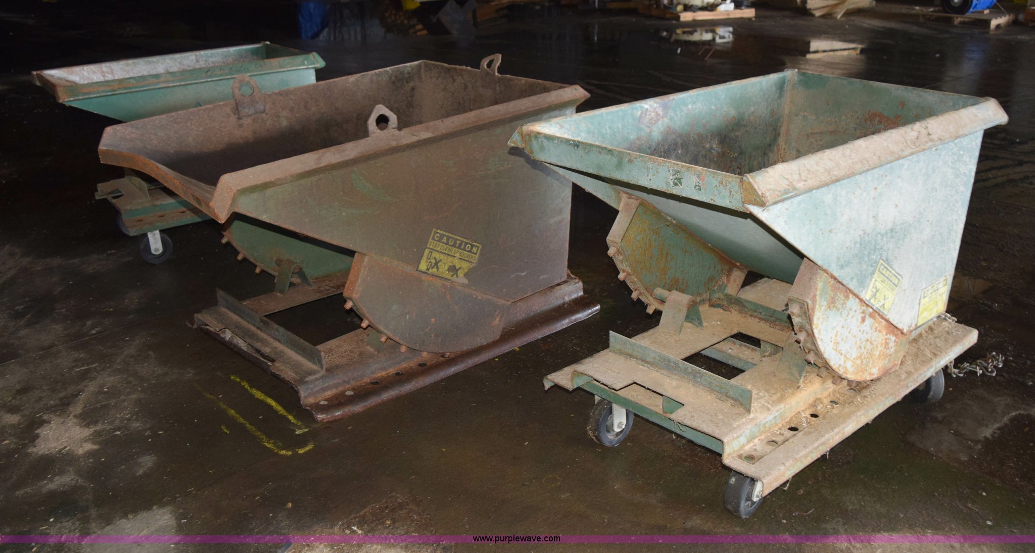 Purple Wave is selling a used Refuse or Compaction Equip. in Minnesota. This item is a (3) self-dumping hoppers with the following: 27" x 45" hopper opening, 36" x 55" hopper opening, 27" x 47" hopper opening