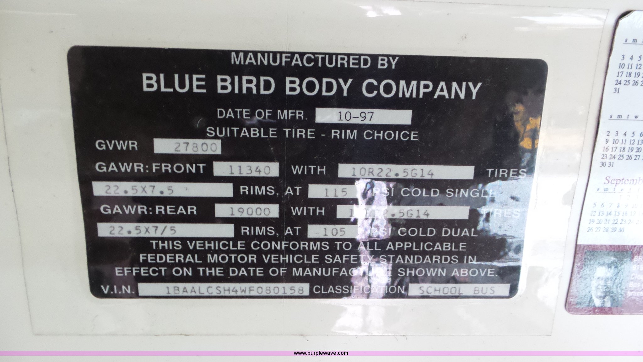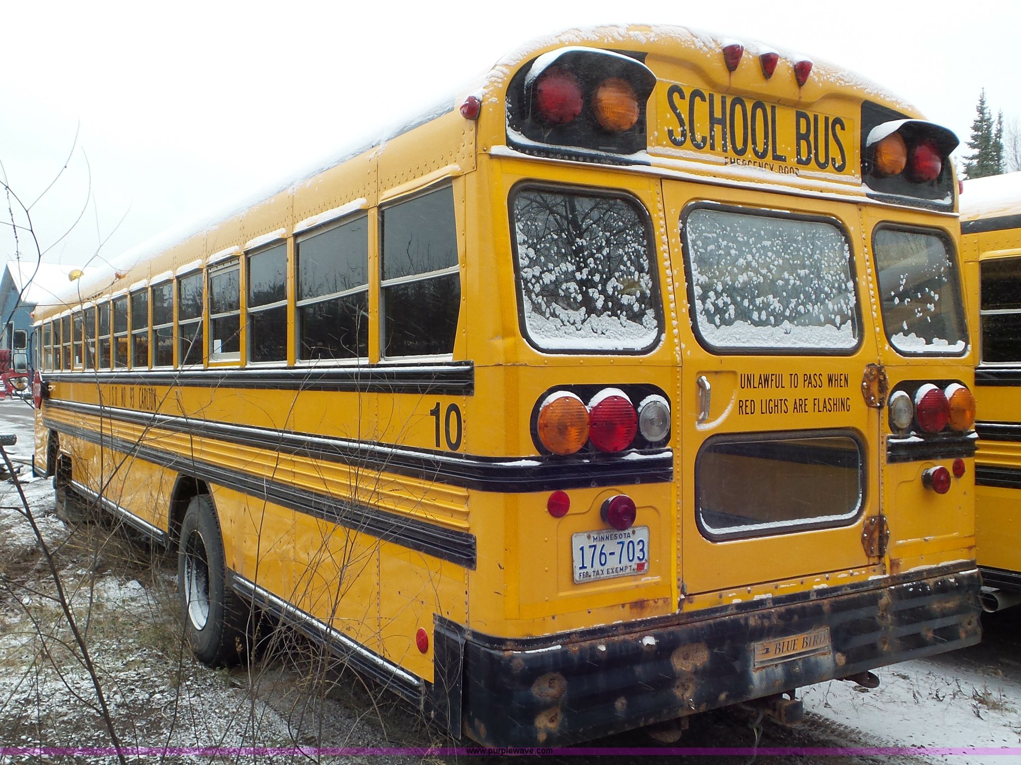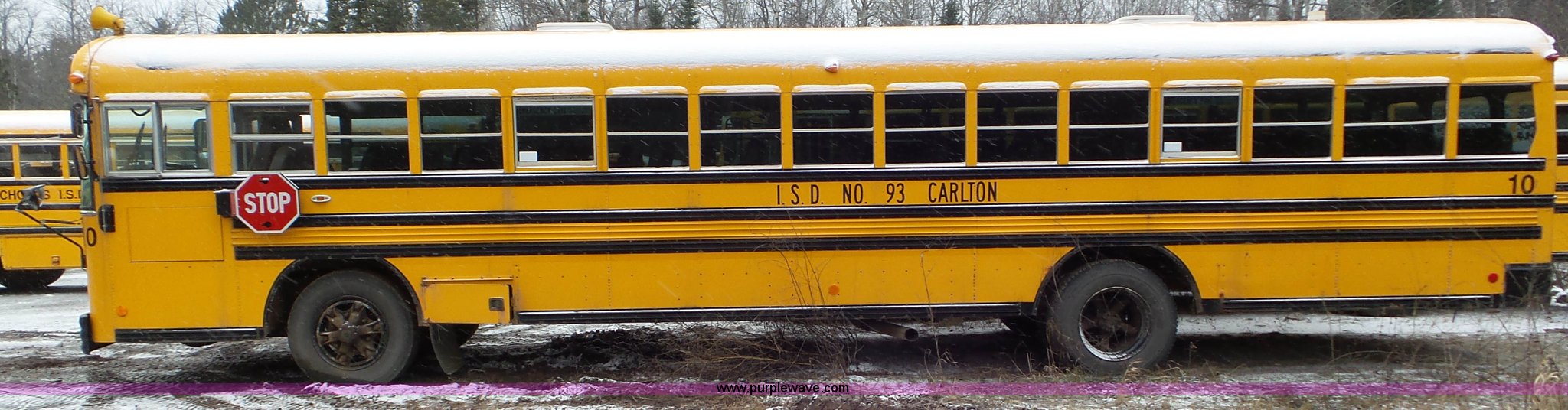 Purple Wave is selling a used Bus in Minnesota. This item is a 1998 Blue Bird TC2000 school bus with the following: 171,878 miles on odometer, Cummins ISB 5.9L L6 turbo diesel engine, Block heater, Automatic transmission, 78 passenger capacity, Front and rear heat, AM/FM, Heated mirrors, Top and rear emergency egress, Spring suspension, Hydraulic brakes, 10R22.5 tires