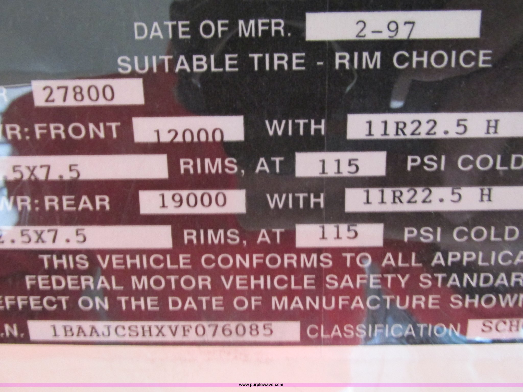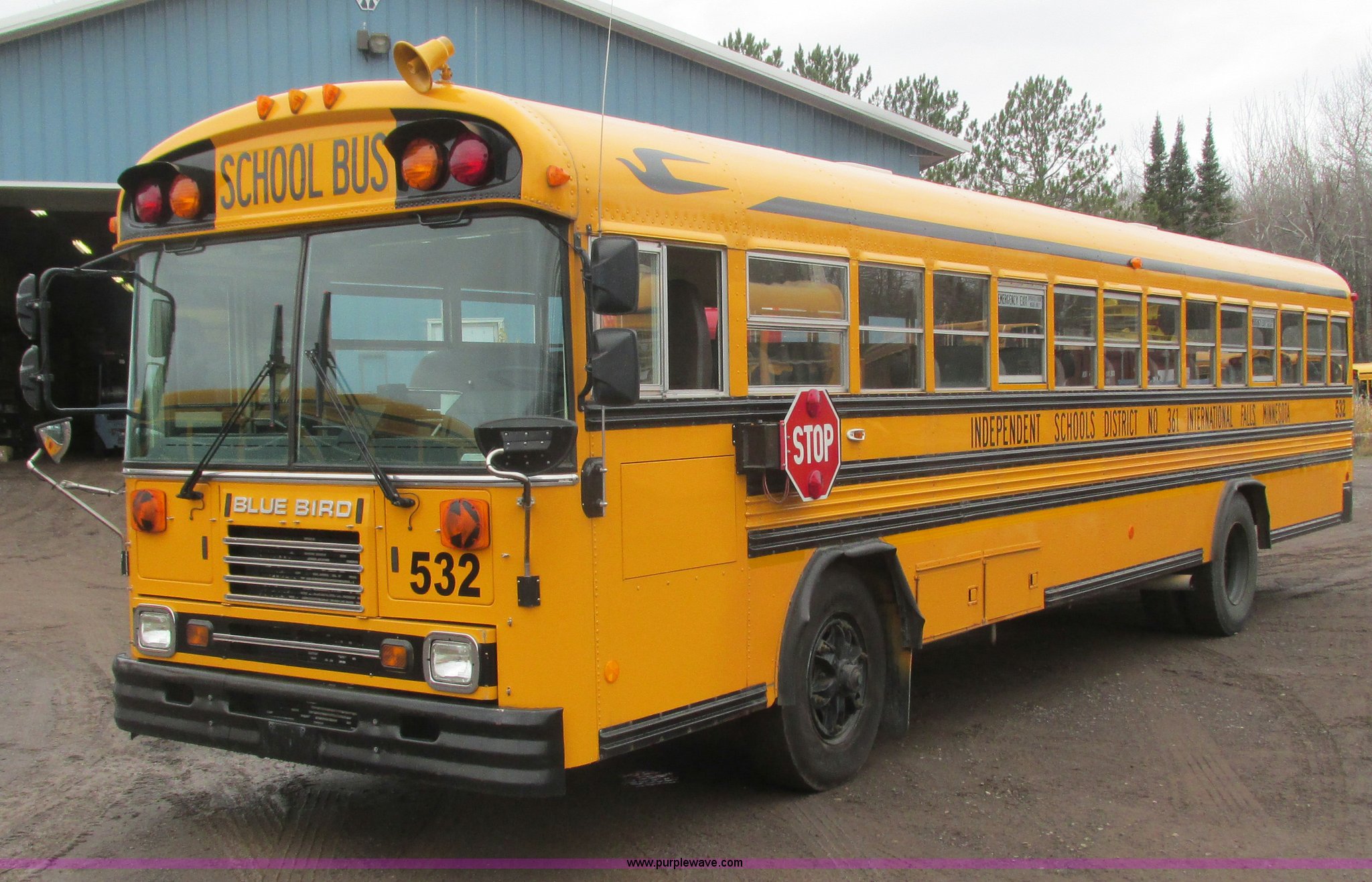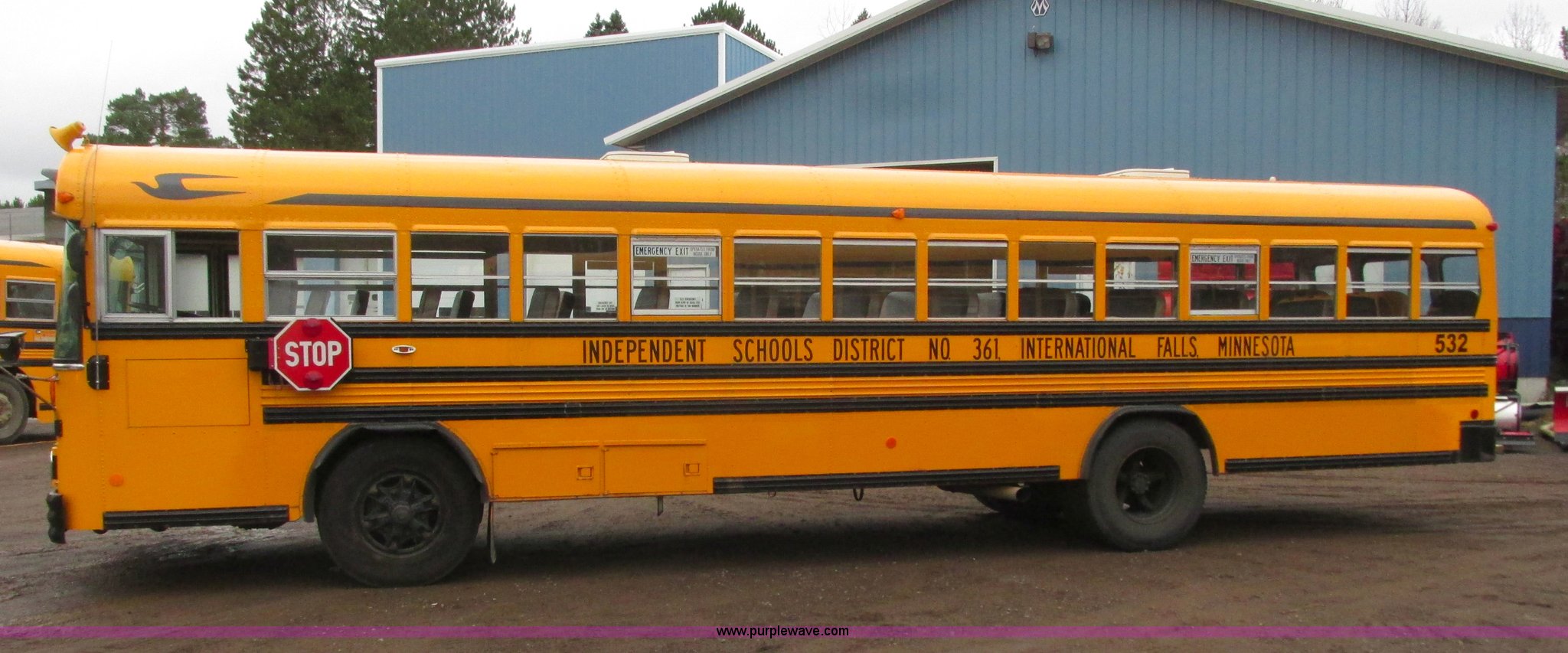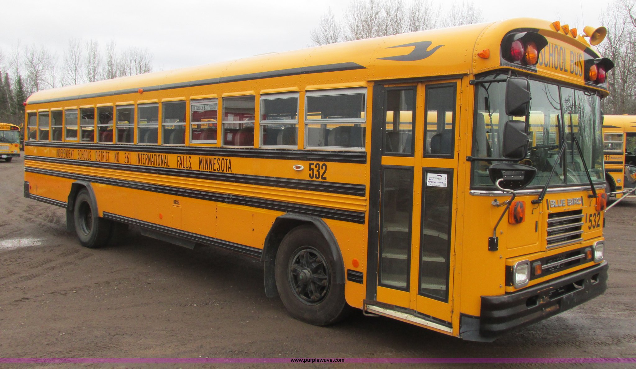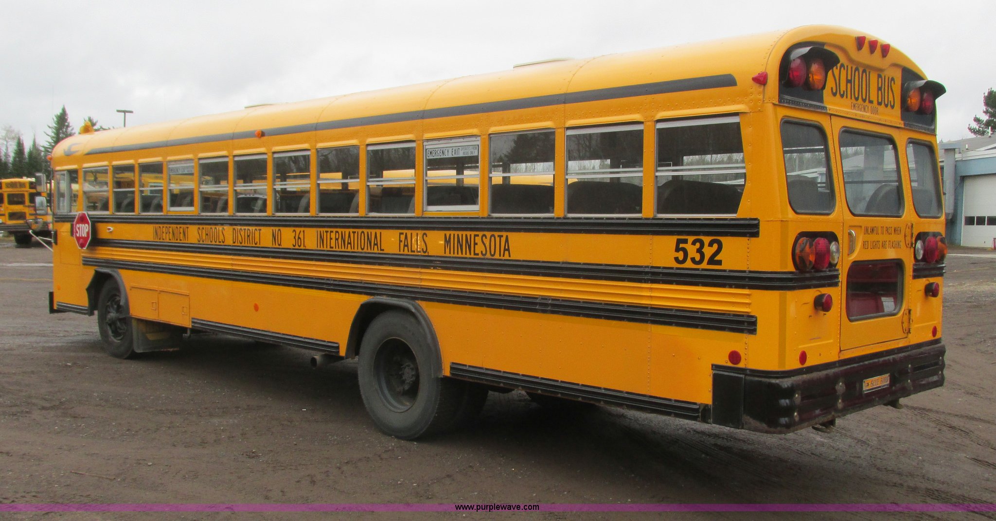 Purple Wave is selling a used Bus in Minnesota. This item is a 1997 Blue Bird TC2000 school bus with the following: 124,620 miles on odometer, 7,406 hours on meter, Cummins ISB 5.9L L6 turbo diesel engine, Block heater, Automatic transmission, 71 passenger capacity, Heated mirrors, Front and rear heat, Top and rear emergency egress, Front tow hooks, 11R22.5 tires, GVWR 27,800 lbs