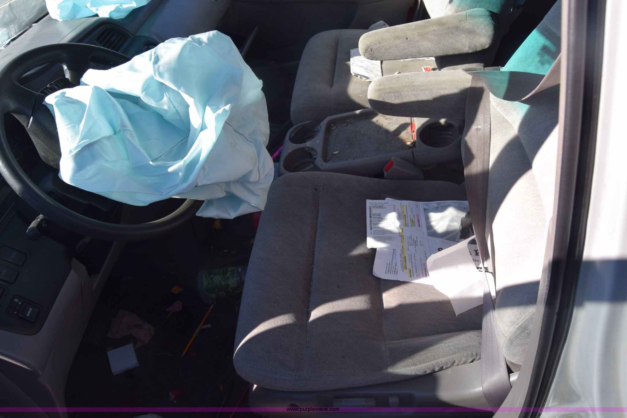 Purple Wave is selling a used Passenger Vehicle in Kansas. This item is a 2001 Honda Odyssey EX van with the following: Unknown miles on odometer, 3.5L V6 SOHC 24V gas engine, Automatic transmission, AC and heat, Tilt, Cruise, AM/FM/CD, Power windows, locks, mirrors, and seats, Cloth interior, 215/65R16 tires, Substantial front end damage, Air bags deployed, Interior/exterior cosmetic damage, Dents and scratches, Case# 15C054968
