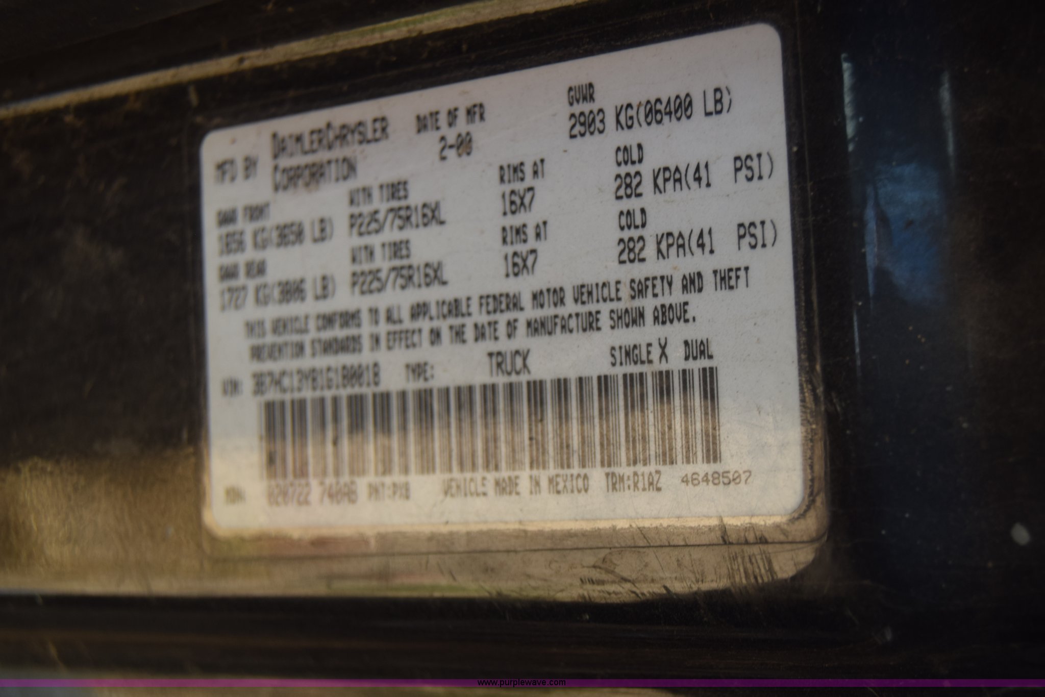 Purple Wave is selling a used 1/2 Ton Pickup or Van in Kansas. This item is a 2001 Dodge Ram 1500 Quad Cab pickup truck with the following: Unknown miles on odometer, 5.2L V8 OHV 16V gas engine, Automatic transmission, AC and heat, Tilt, Cruise, AM/FM/CD, Power windows, locks, and mirrors, Cloth interior, 245/75R16 tires, Keys, Passenger door removed, Windshield cracked, Interior/exterior cosmetic damage, Dents and scratches, Case# 15C058232