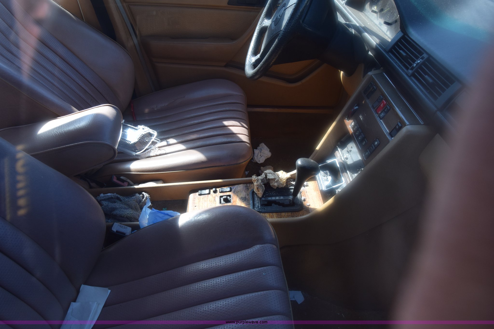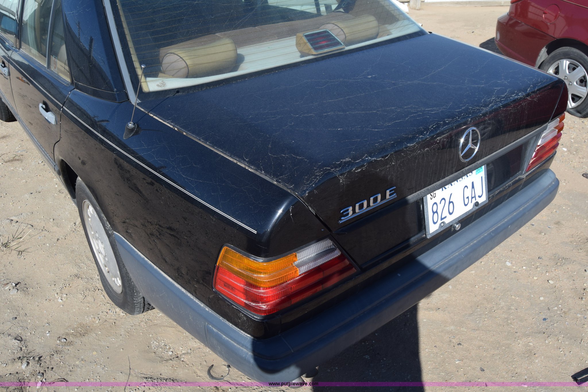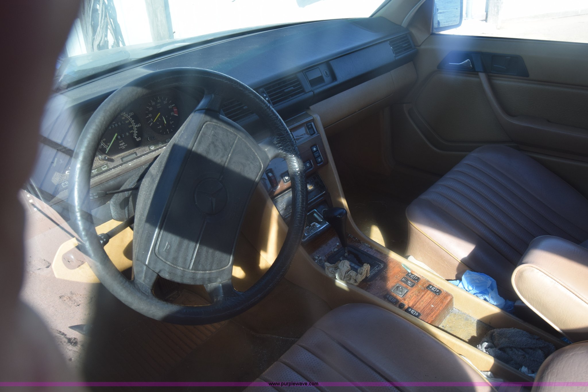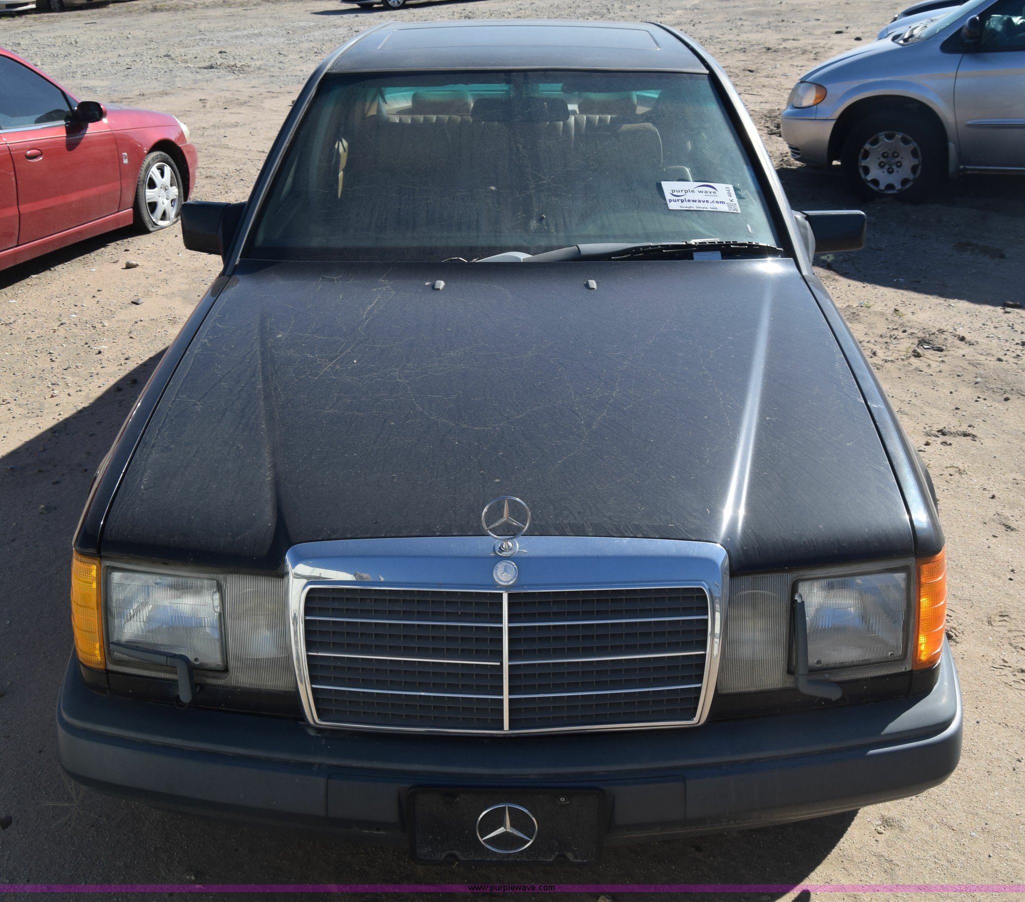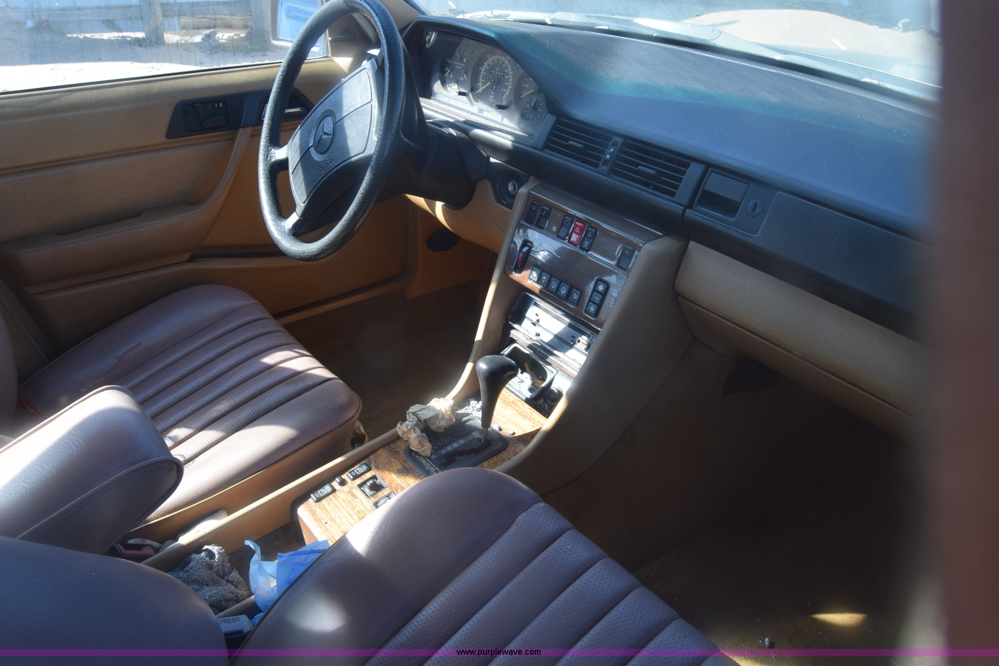 Purple Wave is selling a used Passenger Vehicle in Kansas. This item is a 1989 Mercedes Benz 300E with the following: Unknown miles on odometer, 3.0L L6 SOHC 12V gas engine, Automatic transmission, AC and heat, Tilt, Cruise, AM/FM, Power windows, locks, mirrors, and seats, Leather interior, Sunroof, 195/65R15 tires, Interior/exterior cosmetic damage, Doors locked, Dents and scratches, Case# 15C055059