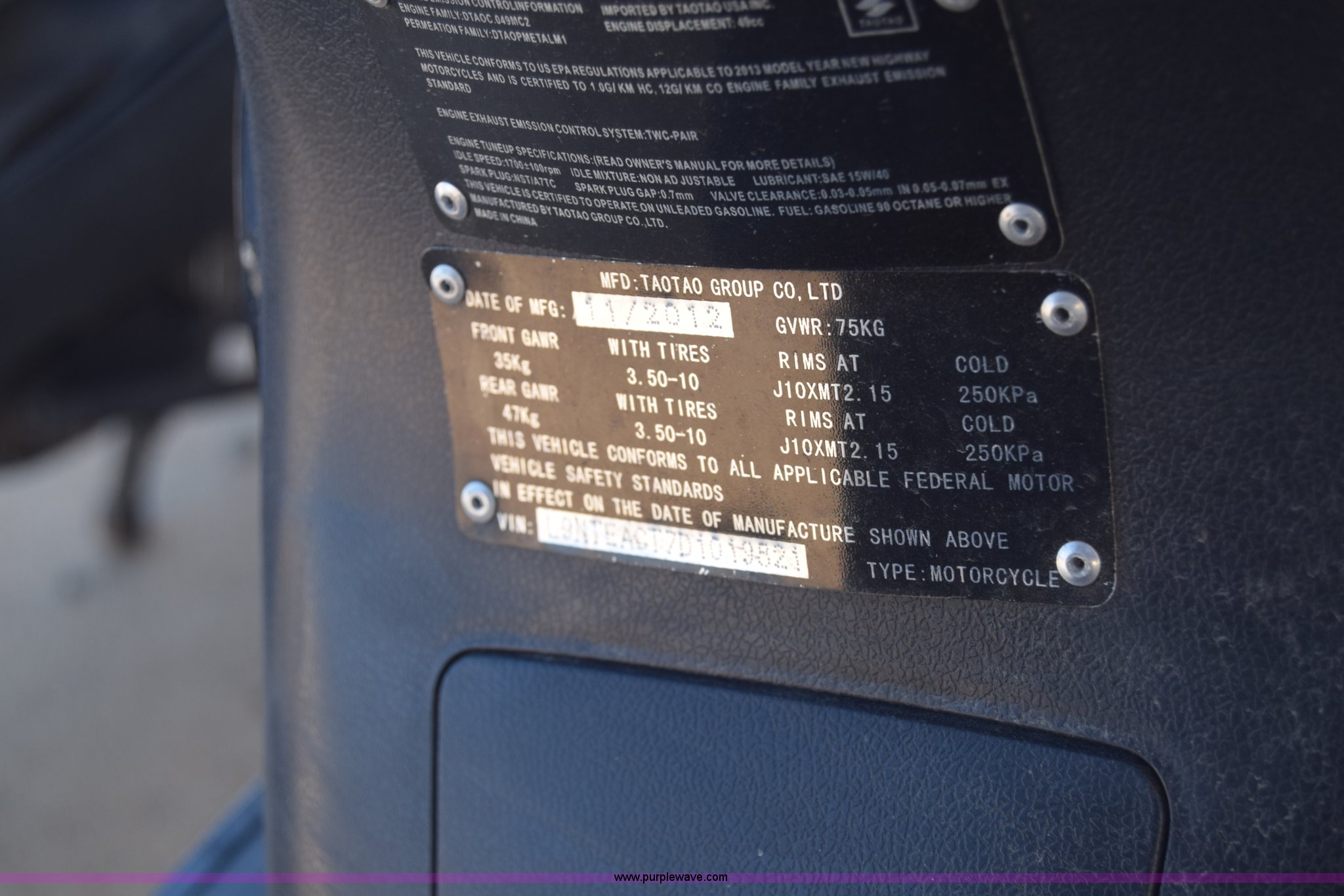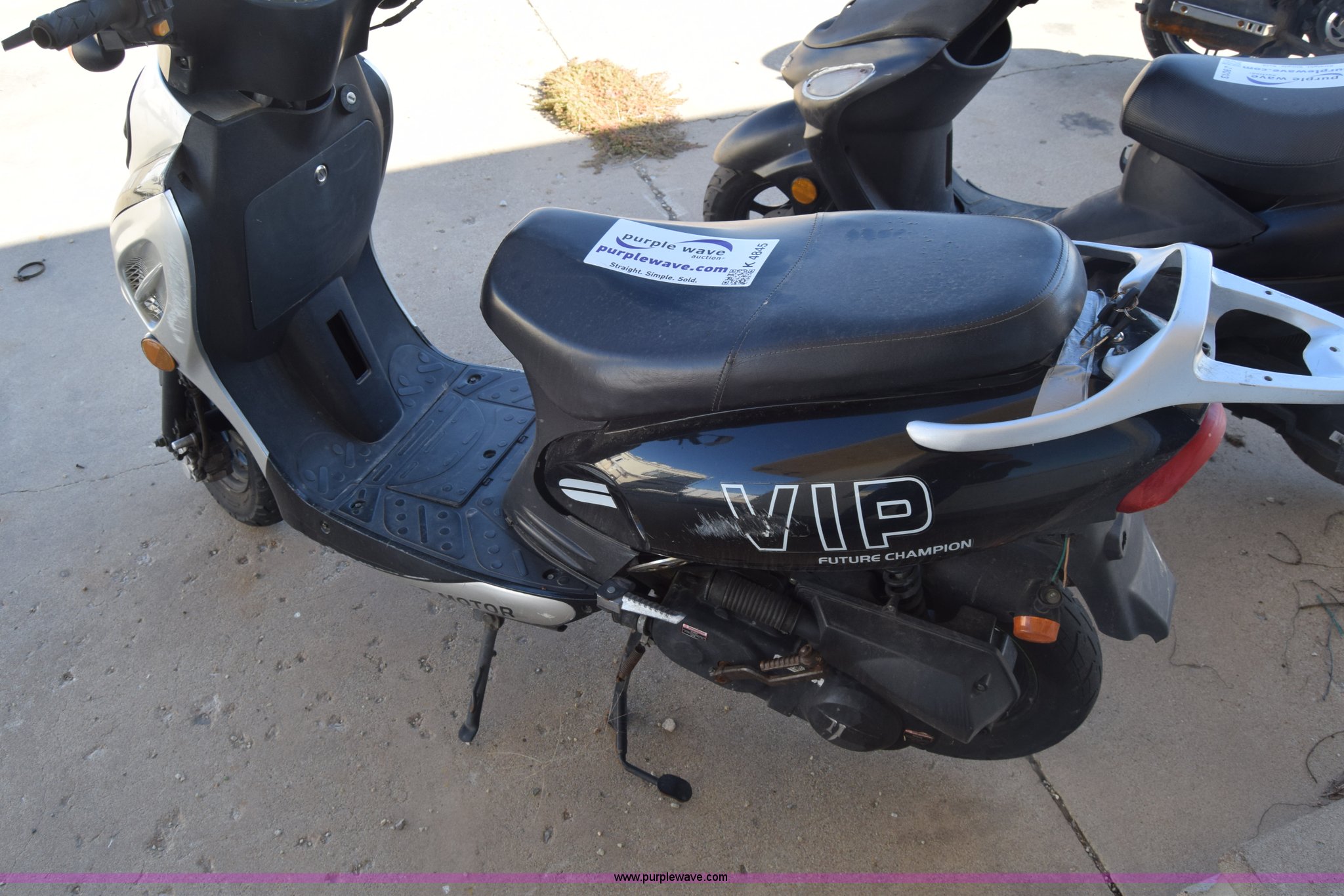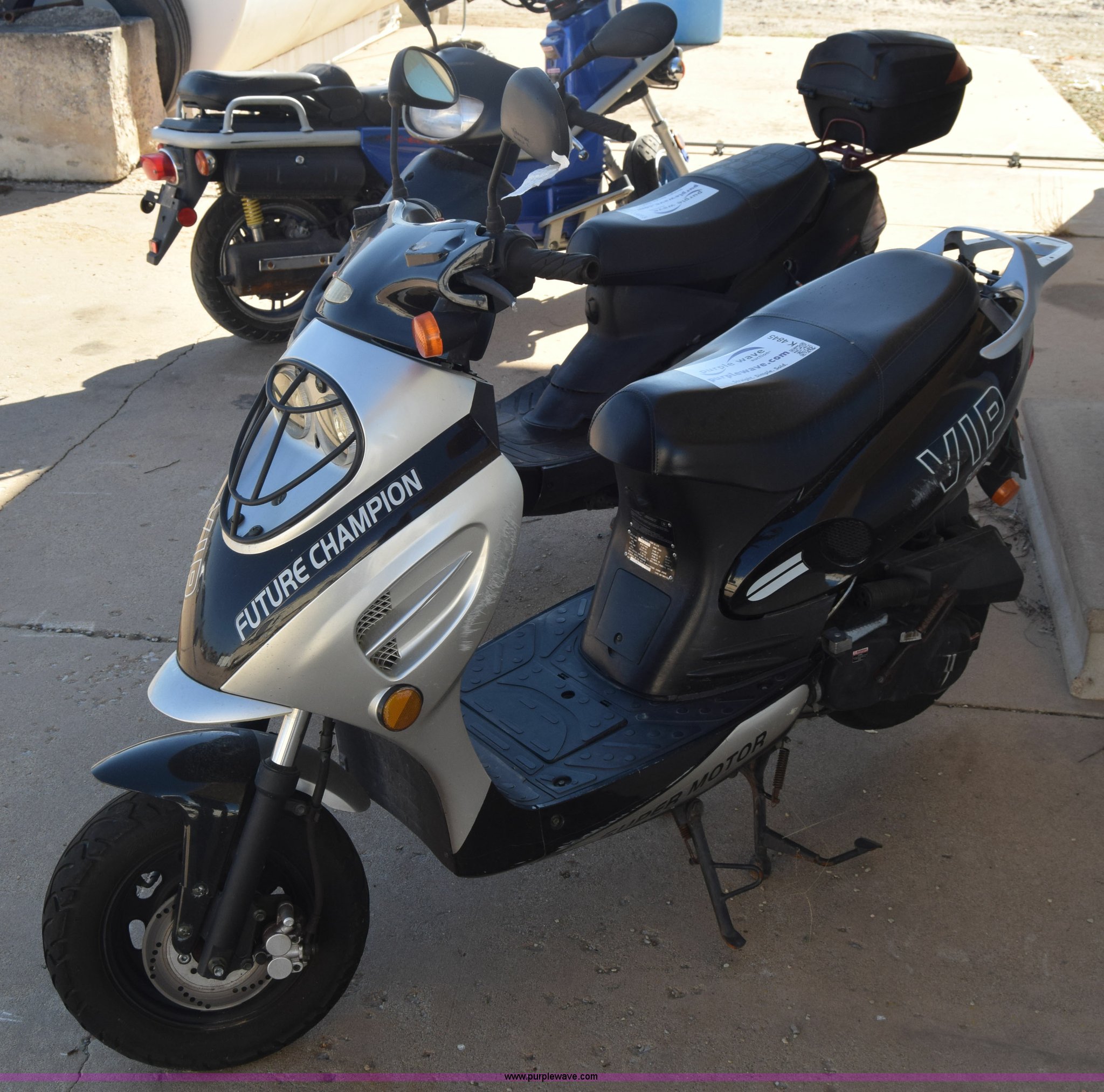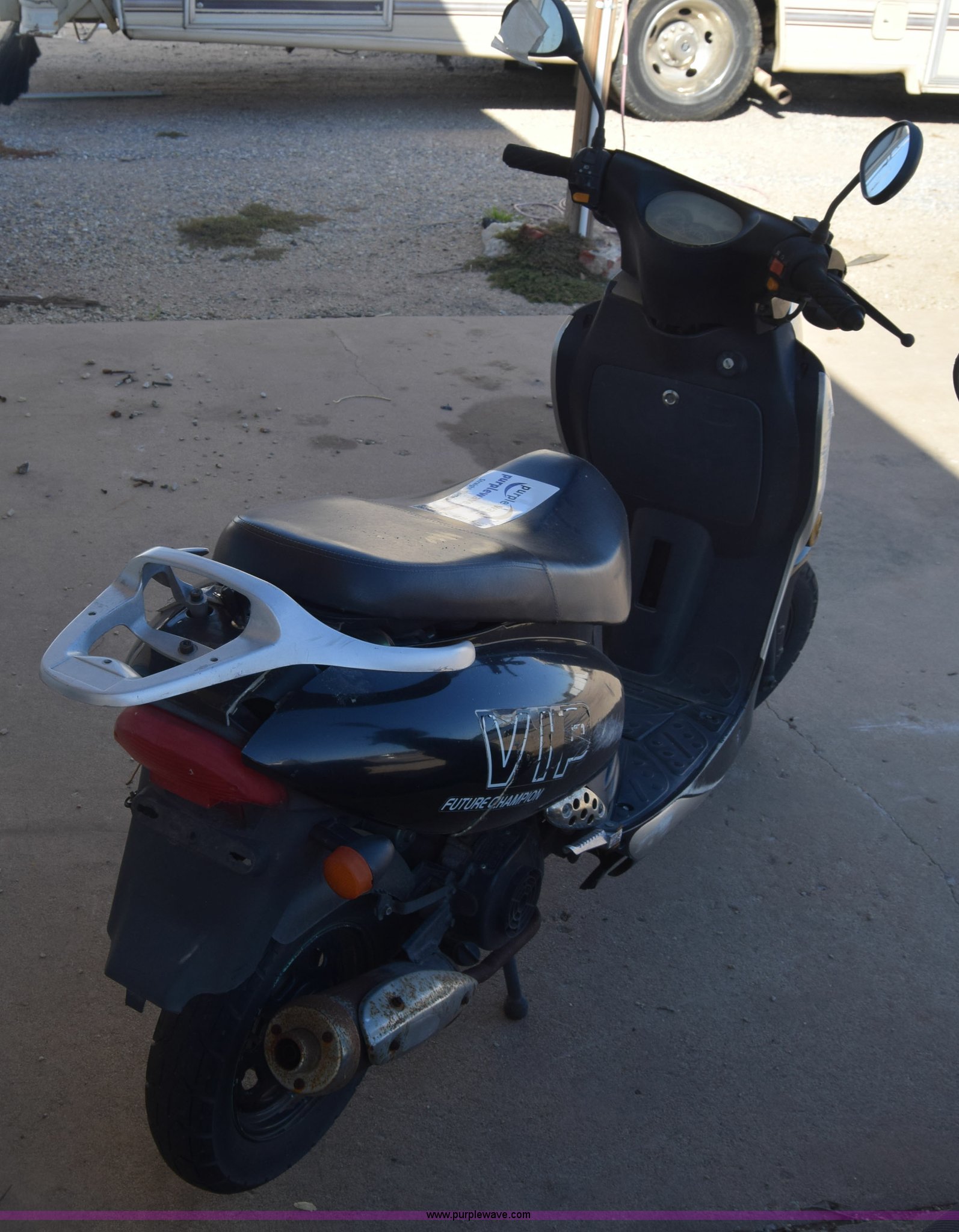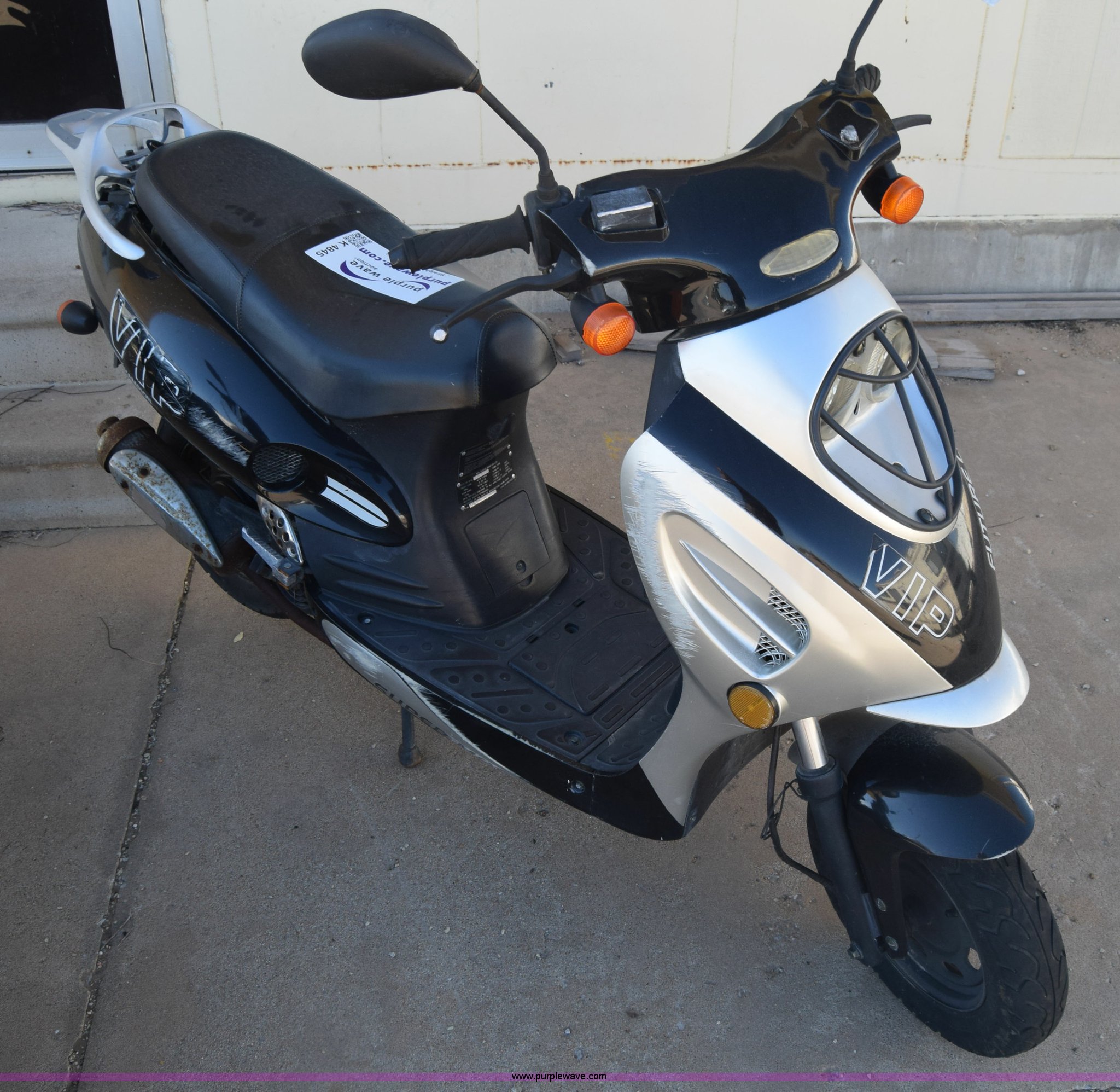 Purple Wave is selling a used Motorcycle in Kansas. This item is a 2007 VIP moped with the following: 7,517 miles on odometer, Gas engine, Automatic transmission, 3.50-10 tires, Dents, Scratches, Case# 15C58120
