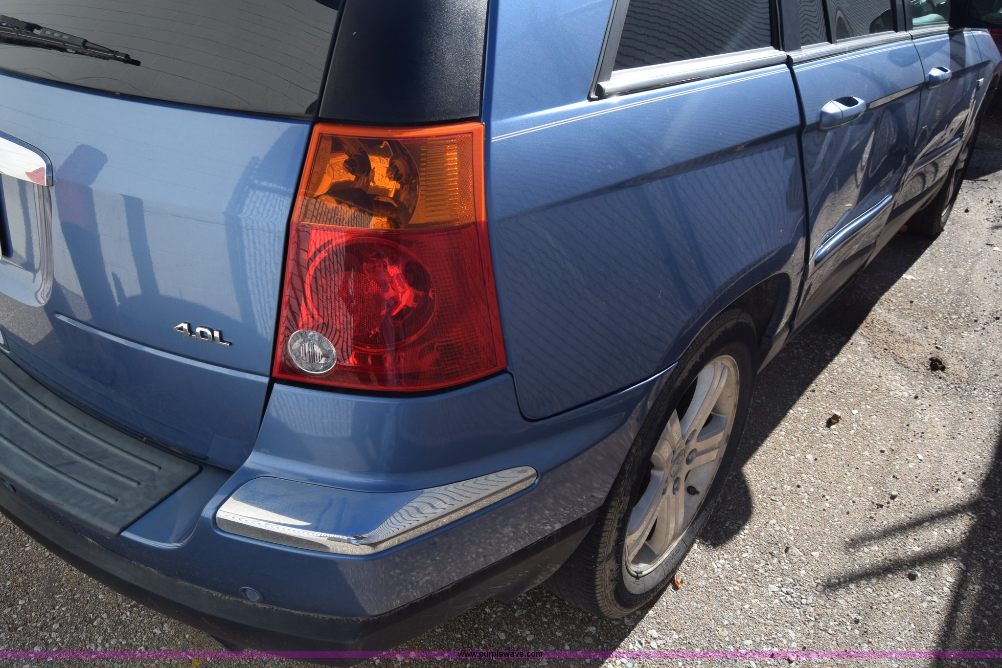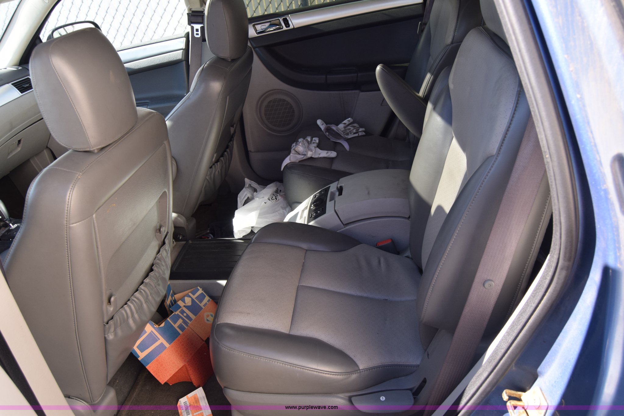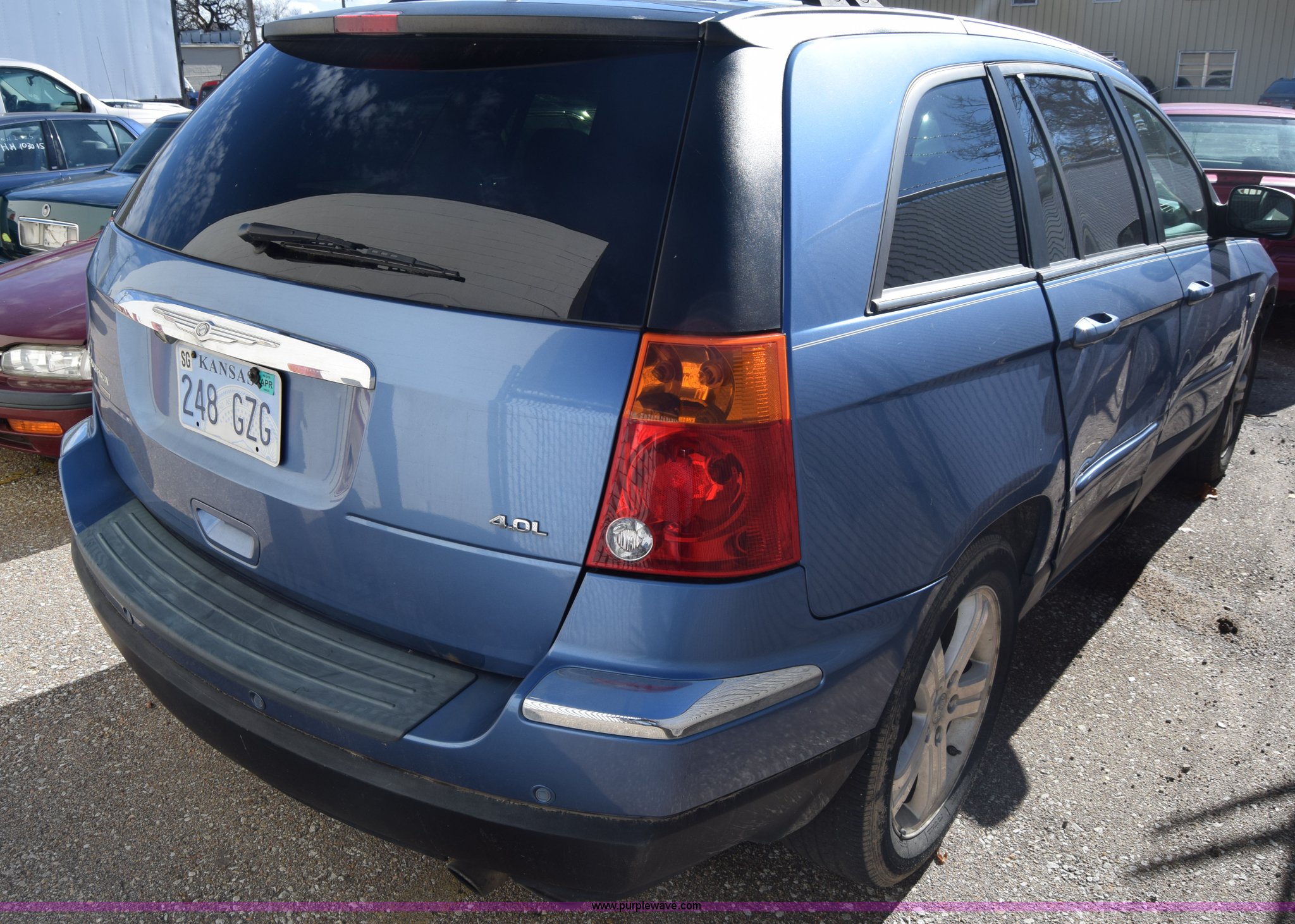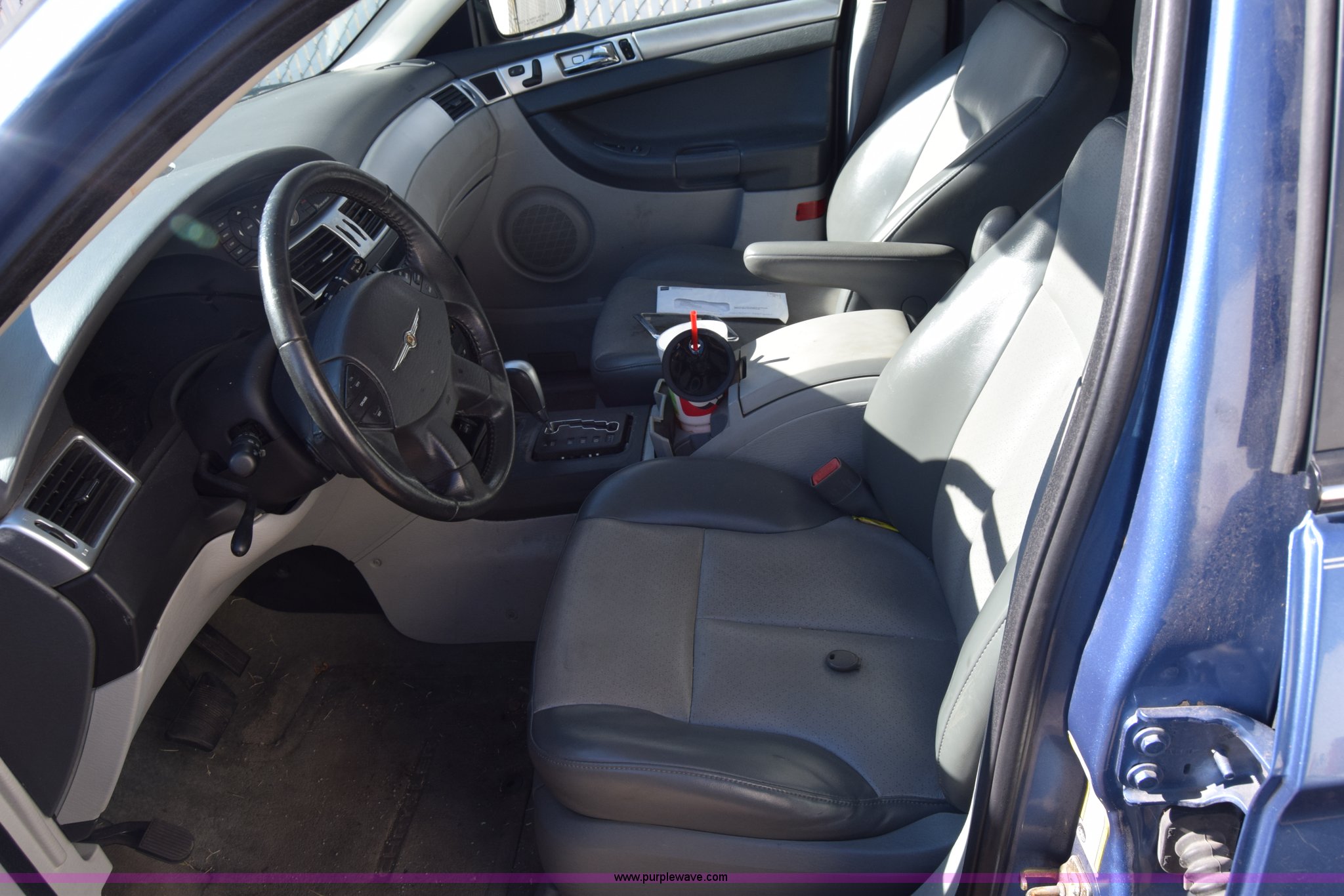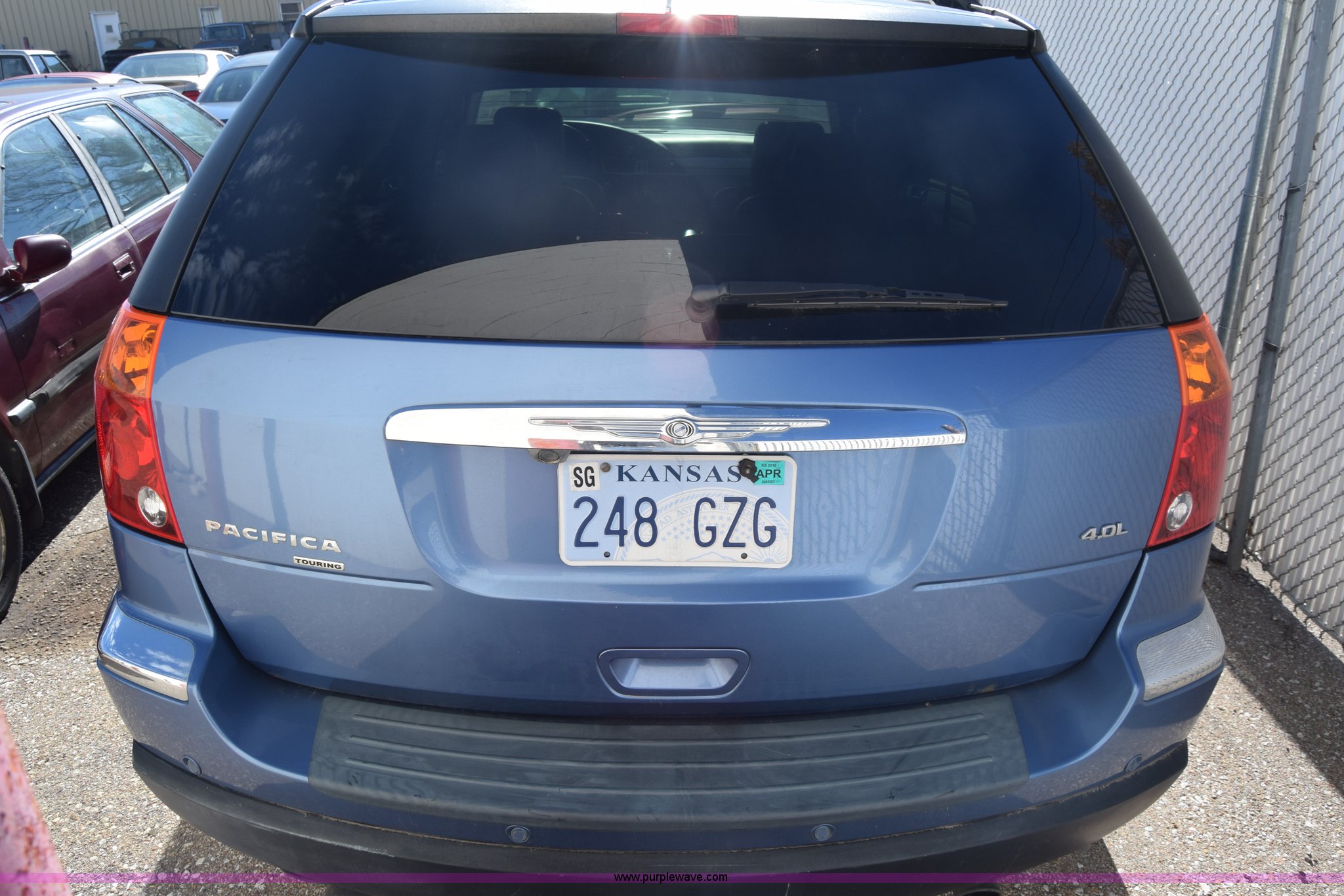 Purple Wave is selling a used Passenger Vehicle in Kansas. This item is a 2007 Chrysler Pacifica Touring SUV with the following: Unknown miles on odometer, 4.0L V6 SOHC 24V gas engine, Automatic transmission, AC and heat, Tilt, Cruise, AM/FM/CD, Power windows, locks, and mirrors, Leather interior, Sunroof, 245/55R19 tires, Interior/exterior cosmetic damage, Dents and scratches, Case# 15C56329