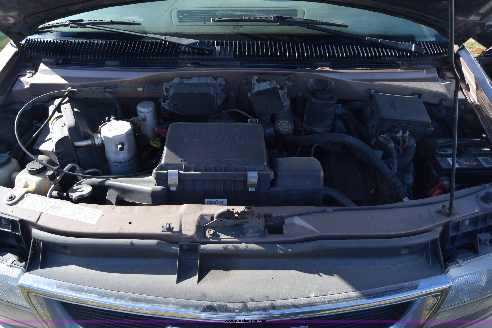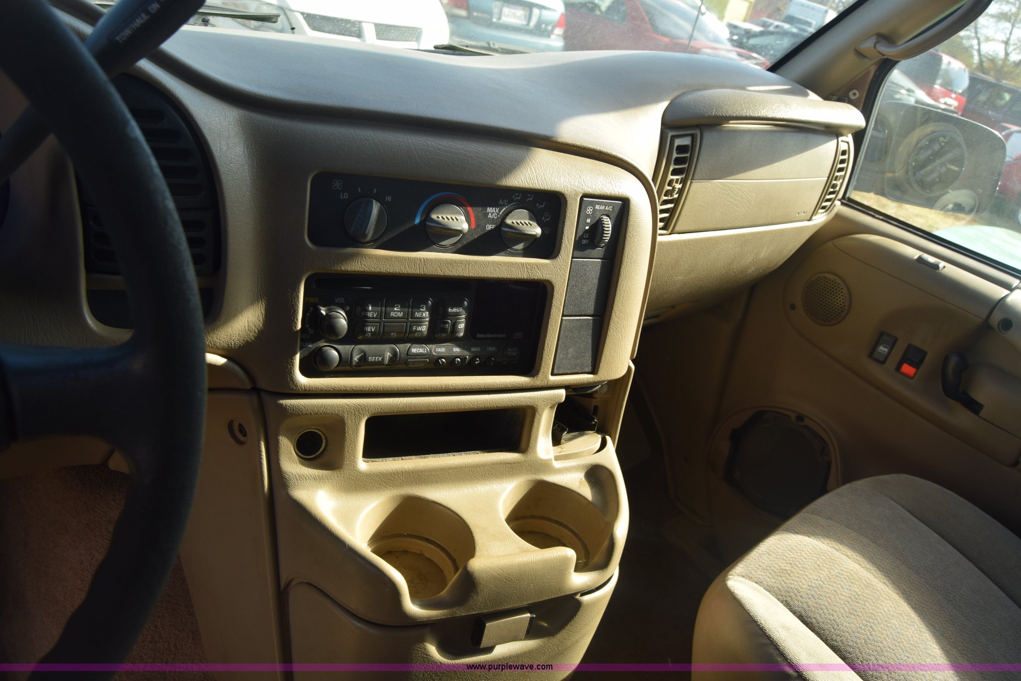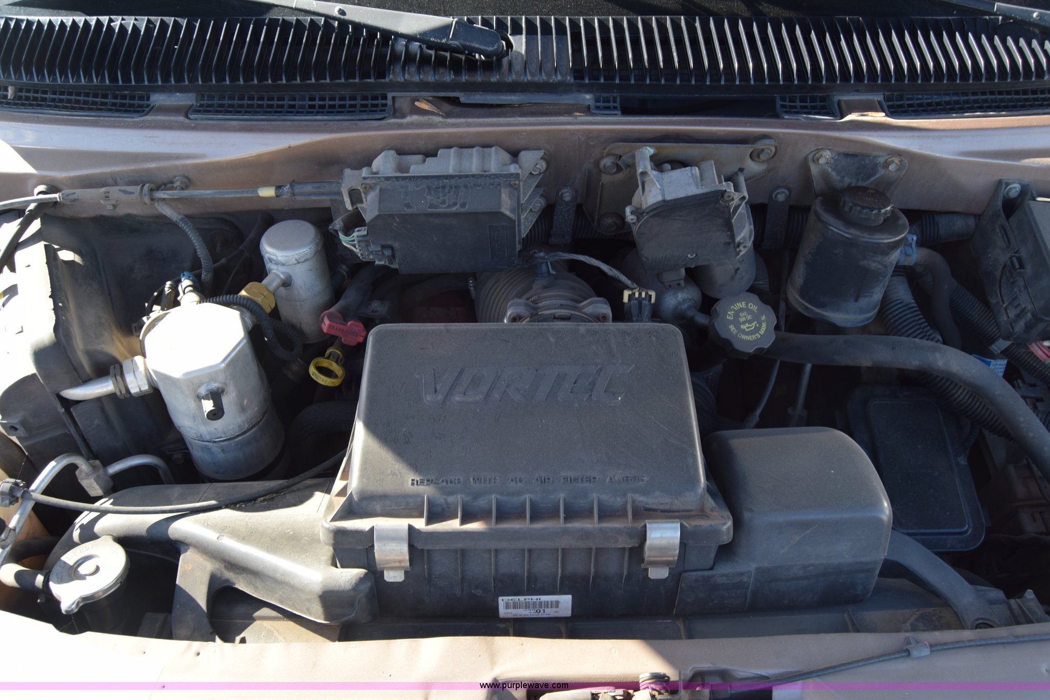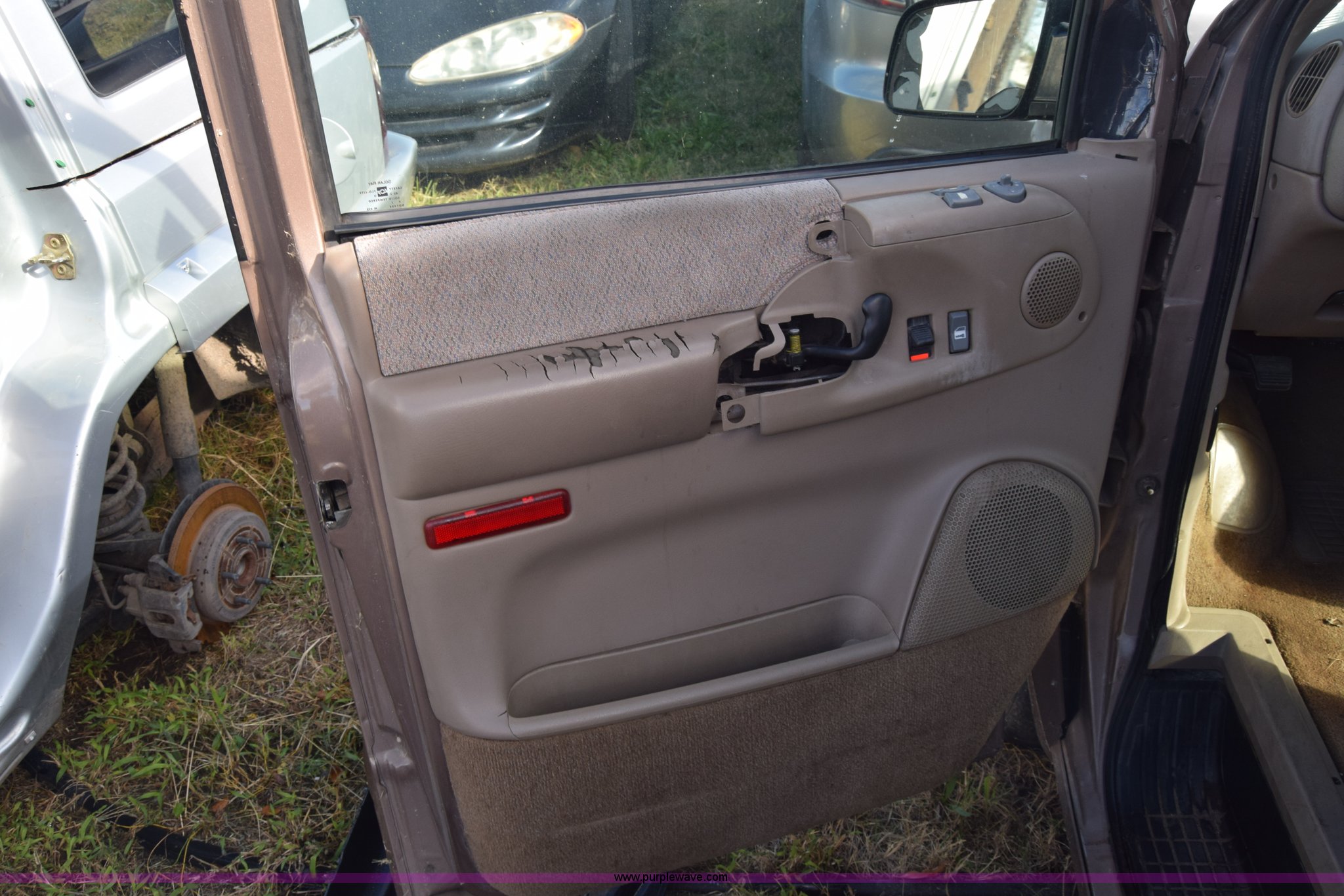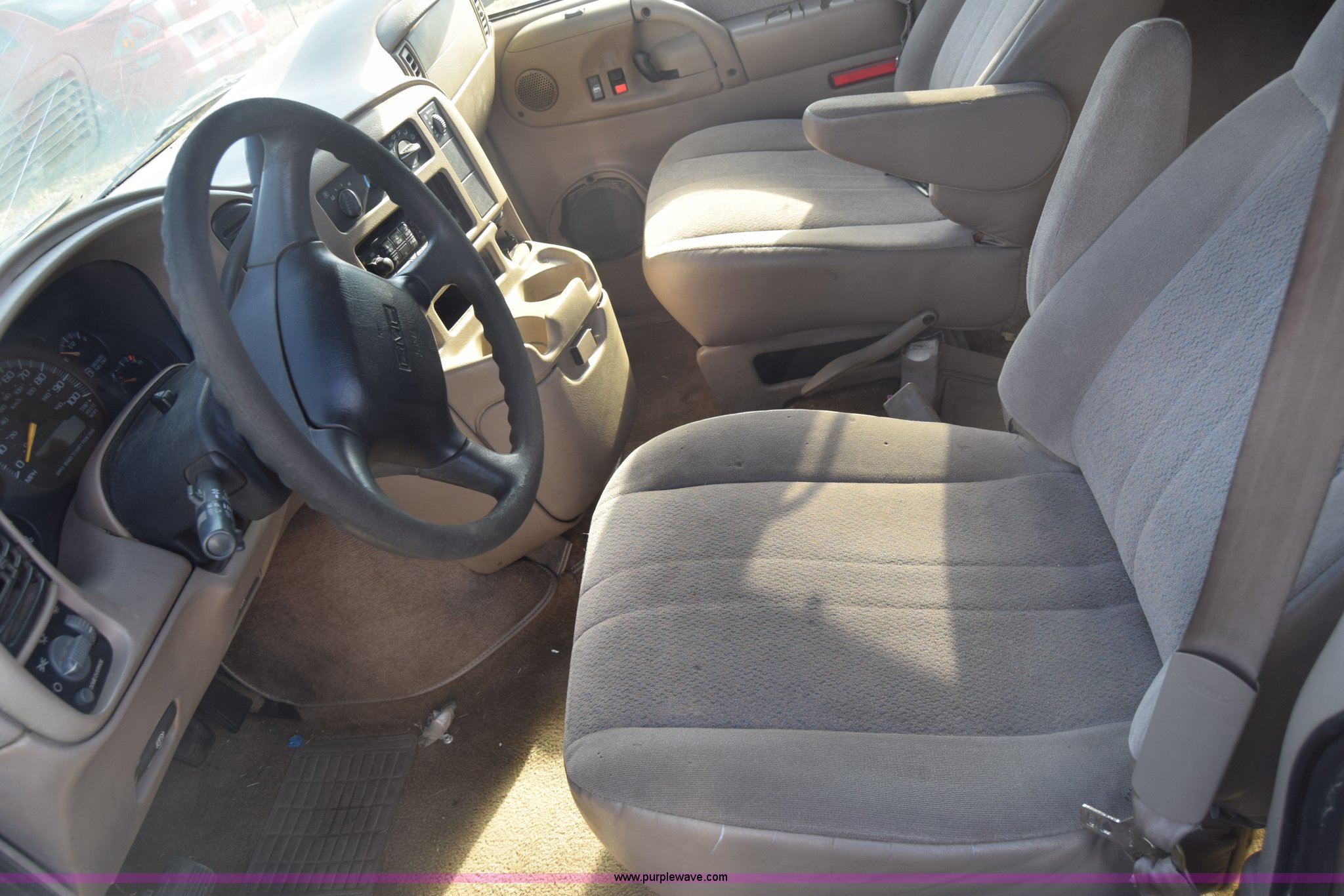 Purple Wave is selling a used Passenger Vehicle in Kansas. This item is a 2001 GMC Safari van with the following: Unknown miles on odometer, 4.3L V6 OHV 12V gas engine, Automatic transmission, AC and heat, Tilt, Cruise, AM/FM/CD, Power windows, locks, and mirrors, Cloth interior, 225/70R15 tires, Keys, Interior/exterior cosmetic damage, Dents and scratches, Windshield cracked, Unit# 15C51423