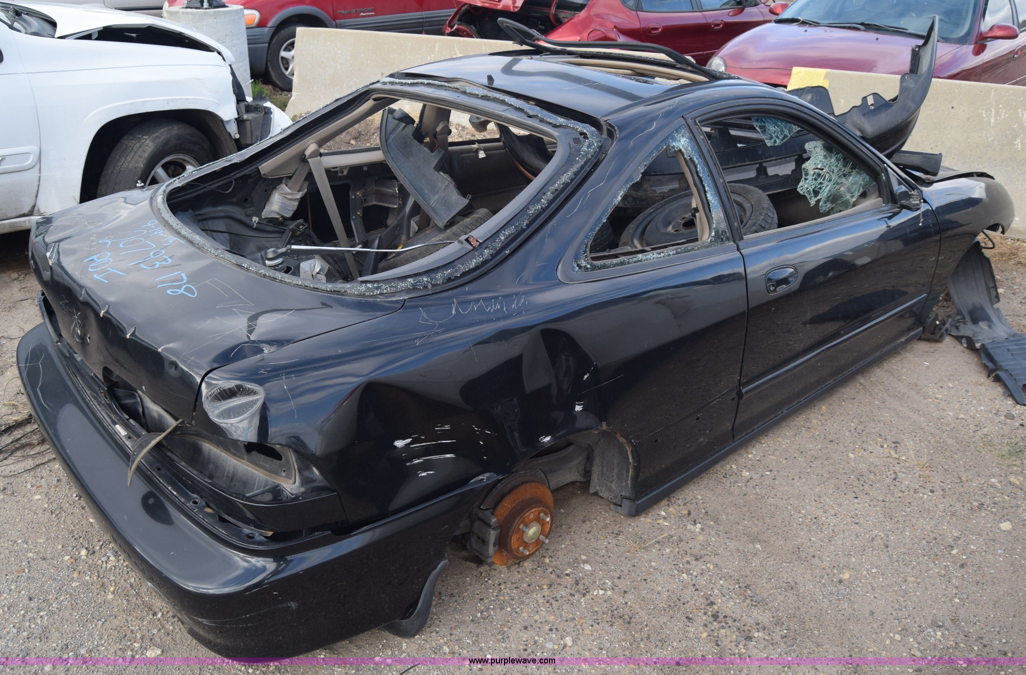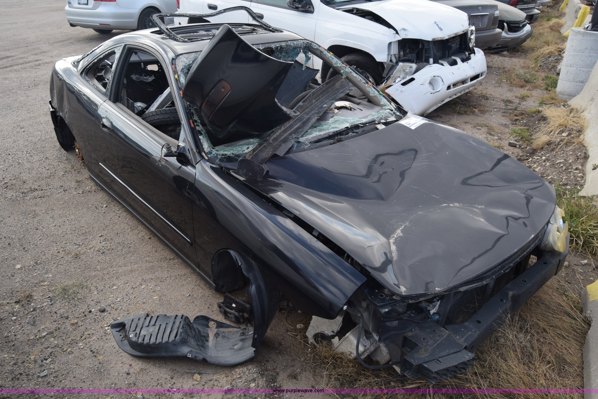 Purple Wave is selling a used Passenger Vehicle in Kansas. This item is a 1999 Acura Integra LS with the following: Unknown miles on odometer, 1.8L L4 DOHC 16V gas engine, Automatic transmission, AC and heat, AM/FM, Power windows and locks, Sunroof, Substantial body damage, Wheels removed, Windows broken, Hood will not open, Case# 15C061377