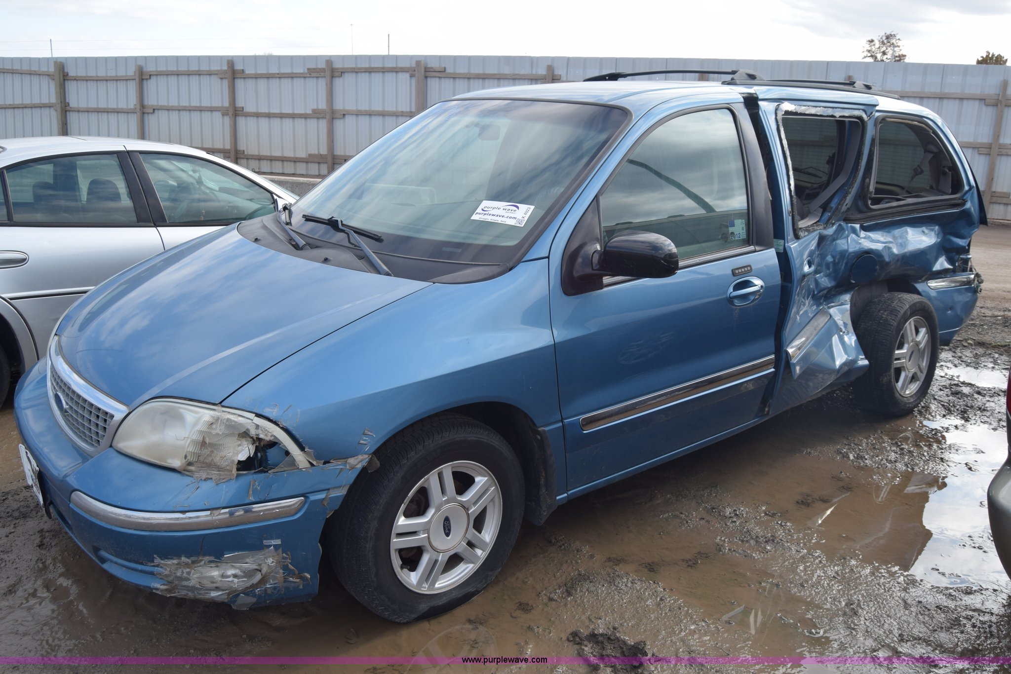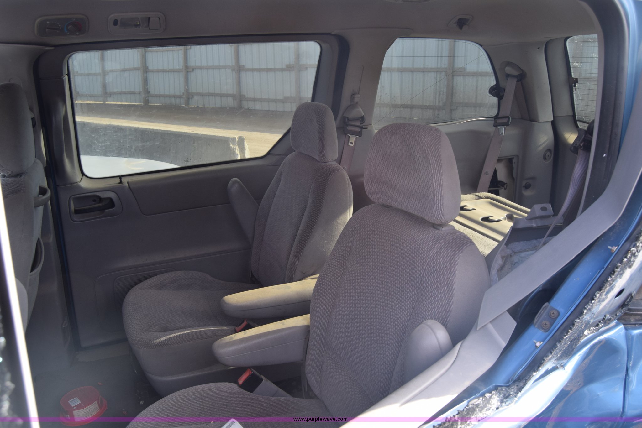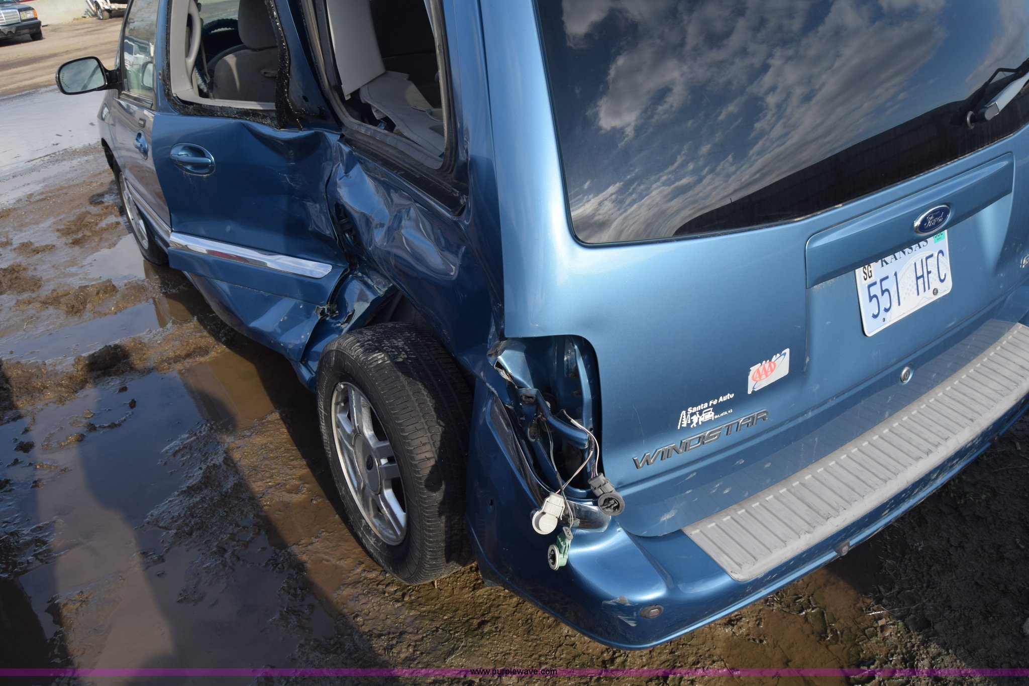 Purple Wave is selling a used Passenger Vehicle in Kansas. This item is a 2002 Ford Windstar SE van with the following: Unknown miles on odometer, 3.8L V6 OHV 12V gas engine, Automatic transmission, AC and heat, Cruise, AM/FM/CD, Power windows, locks, and mirrors, Cloth interior, 215/65R16 tires, Substantial body damage, Interior/exterior cosmetic damage, Dents and scratches, Case# 15C59778