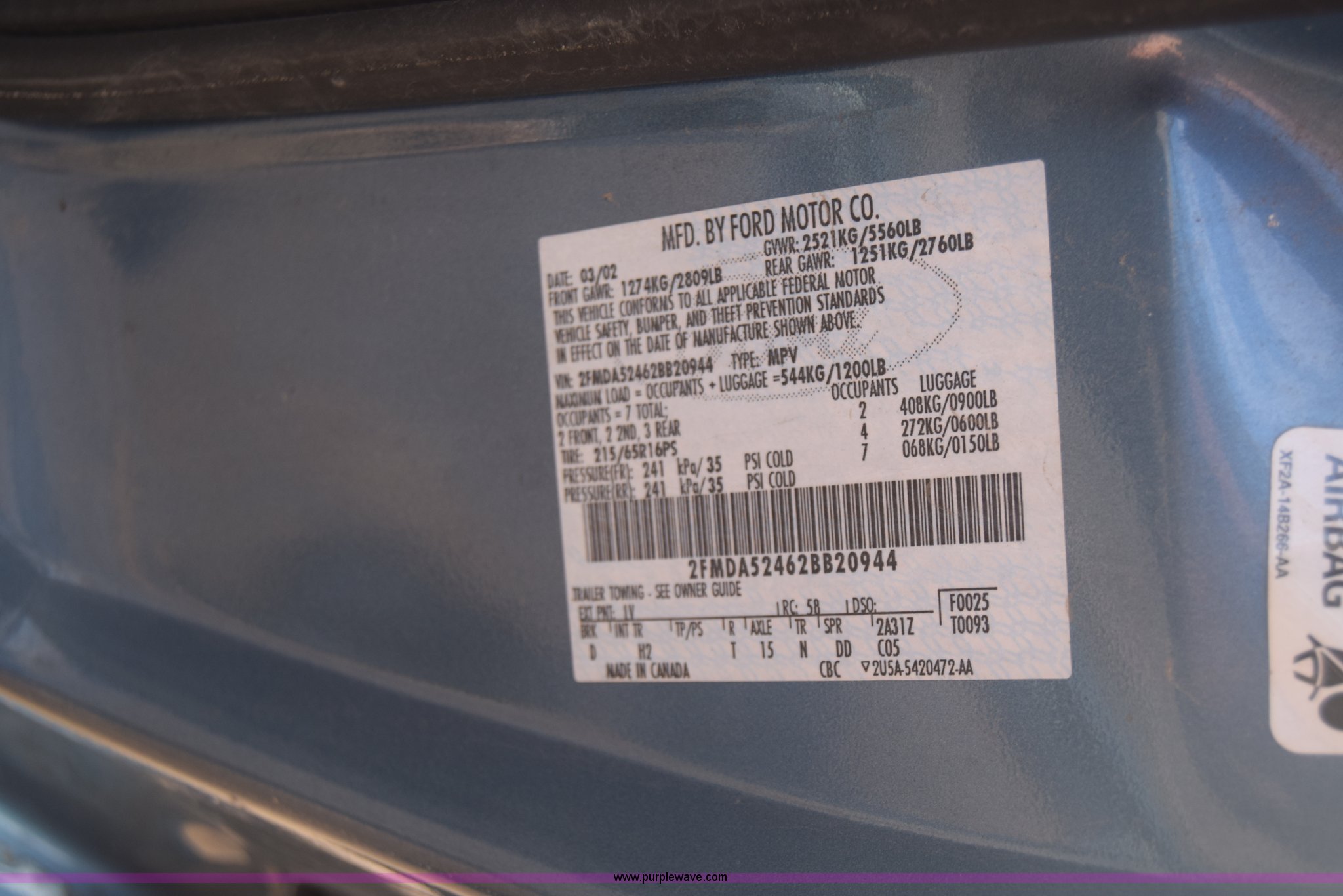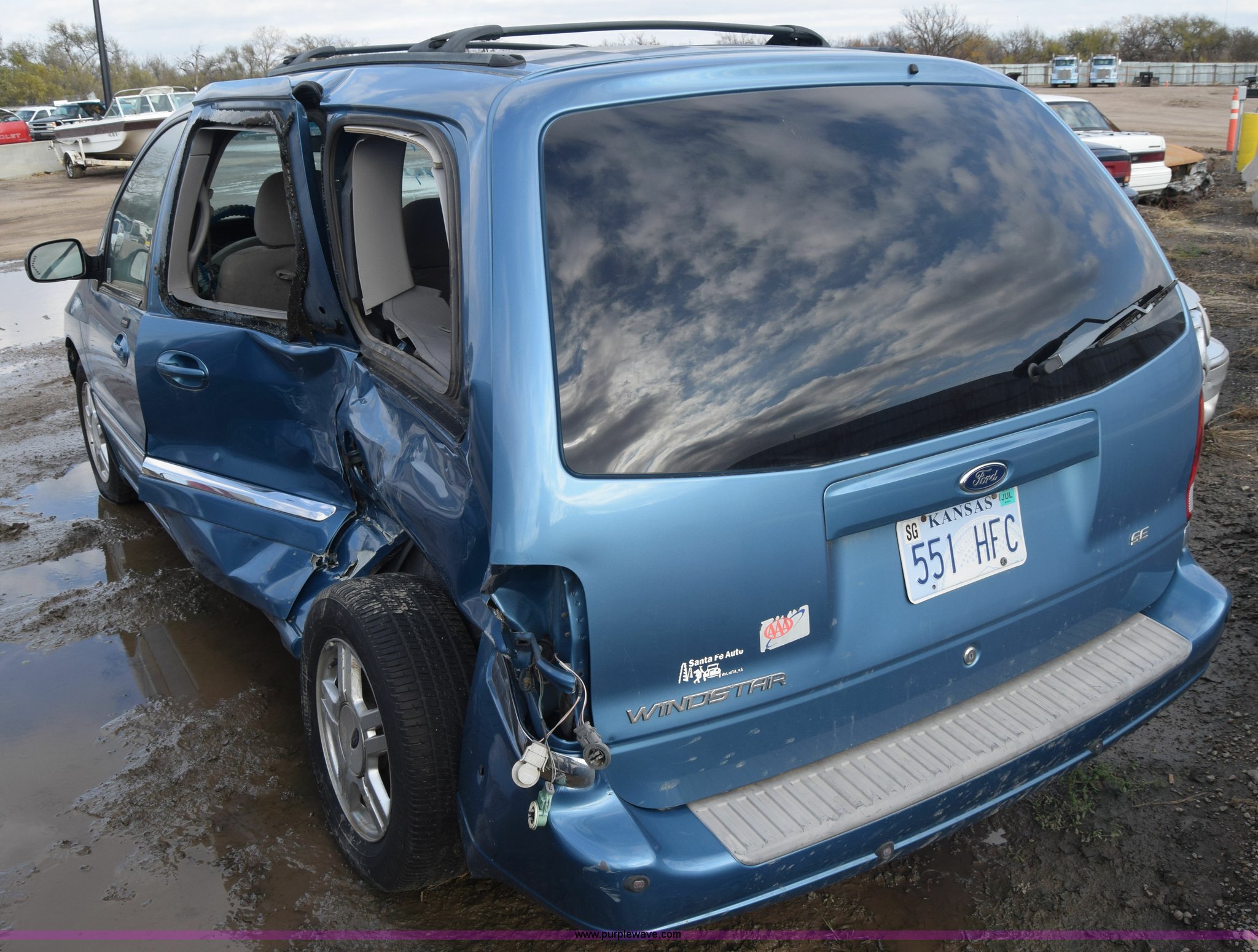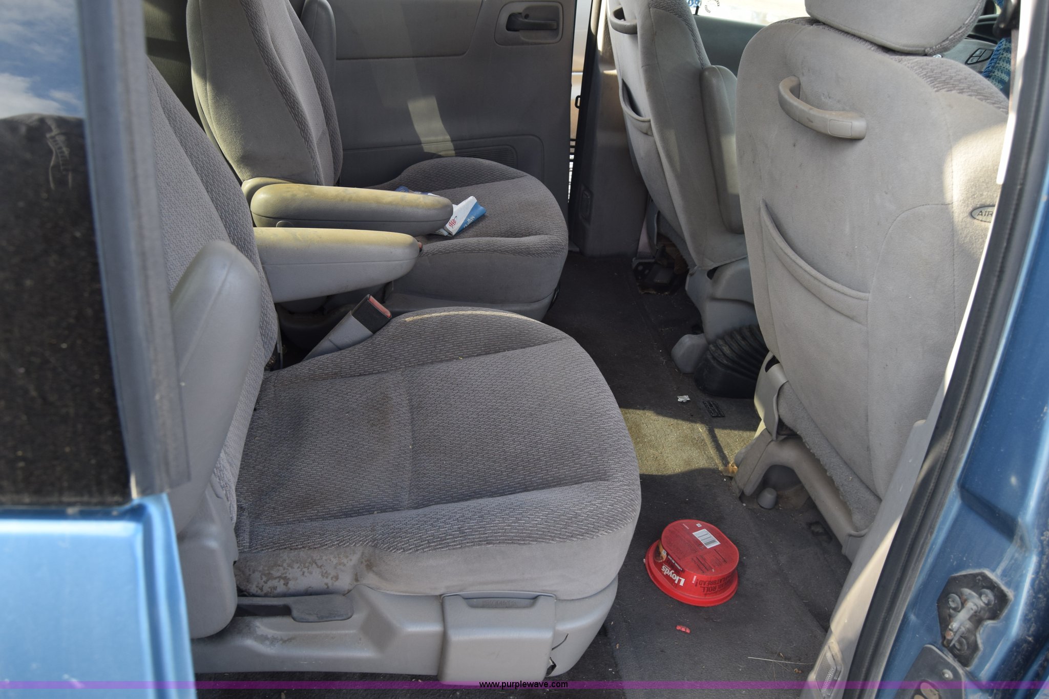 Purple Wave is selling a used Passenger Vehicle in Kansas. This item is a 2002 Ford Windstar SE van with the following: Unknown miles on odometer, 3.8L V6 OHV 12V gas engine, Automatic transmission, AC and heat, Cruise, AM/FM/CD, Power windows, locks, and mirrors, Cloth interior, 215/65R16 tires, Substantial body damage, Interior/exterior cosmetic damage, Dents and scratches, Case# 15C59778