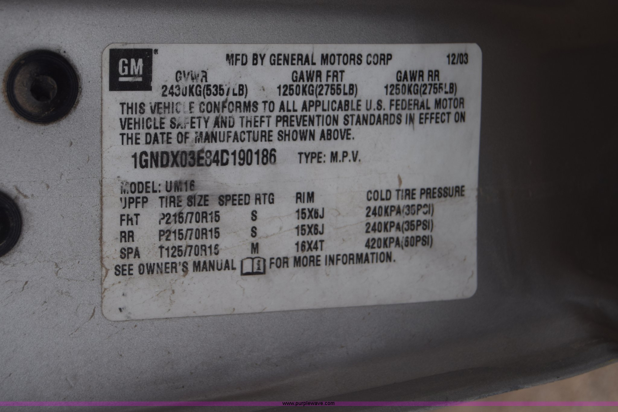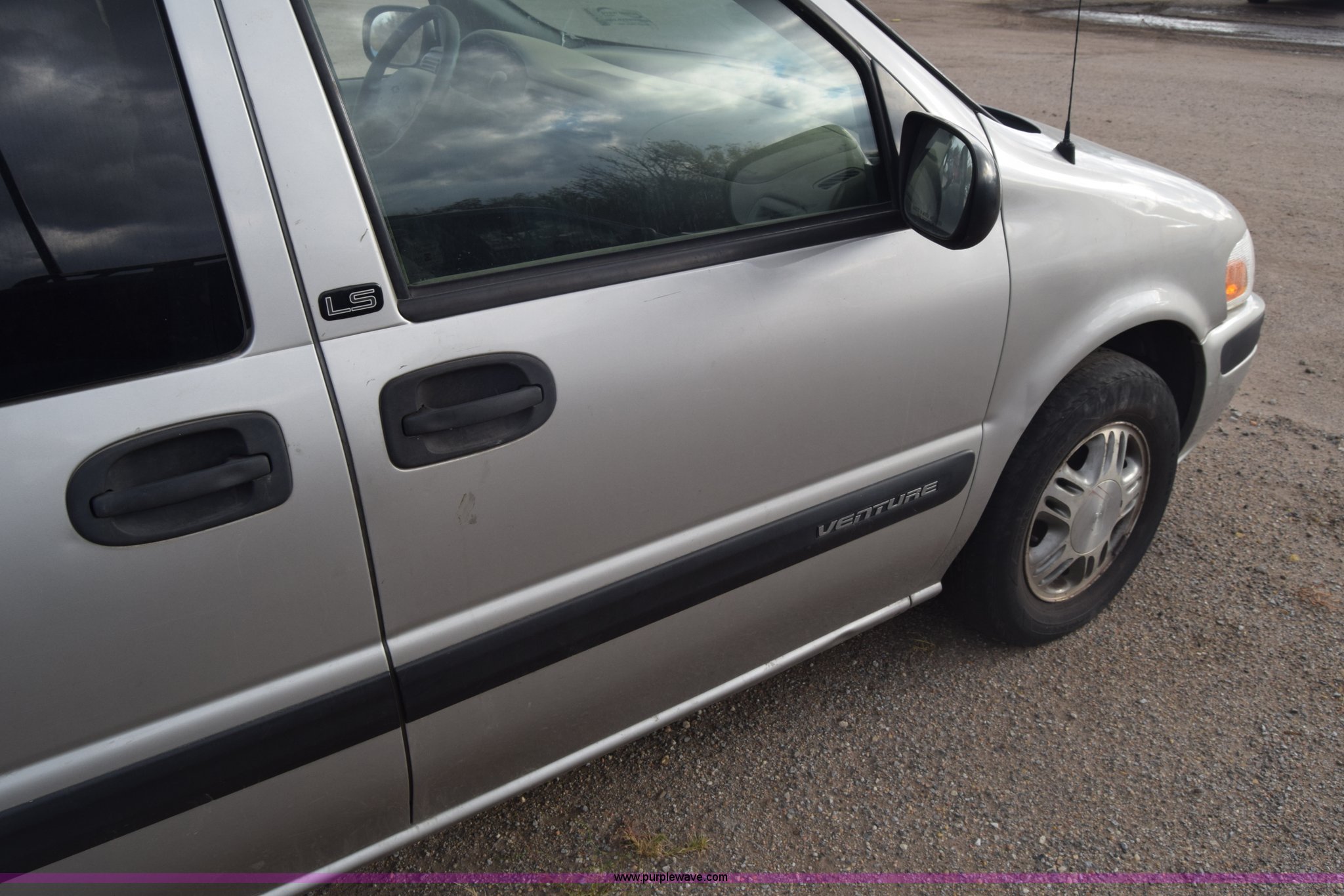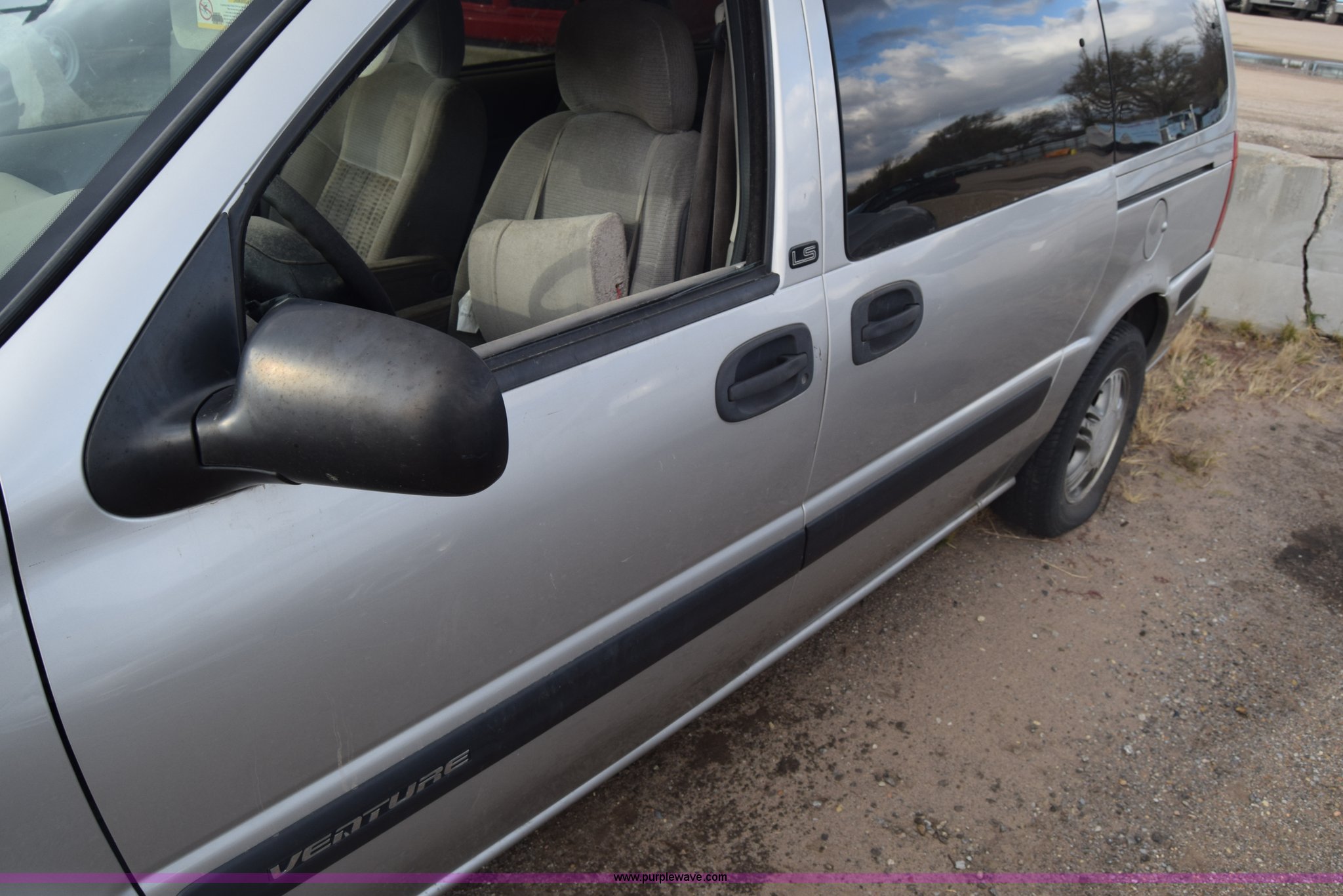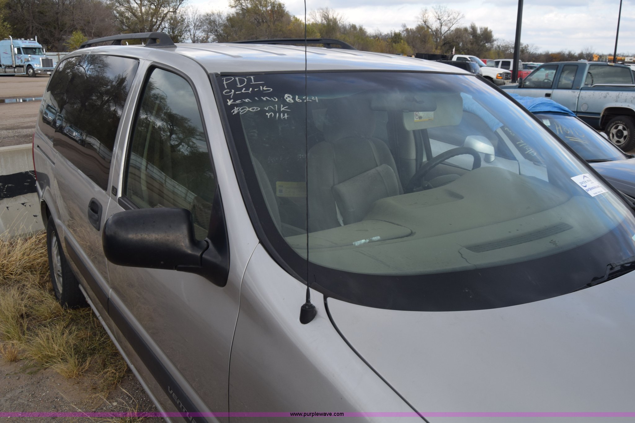 Purple Wave is selling a used 1/2 Ton Pickup or Van in Kansas. This item is a 2004 Chevrolet Venture van with the following: Unknown miles on odometer, 3.4L V6 OHV 12V gas engine, Automatic transmission, AC and heat, Cruise, AM/FM/CD, Power windows, locks, and mirrors, Cloth interior, 215/70R15 tires, Interior/exterior cosmetic damage, Dents and scratches, Case# 15C84724