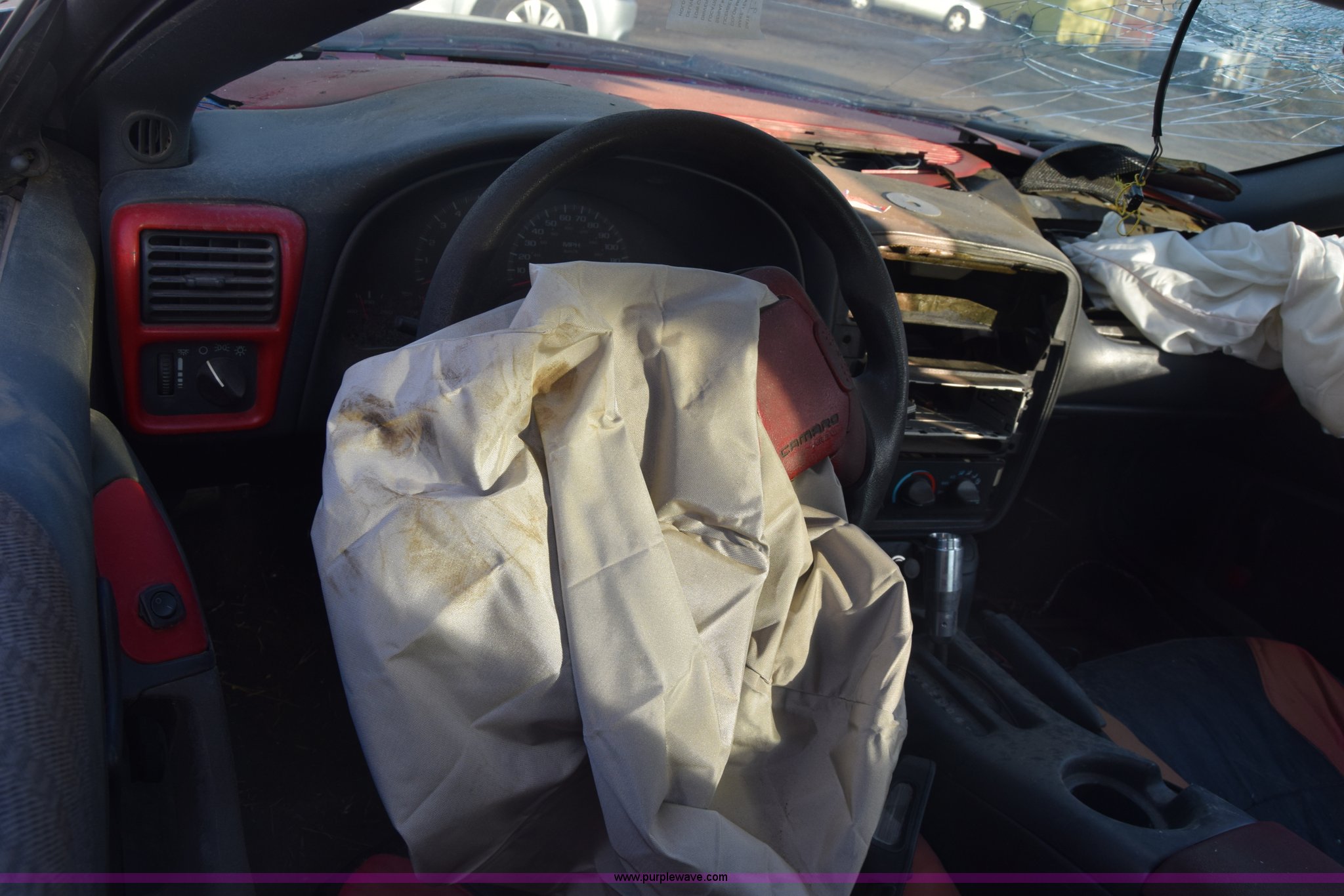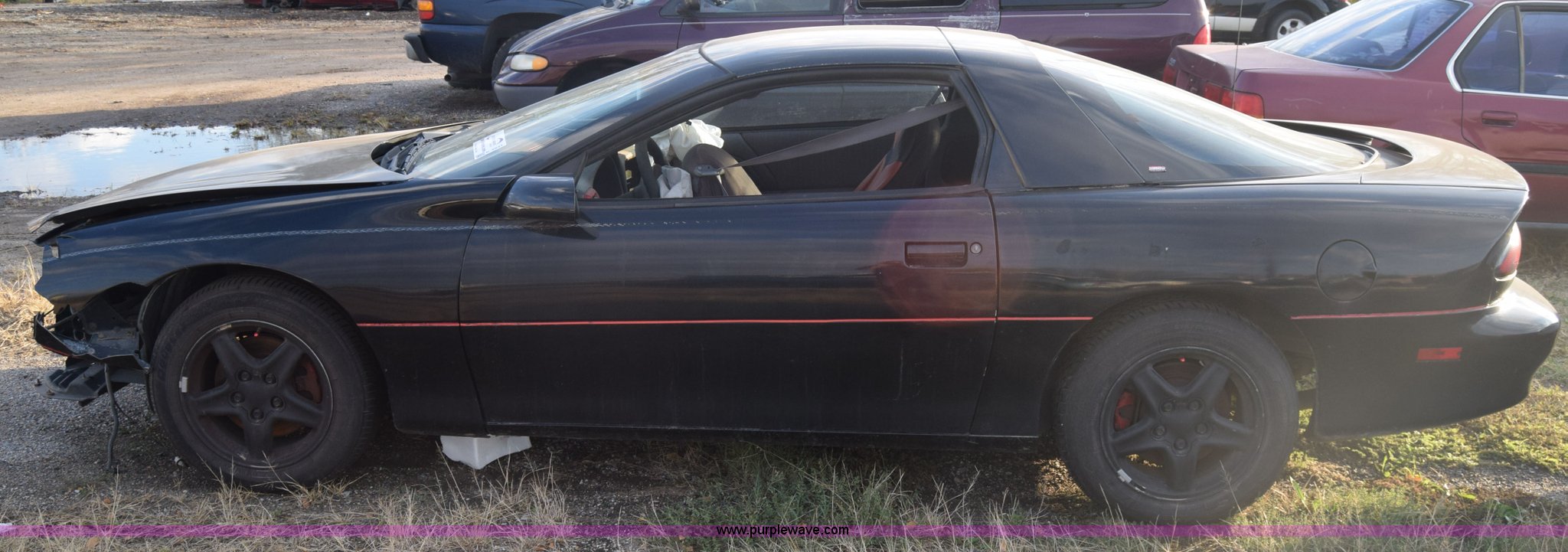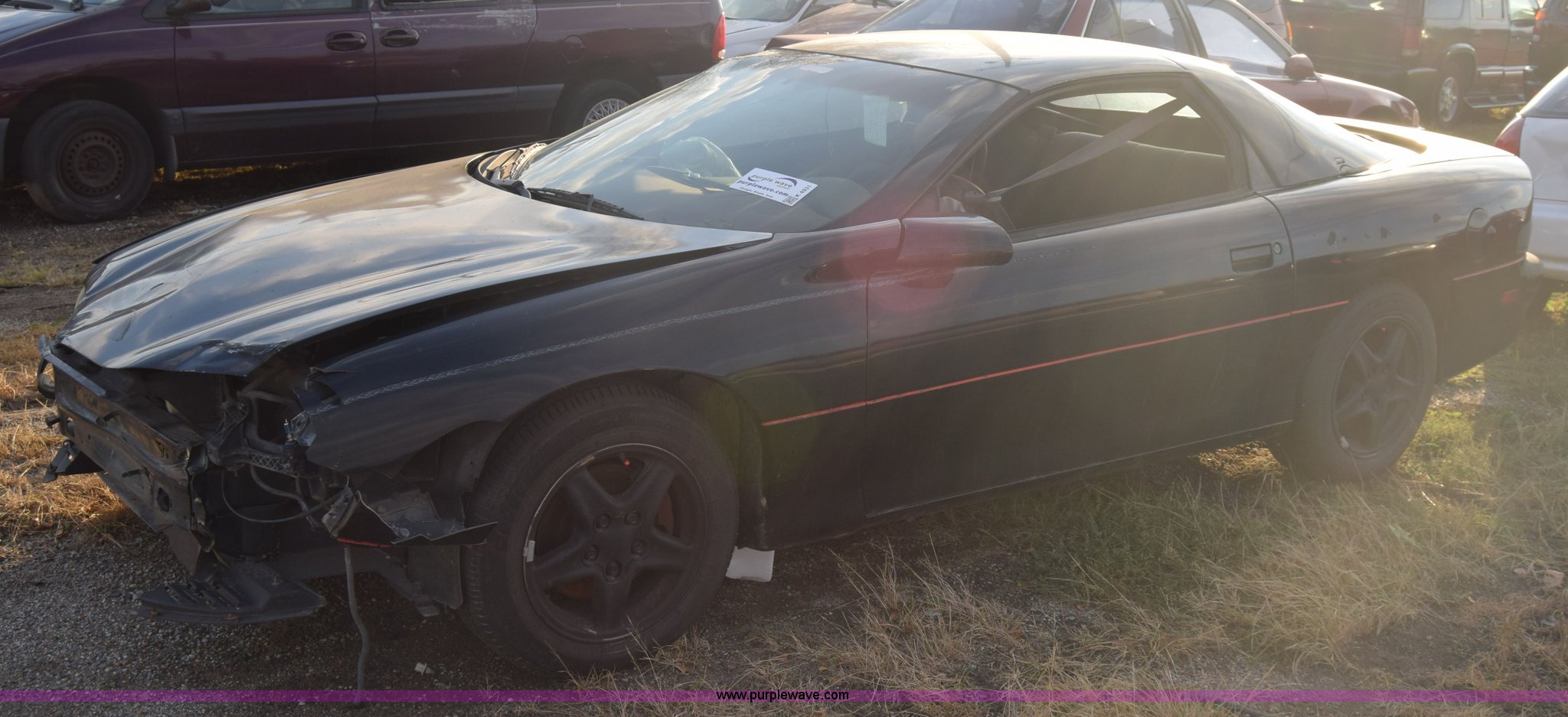 Purple Wave is selling a used Passenger Vehicle in Kansas. This item is a 1998 Chevrolet Camaro with the following: Unknown miles on odometer, 3.8L V6 OHV 12V gas engine, Automatic transmission, AC and heat, Manual windows and locks, Cloth interior, 215/60R16 tires, Substantial front end damage, Air bags deployed, Radio missing, Windshield cracked, Interior/exterior cosmetic damage, Dents and scratches, Unit# 15C59847