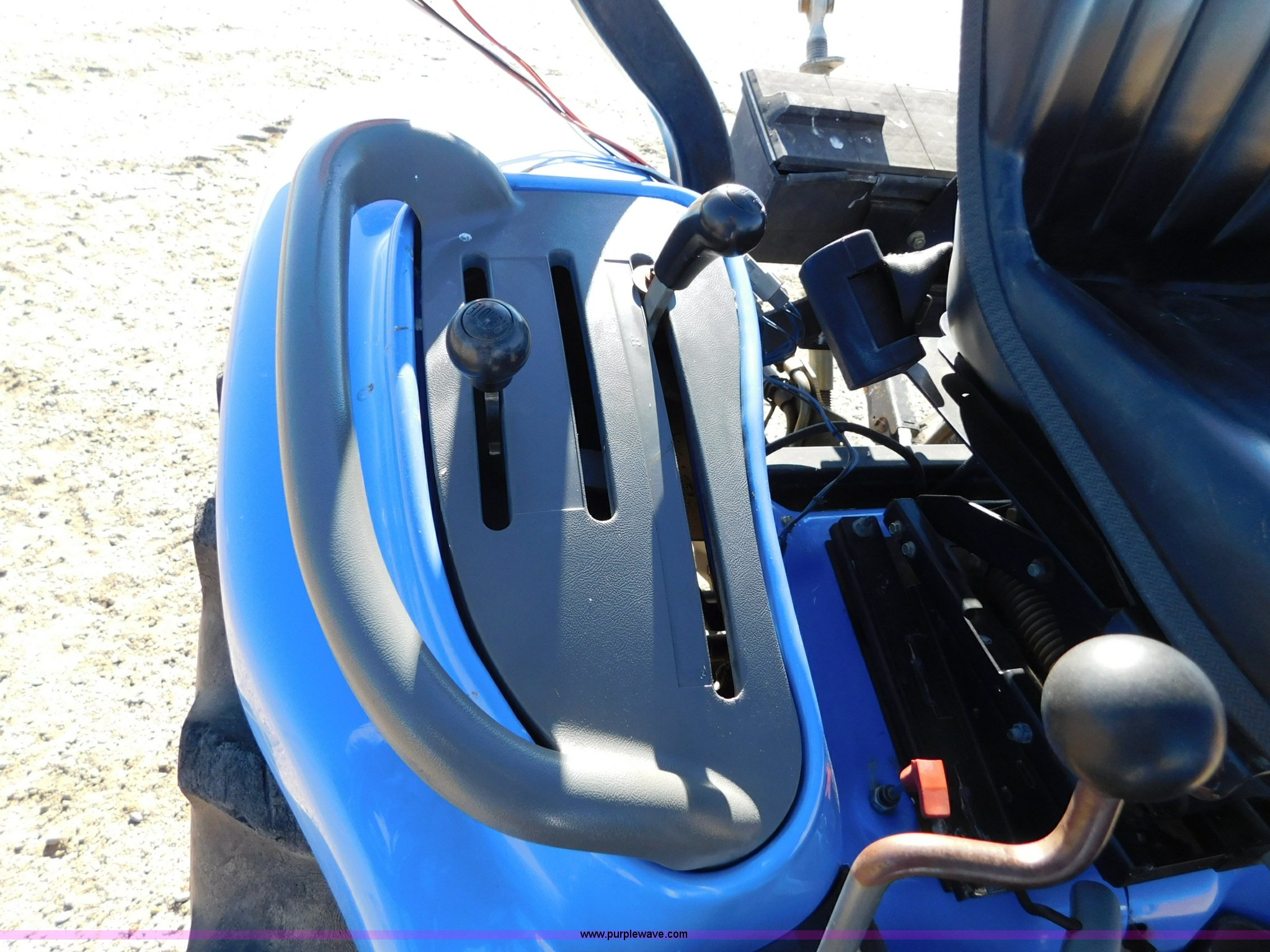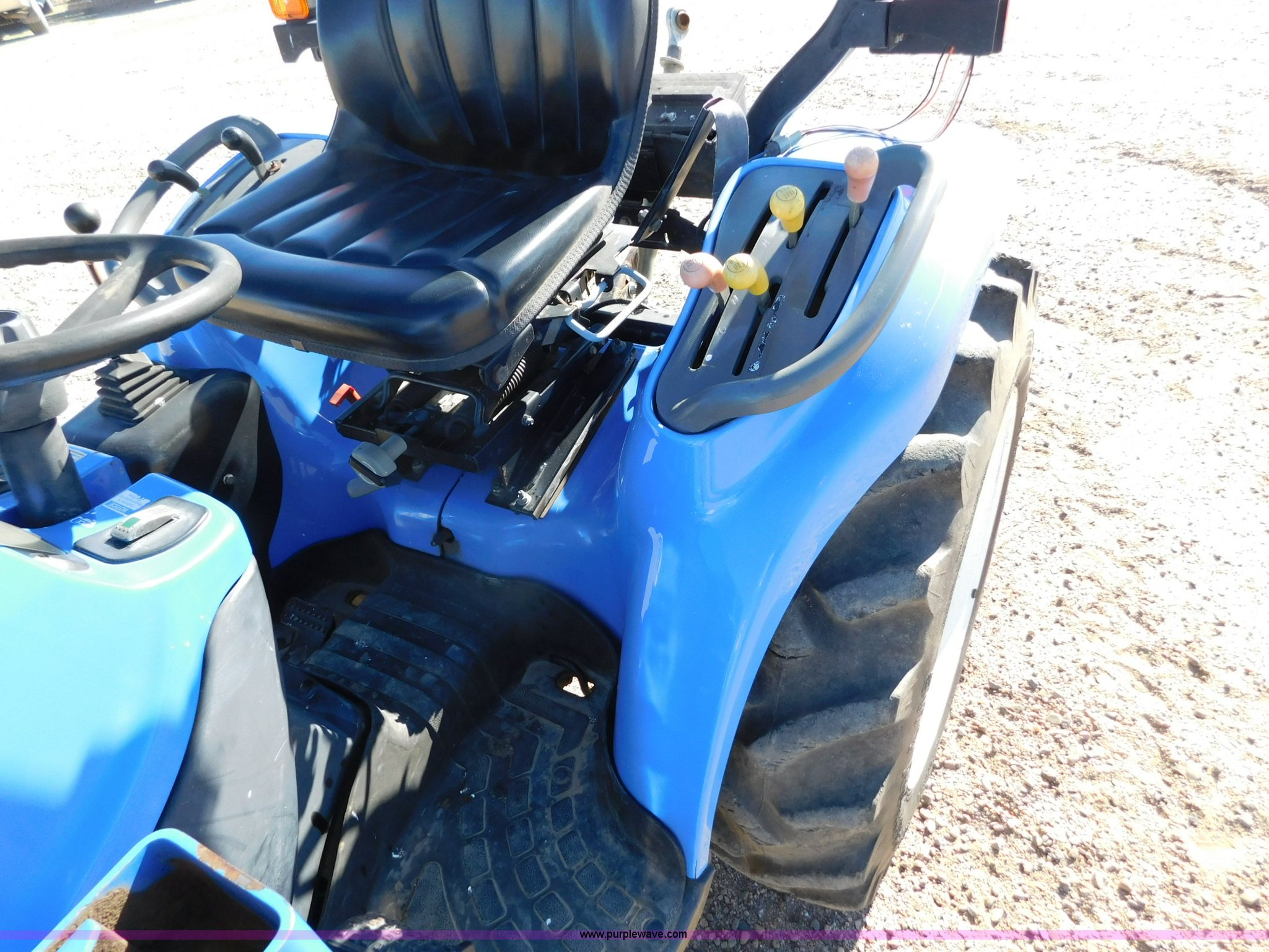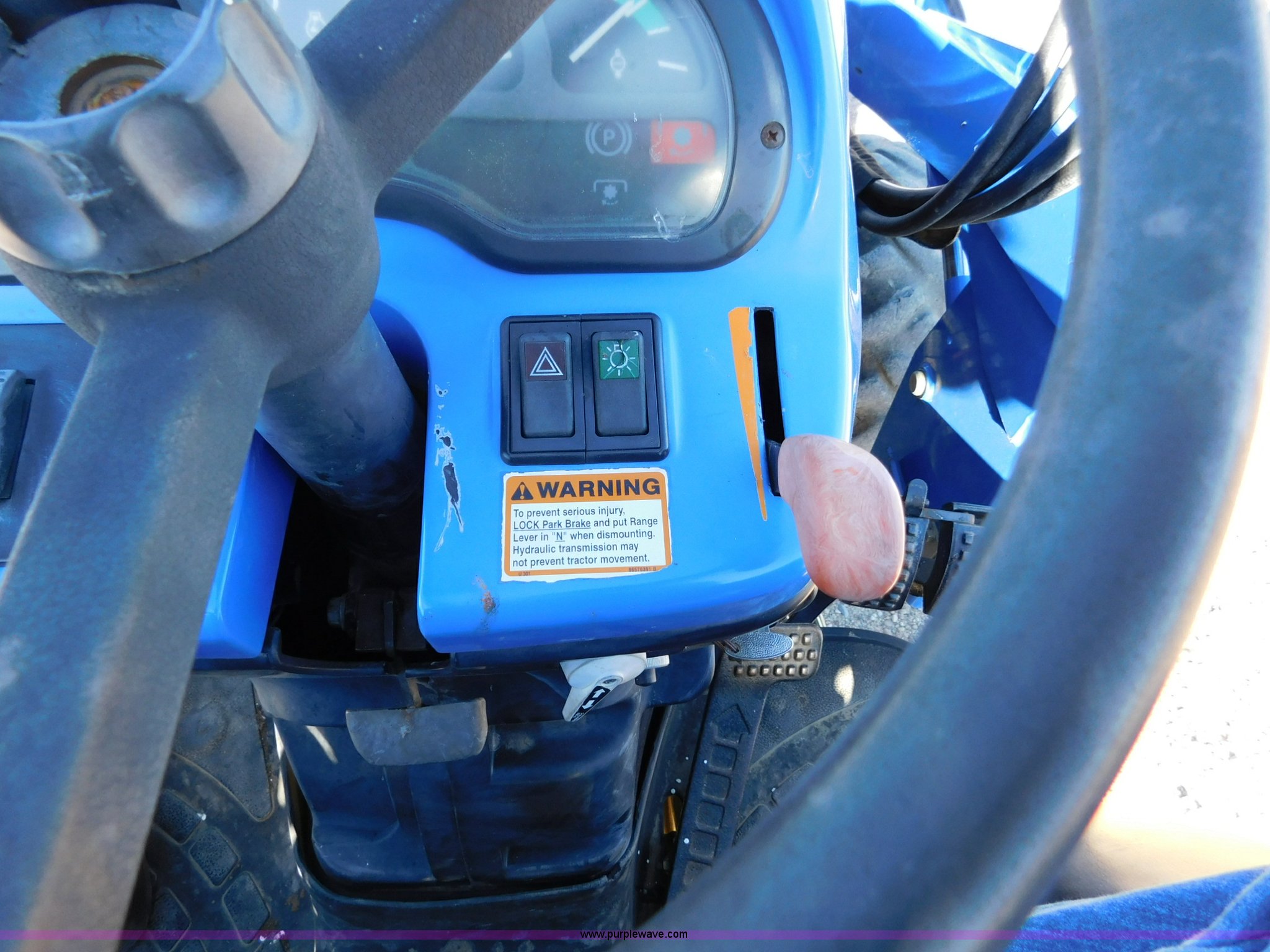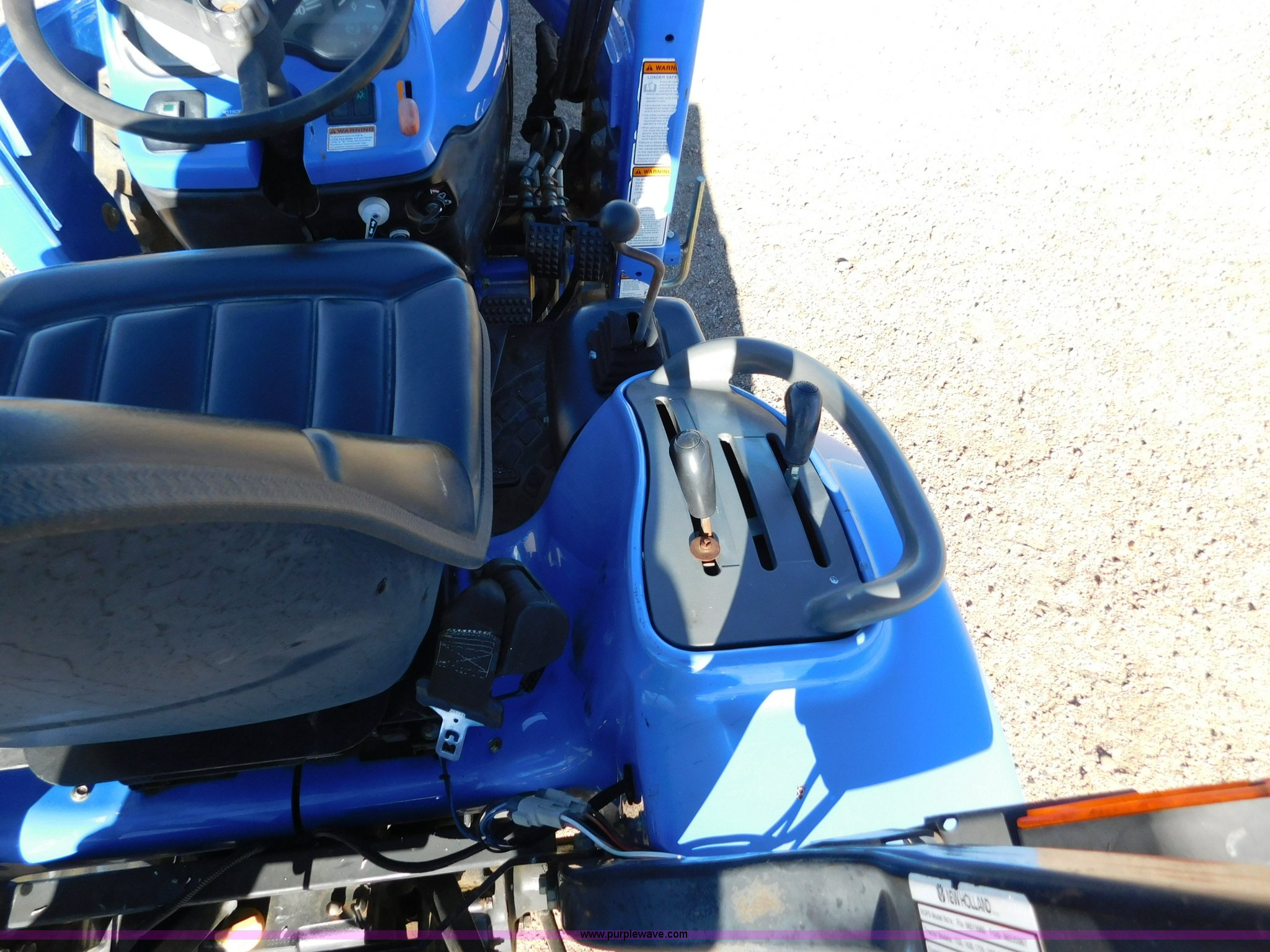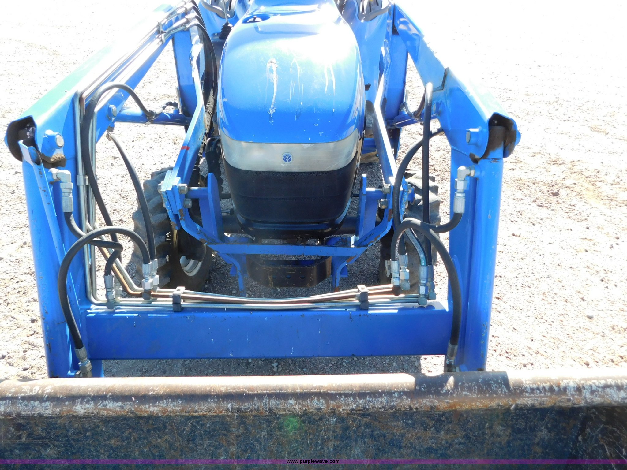 Purple Wave is selling a used Tractor in Kansas. This item is a 2011 New Holland TC29D MFWD tractor with the following: 1,830 hours on meter, Hours may vary, still in use, Shibaura 3F06D 1.33L three cylinder diesel engine, 30 HP, Serial 83182, Three range hydrostatic transmission, Tilt steering wheel, Suspension seat, New Holland 7308 loader, 60.5"W bucket, Quick attach, Joystick controls, Serial YL321921, Three point, Top link, 540 PTO, Rear wet PTO shaft seal, Mid PTO, Rear hydraulic remote, Undercarriage tie down hook, 7-14 front tires, 11.2-24 rear tires, Recently replaced battery, Left side loader arm welded, Serial G042794