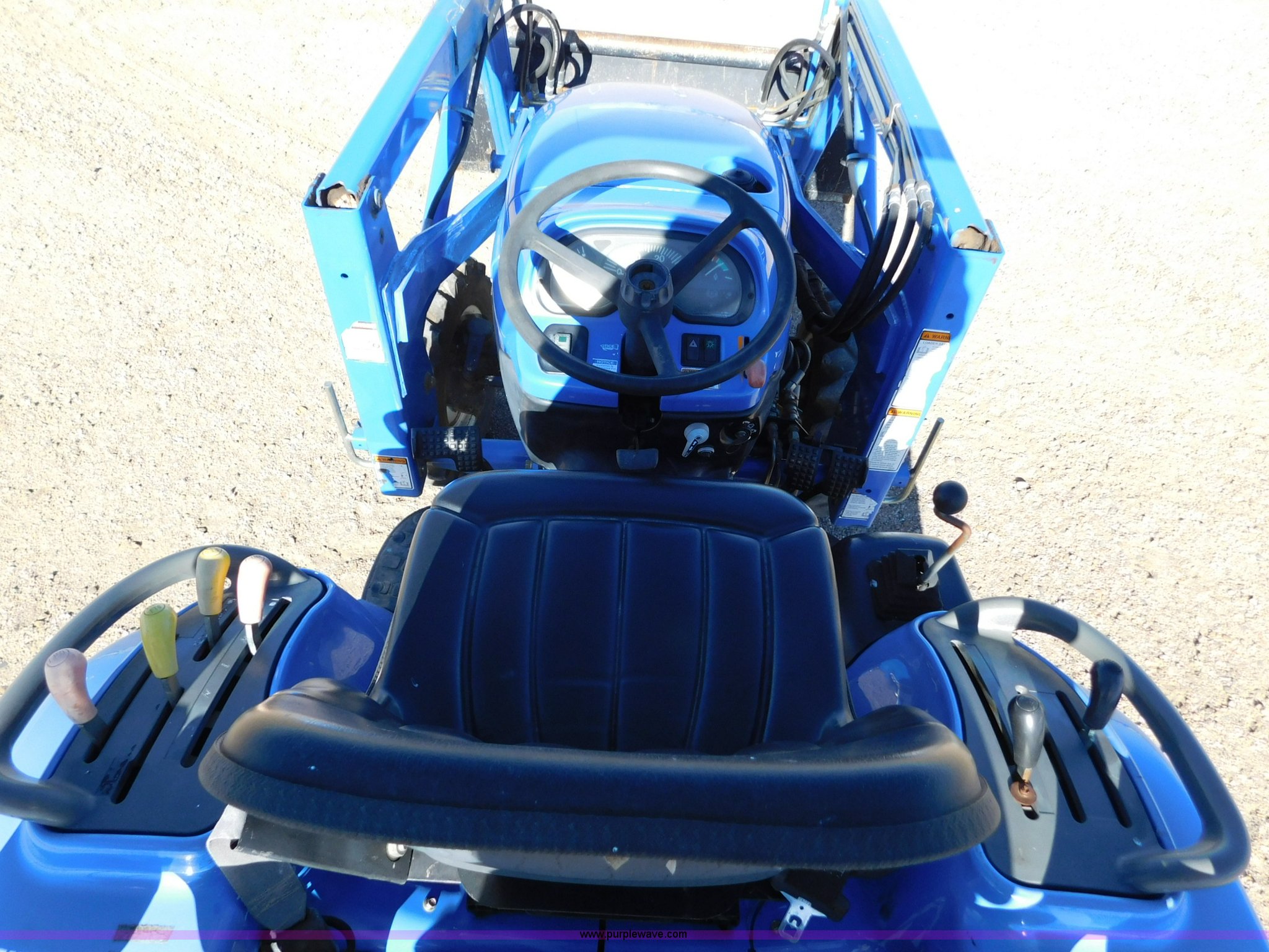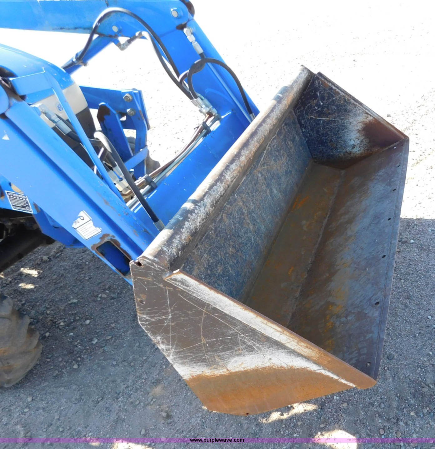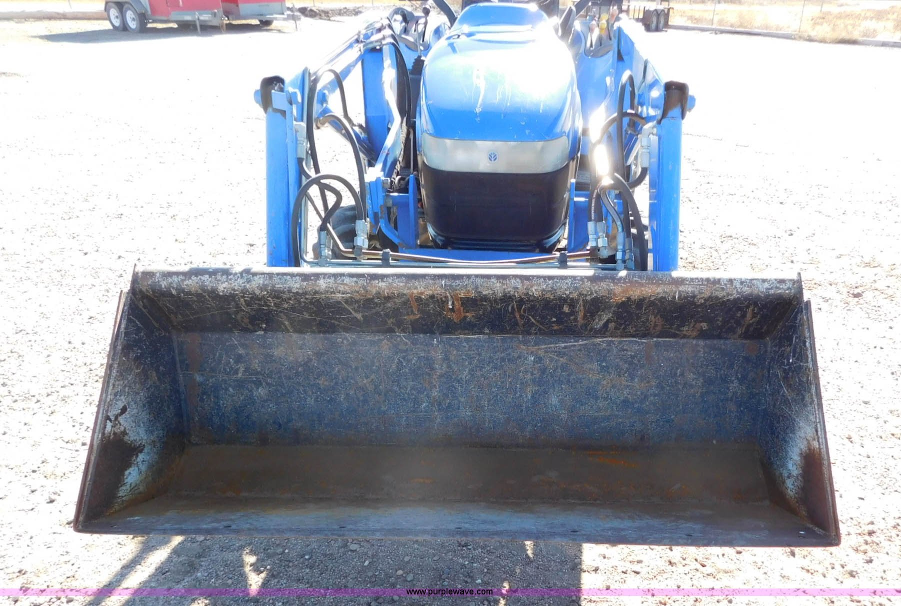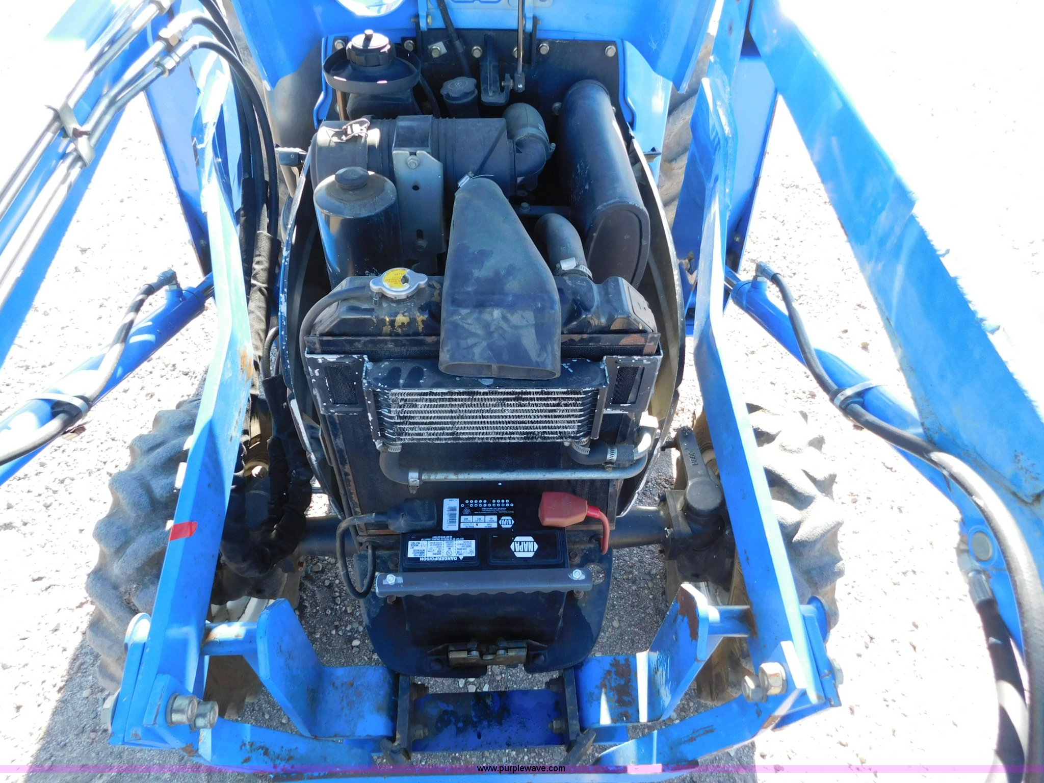 Purple Wave is selling a used Tractor in Kansas. This item is a 2011 New Holland TC29D MFWD tractor with the following: 1,830 hours on meter, Hours may vary, still in use, Shibaura 3F06D 1.33L three cylinder diesel engine, 30 HP, Serial 83182, Three range hydrostatic transmission, Tilt steering wheel, Suspension seat, New Holland 7308 loader, 60.5"W bucket, Quick attach, Joystick controls, Serial YL321921, Three point, Top link, 540 PTO, Rear wet PTO shaft seal, Mid PTO, Rear hydraulic remote, Undercarriage tie down hook, 7-14 front tires, 11.2-24 rear tires, Recently replaced battery, Left side loader arm welded, Serial G042794