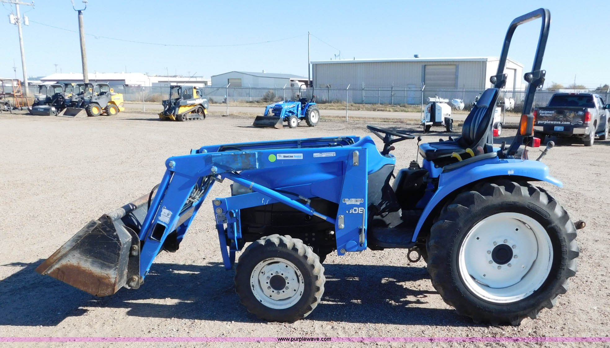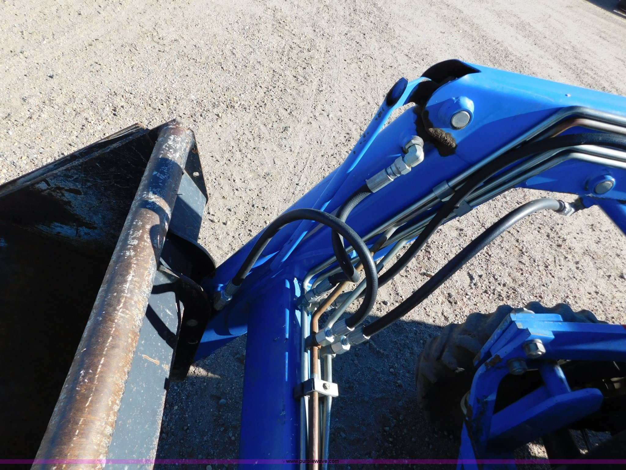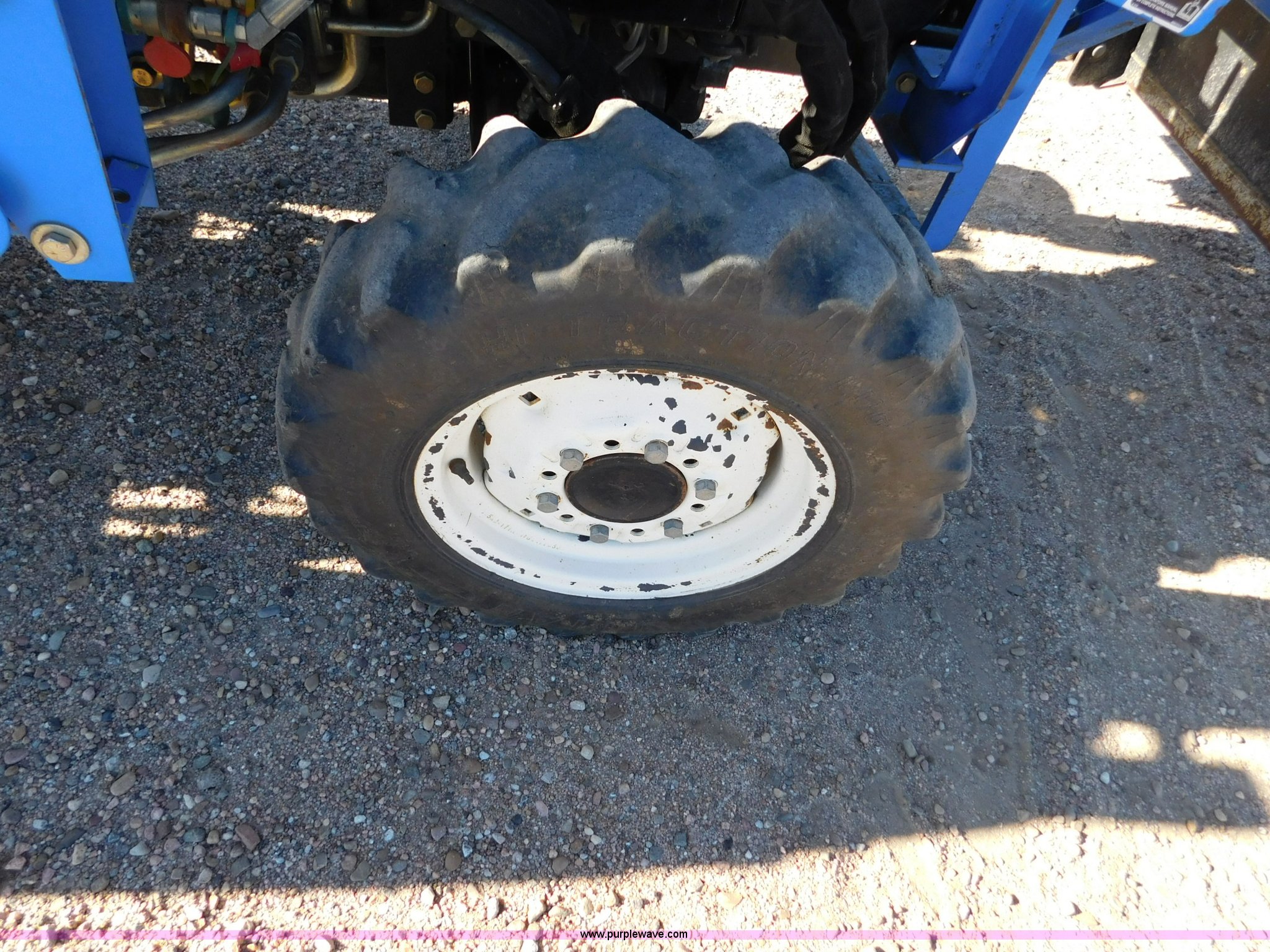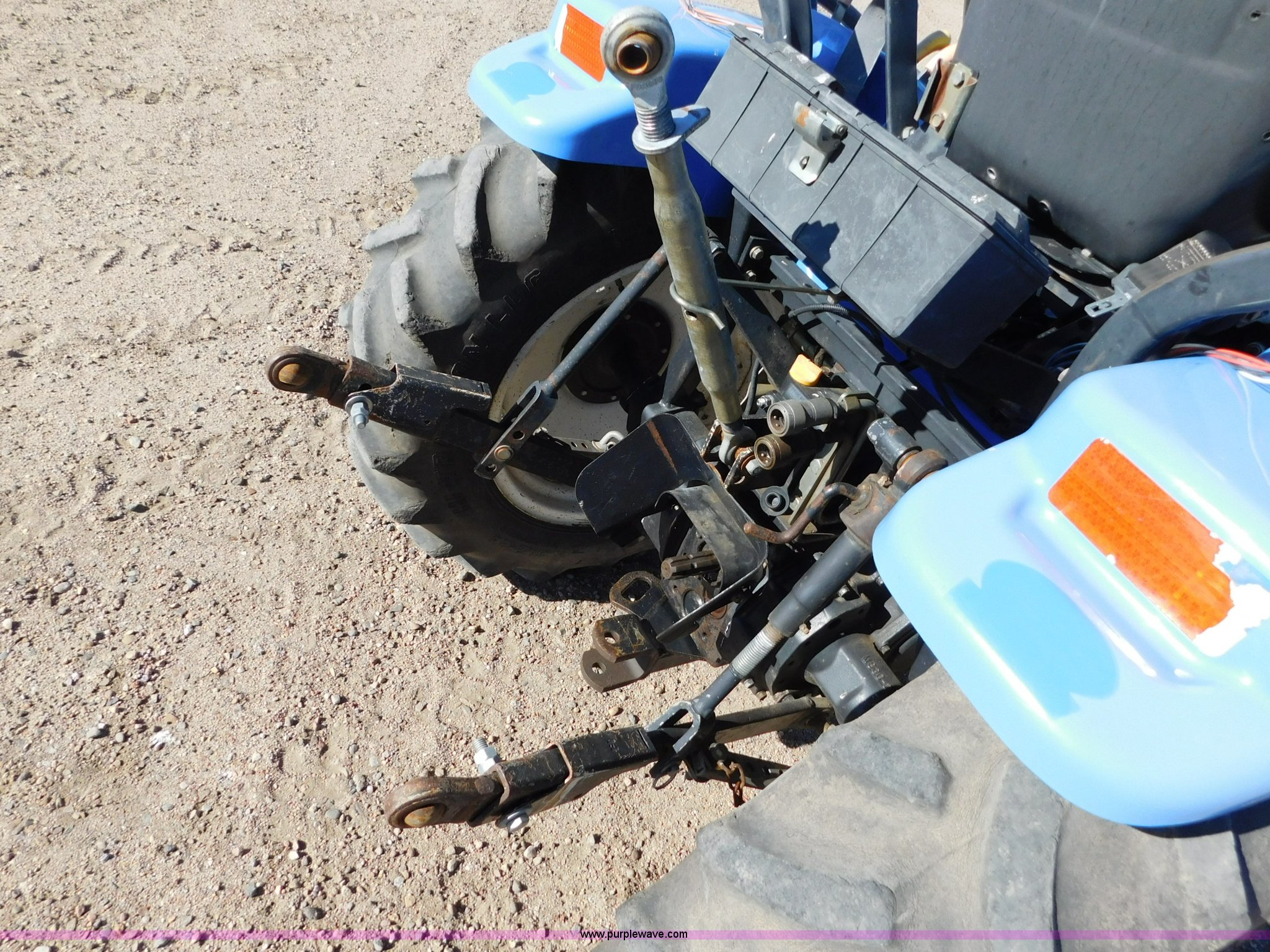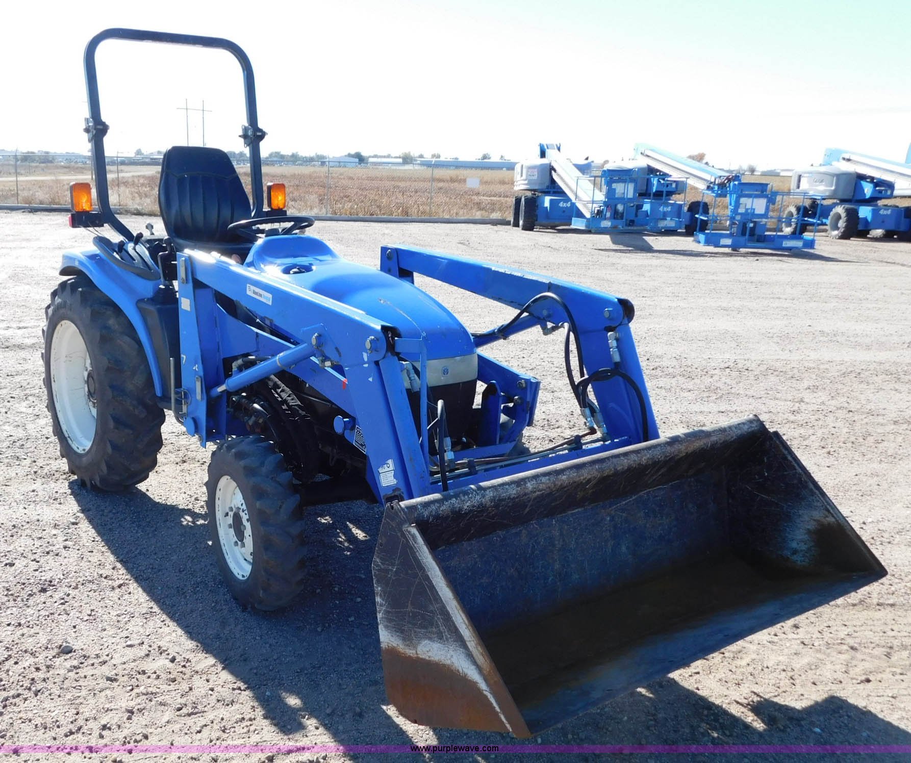 Purple Wave is selling a used Tractor in Kansas. This item is a 2011 New Holland TC29D MFWD tractor with the following: 1,830 hours on meter, Hours may vary, still in use, Shibaura 3F06D 1.33L three cylinder diesel engine, 30 HP, Serial 83182, Three range hydrostatic transmission, Tilt steering wheel, Suspension seat, New Holland 7308 loader, 60.5"W bucket, Quick attach, Joystick controls, Serial YL321921, Three point, Top link, 540 PTO, Rear wet PTO shaft seal, Mid PTO, Rear hydraulic remote, Undercarriage tie down hook, 7-14 front tires, 11.2-24 rear tires, Recently replaced battery, Left side loader arm welded, Serial G042794
