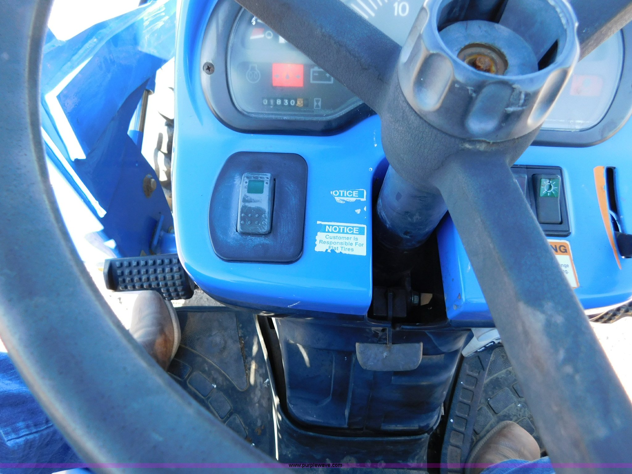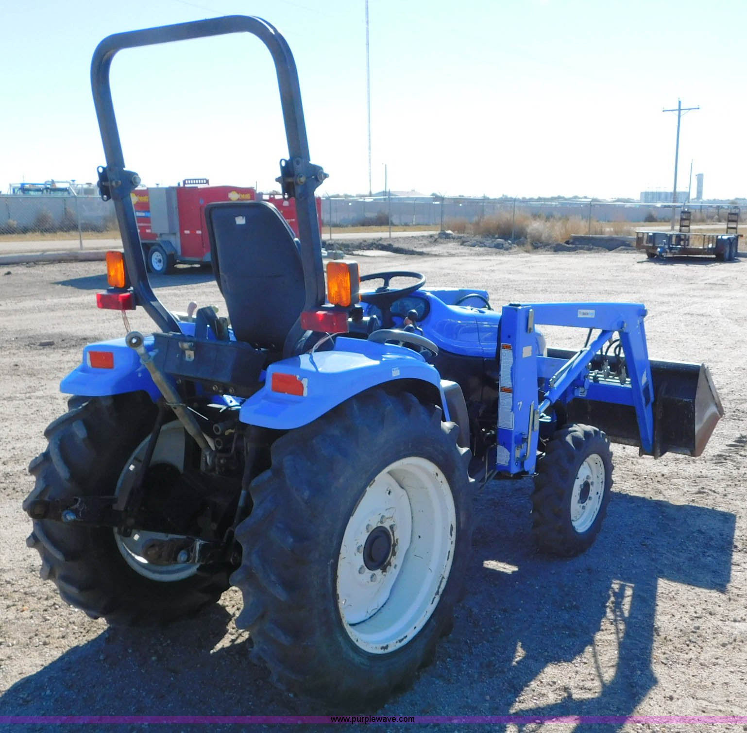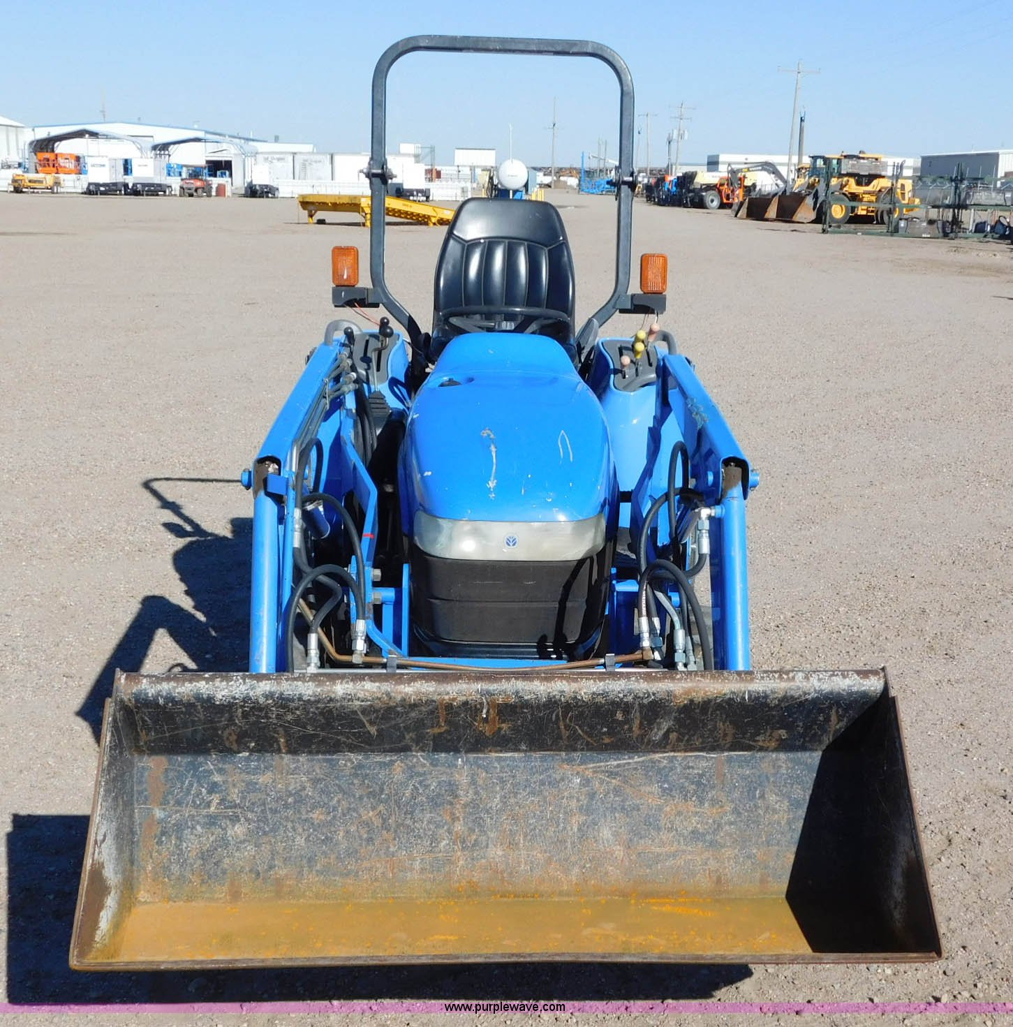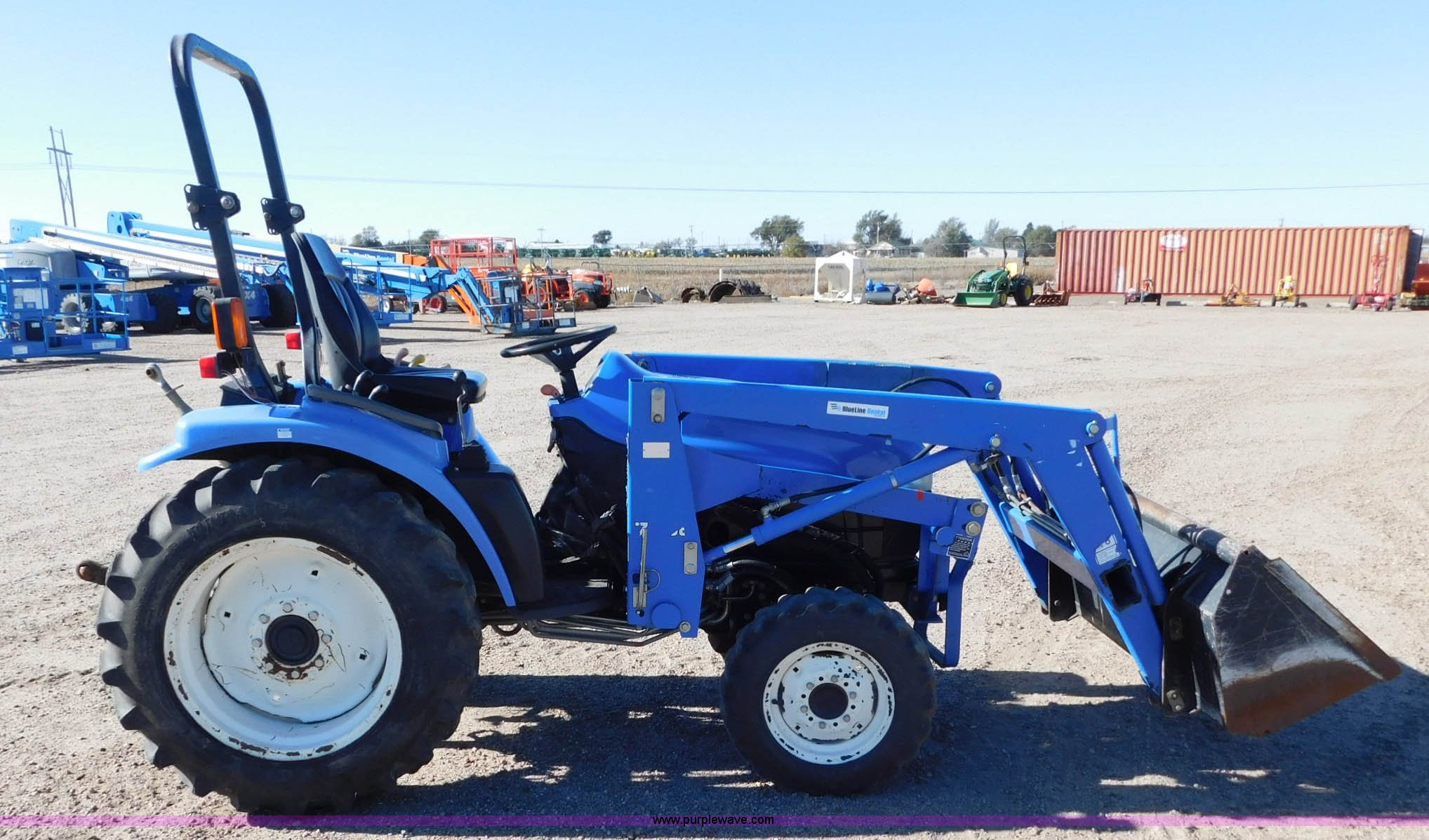 Purple Wave is selling a used Tractor in Kansas. This item is a 2011 New Holland TC29D MFWD tractor with the following: 1,830 hours on meter, Hours may vary, still in use, Shibaura 3F06D 1.33L three cylinder diesel engine, 30 HP, Serial 83182, Three range hydrostatic transmission, Tilt steering wheel, Suspension seat, New Holland 7308 loader, 60.5"W bucket, Quick attach, Joystick controls, Serial YL321921, Three point, Top link, 540 PTO, Rear wet PTO shaft seal, Mid PTO, Rear hydraulic remote, Undercarriage tie down hook, 7-14 front tires, 11.2-24 rear tires, Recently replaced battery, Left side loader arm welded, Serial G042794