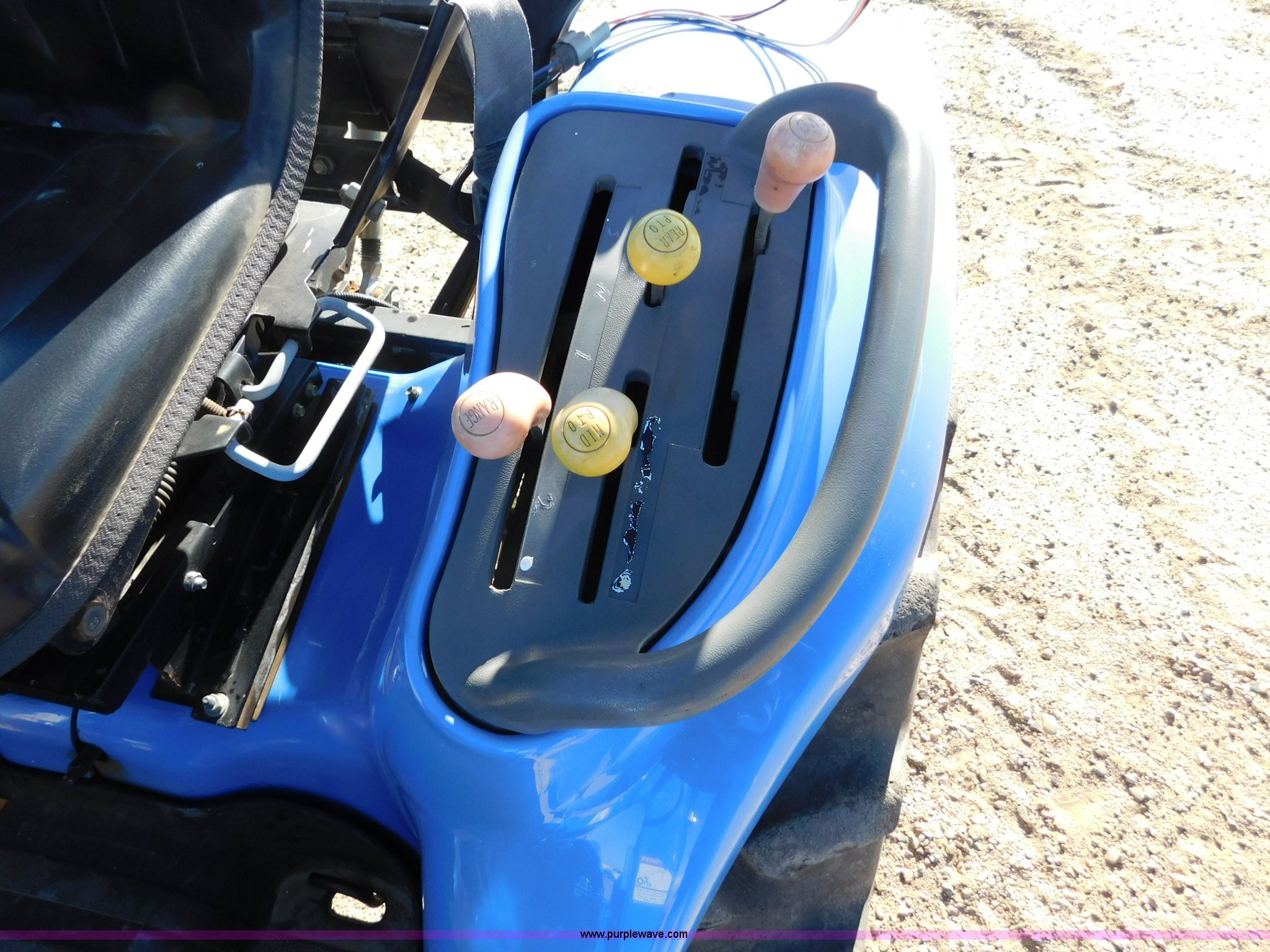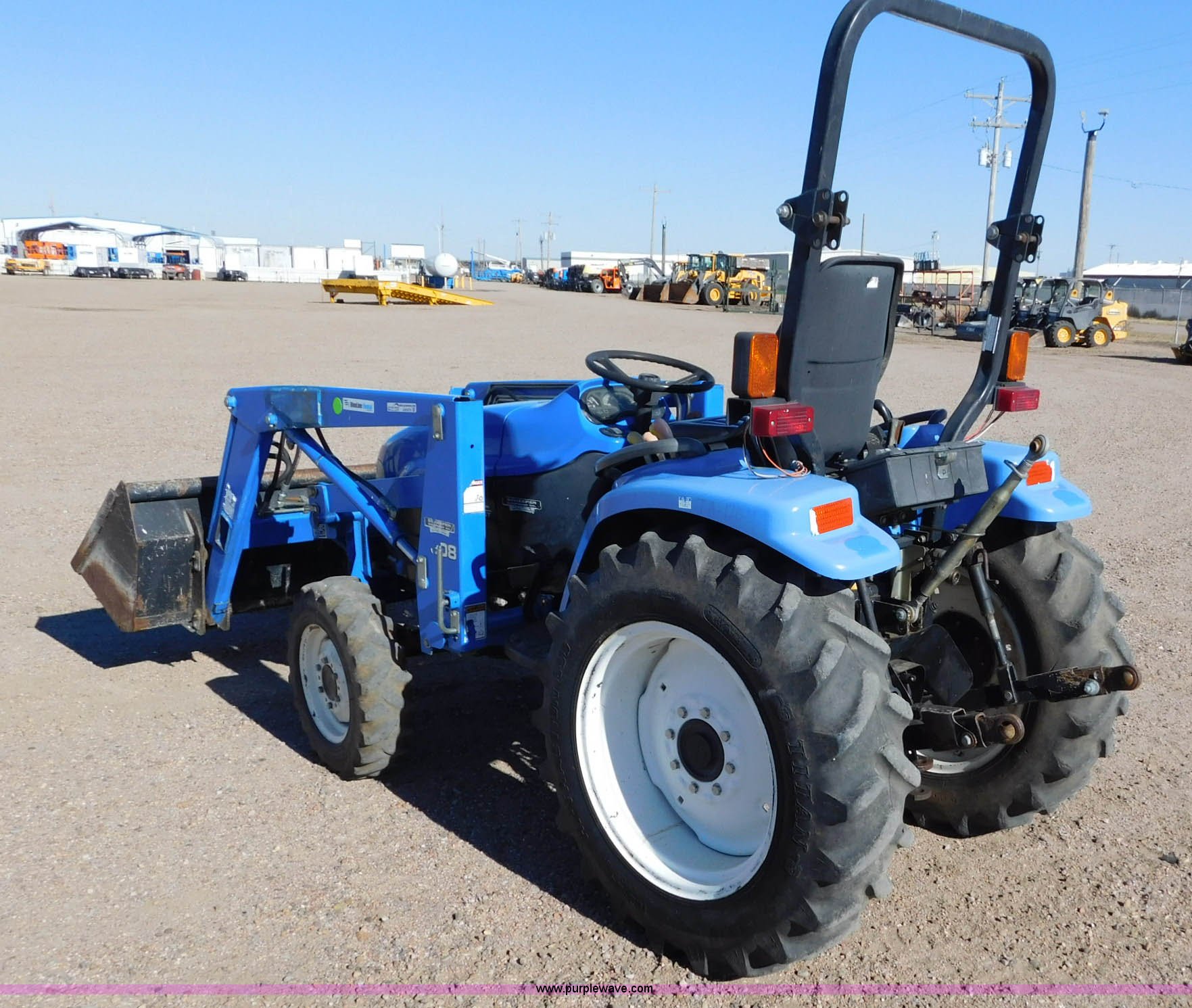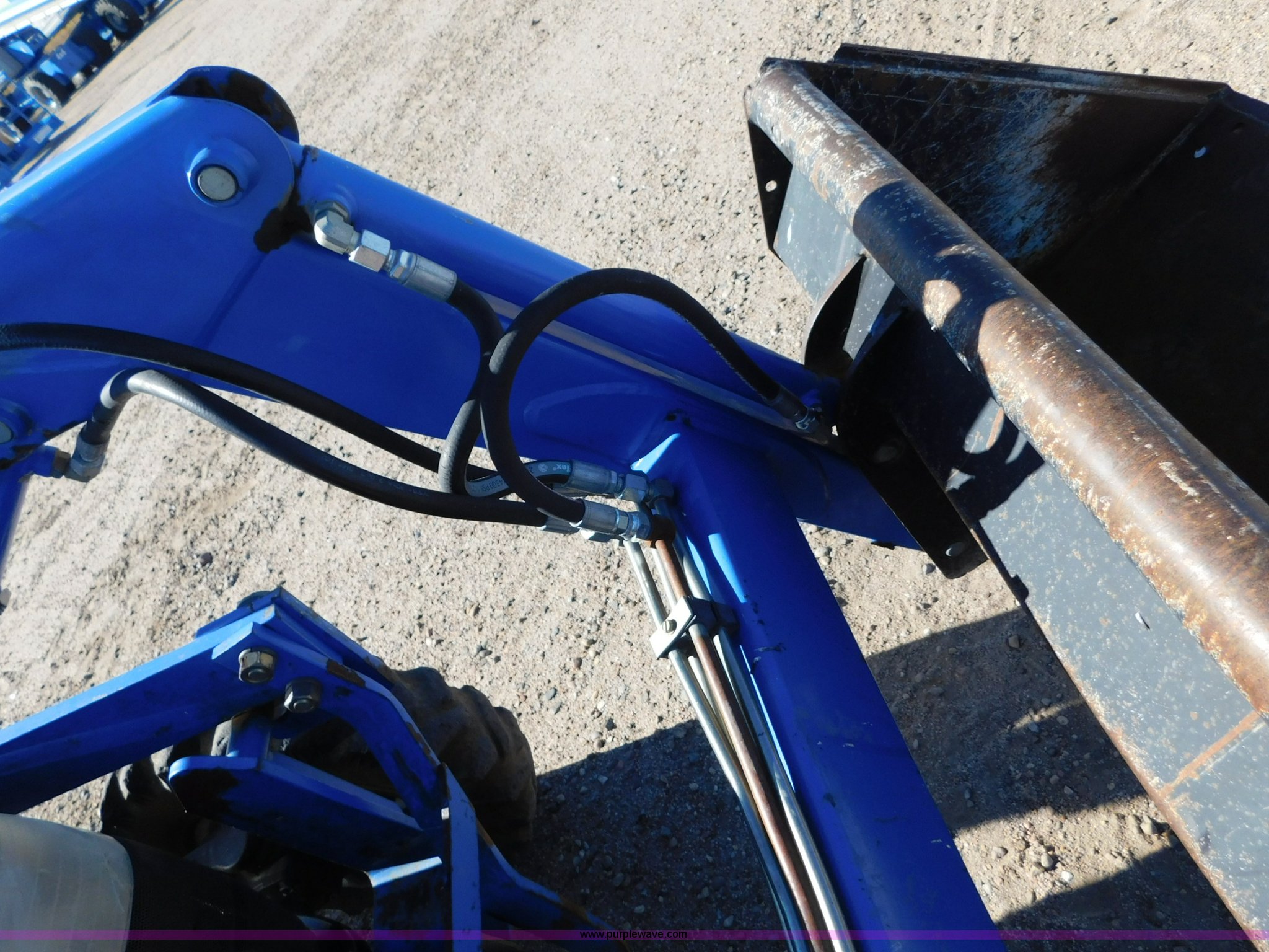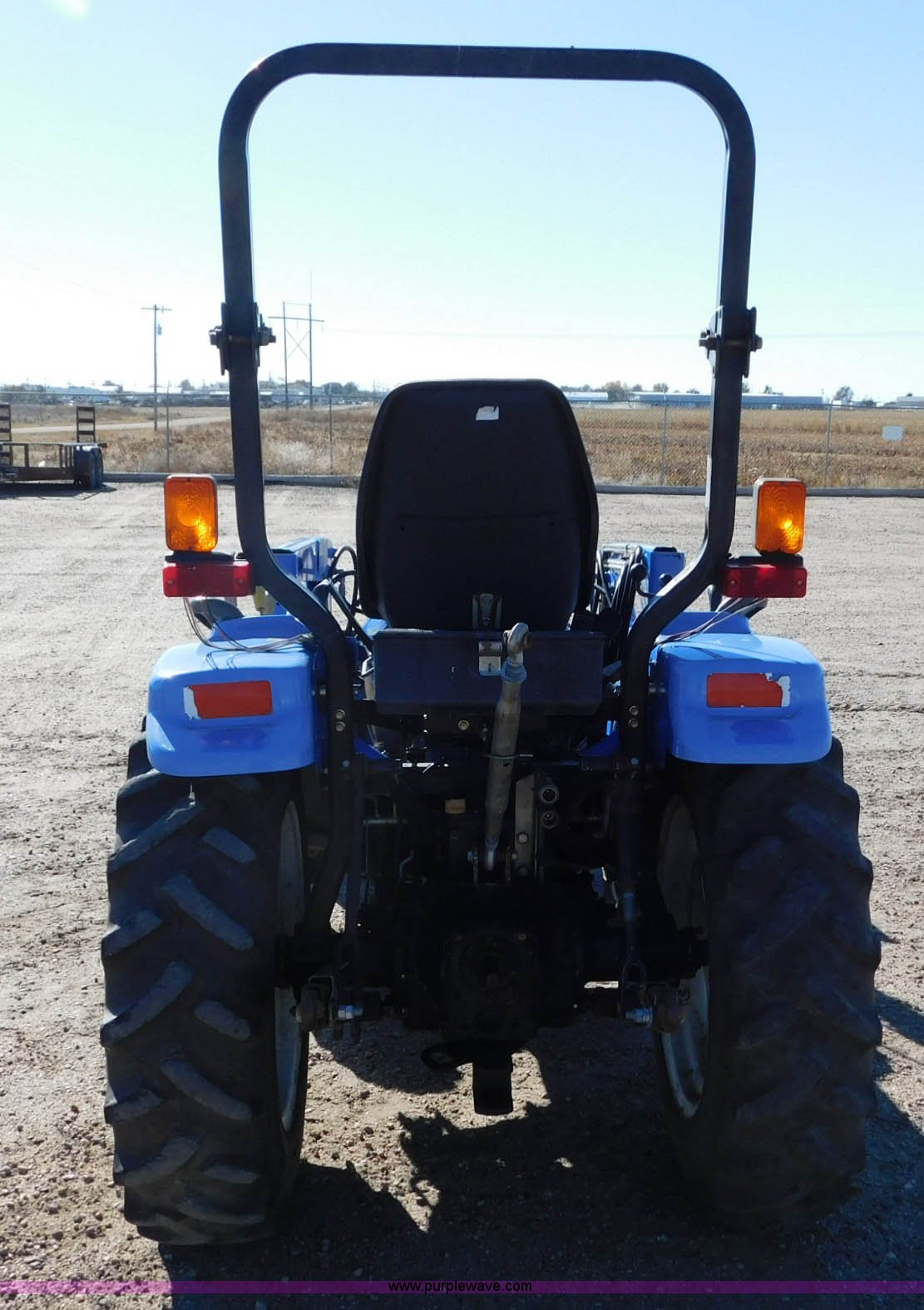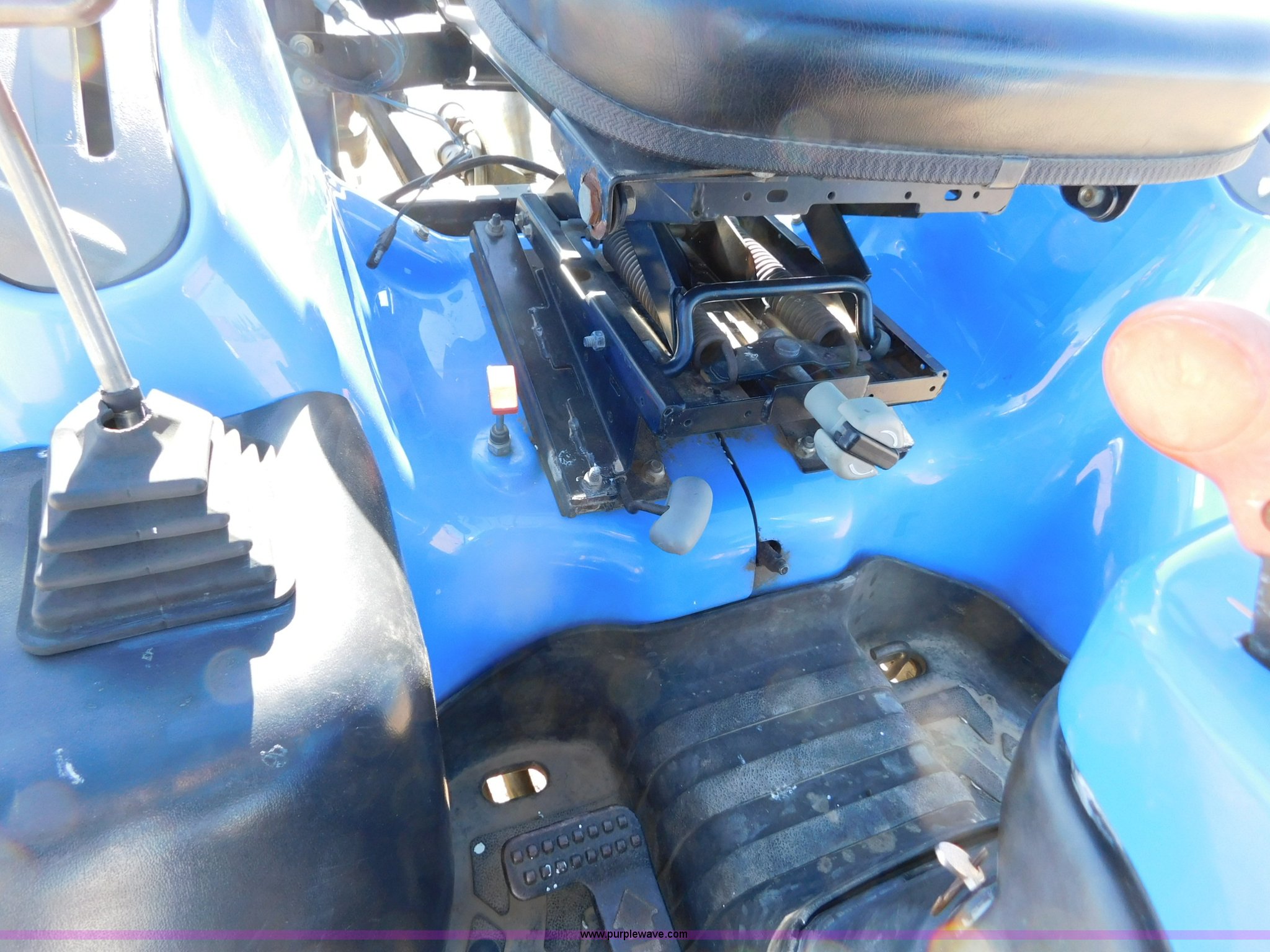Purple Wave is selling a used Tractor in Kansas. This item is a 2011 New Holland TC29D MFWD tractor with the following: 1,830 hours on meter, Hours may vary, still in use, Shibaura 3F06D 1.33L three cylinder diesel engine, 30 HP, Serial 83182, Three range hydrostatic transmission, Tilt steering wheel, Suspension seat, New Holland 7308 loader, 60.5"W bucket, Quick attach, Joystick controls, Serial YL321921, Three point, Top link, 540 PTO, Rear wet PTO shaft seal, Mid PTO, Rear hydraulic remote, Undercarriage tie down hook, 7-14 front tires, 11.2-24 rear tires, Recently replaced battery, Left side loader arm welded, Serial G042794