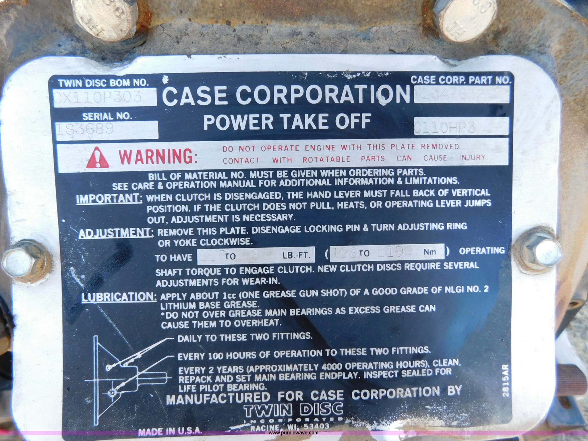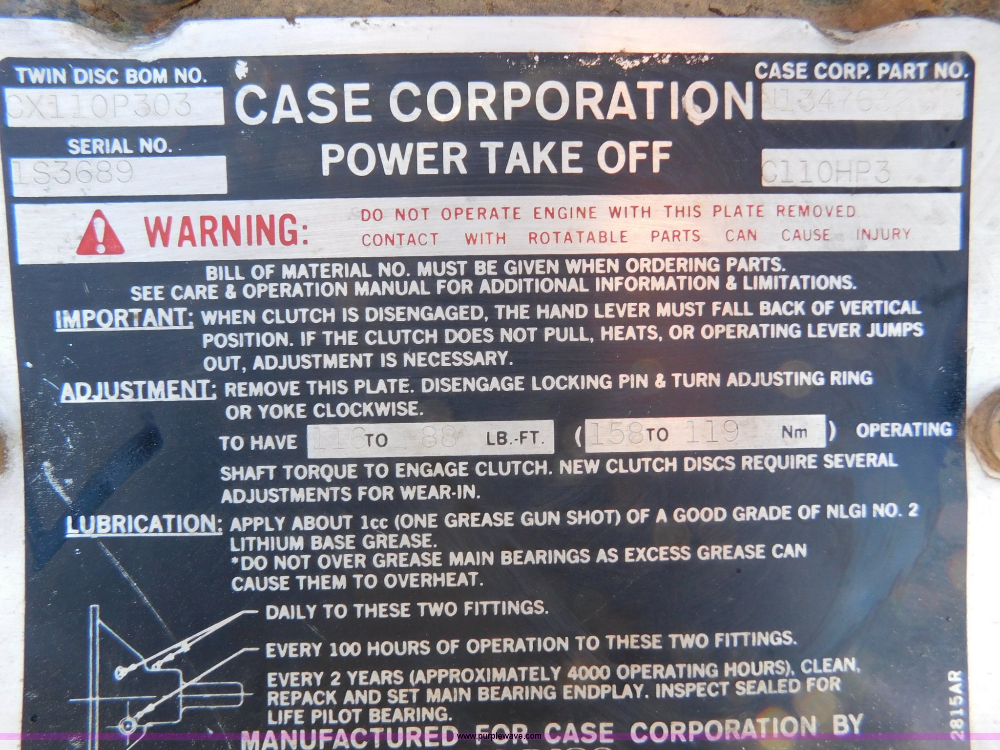 Purple Wave is selling a used Engine in Kansas. This item is a Case 4391T four cylinder diesel irrigation engine with the following: 1,891 hours on meter, Control panel, Case Power take-off, Twin disk, Model CX110P303, Serial 153689, 2 1/4" PTO shaft, Serial DJA0016390