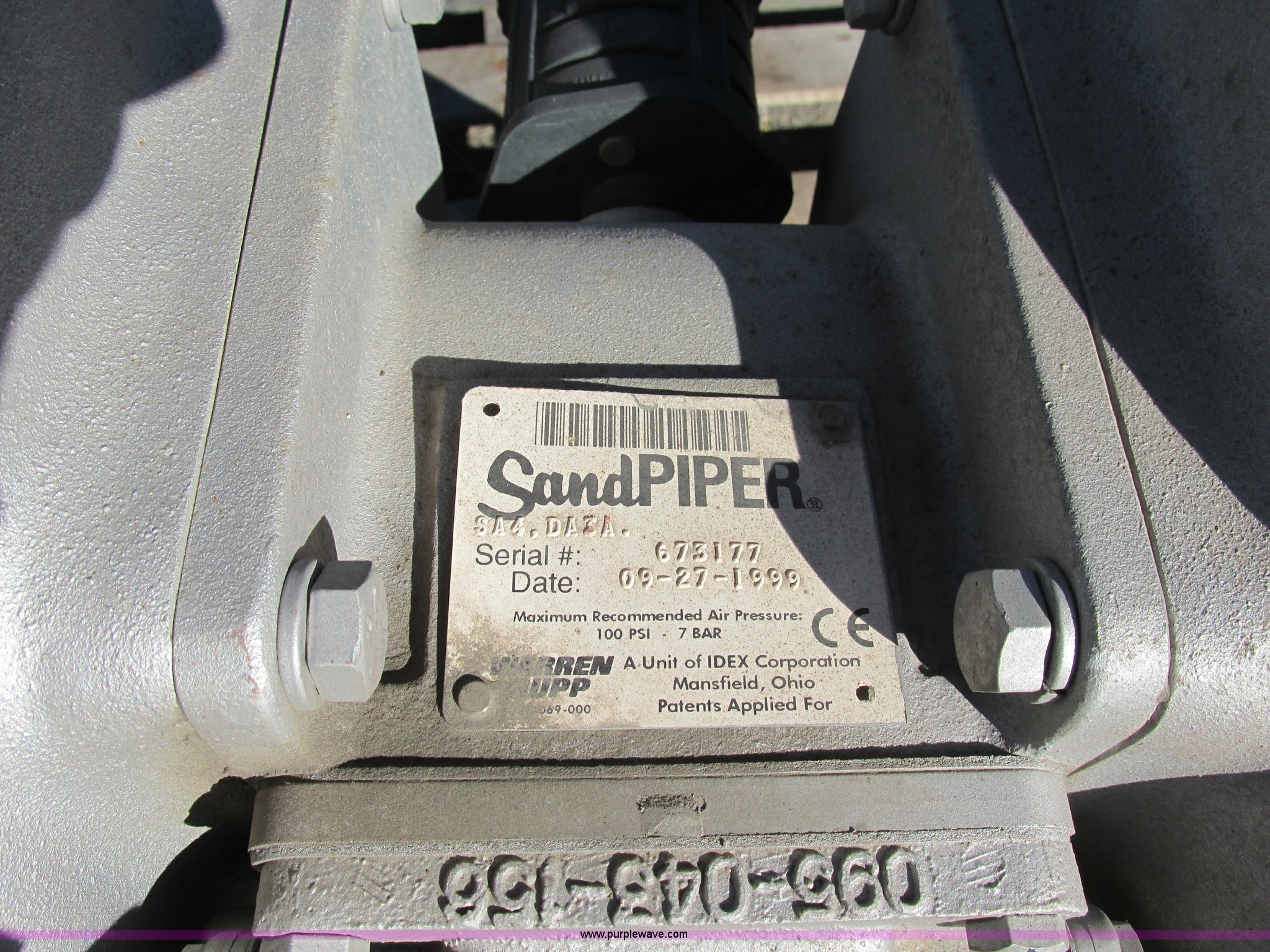 Purple Wave is selling a used Pump in Kansas. This item is a Sand piper pump with the following: Model SA4DA3A, 100 psi, 5" outlet