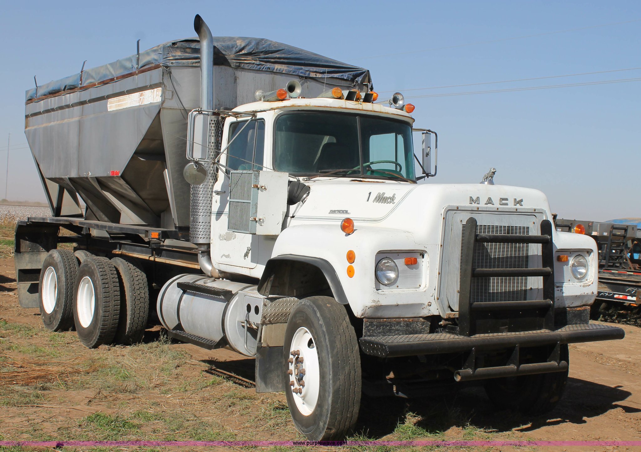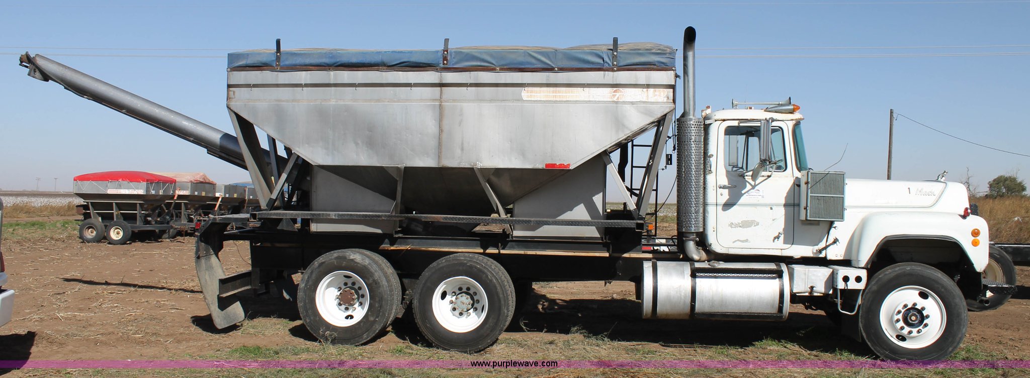 Purple Wave is selling a used Fertilizer or Feed Delivery Truck in Texas. This item is a 1970 Mack RS700C tender truck with the following: 505,801 miles on odometer, 1,142 hours on meter, Six cylinder turbo diesel engine, Eaton Fuller RTO913 13 speed manual transmission, Tandem axle, PTO, Wet kit, AC and heat, AM/FM/cassette, Air suspension seat, Tyler double hopper stainless steel tender box, Hydraulic auger, Manual rollover tarp, Single rear exhaust stack, Dual fuel tanks, Spring suspension, Air brakes, 11R24.5 front tires, 11R22.5 rear tires