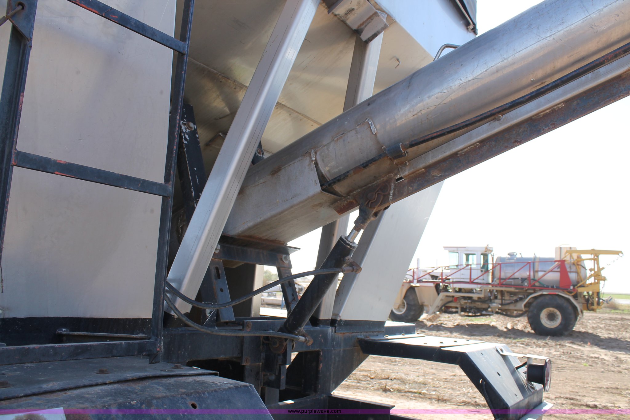 1970 Mack RS700C tender truck. 505,801 miles on odometer, 1,142 hours on meter, Six cylinder turbo diesel engine, Eaton Fuller RTO913 13 speed manual transmission, Tandem axle, PTO, Wet kit, AC and heat, AM/FM/cassette, Air suspension seat, Tyler double hopper stainless steel tender box Hydraulic auger, Manual rollover tarp, Single rear exhaust stack, Dual fuel tanks, Spring suspension, Air brakes, 11R24.5 front tires, 11R22.5 rear tires. RS773LST6323. View equipment video. 2K Agri Service Inc.. 201 Hwy 62/82. Lorenzo, TX 79343