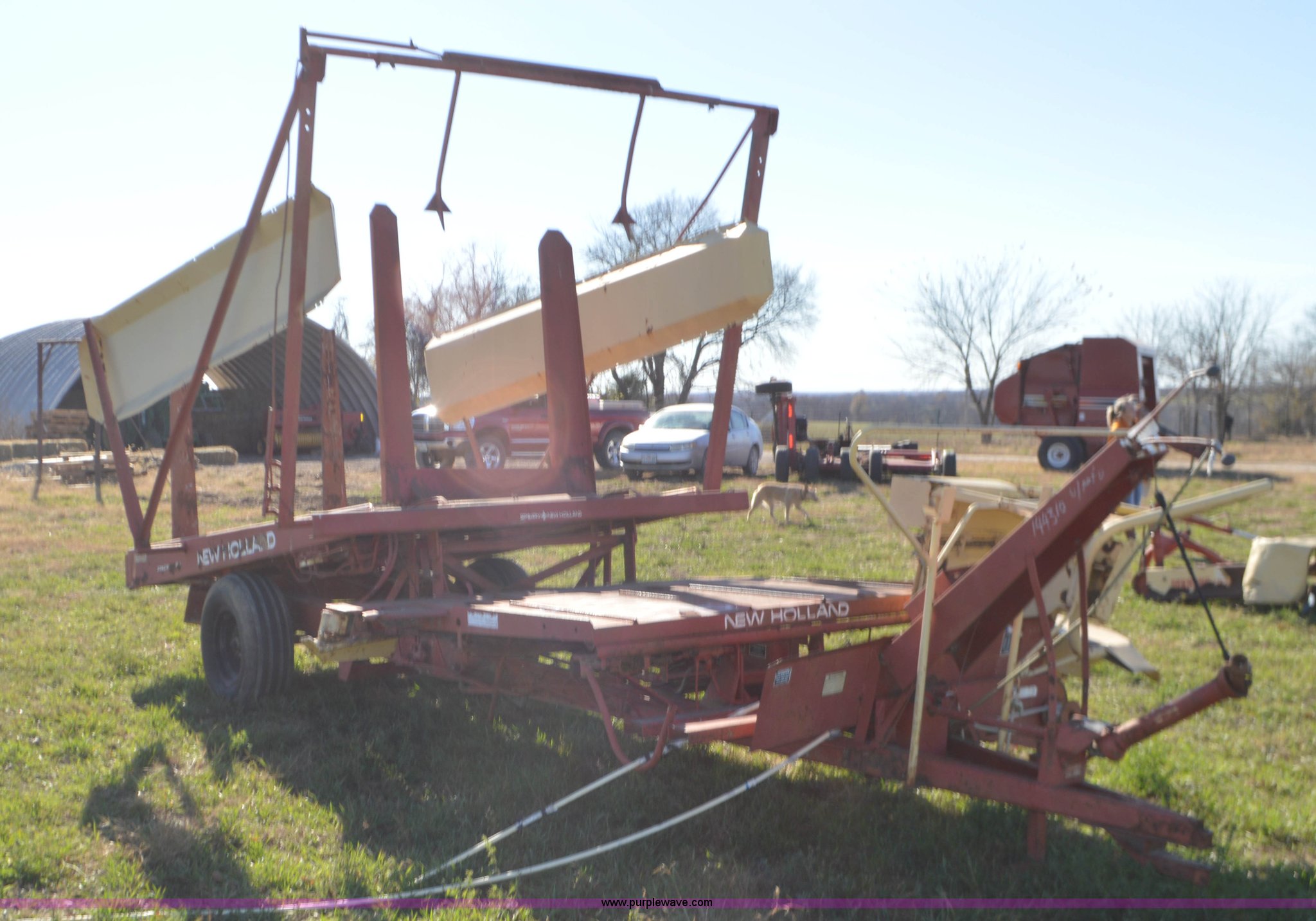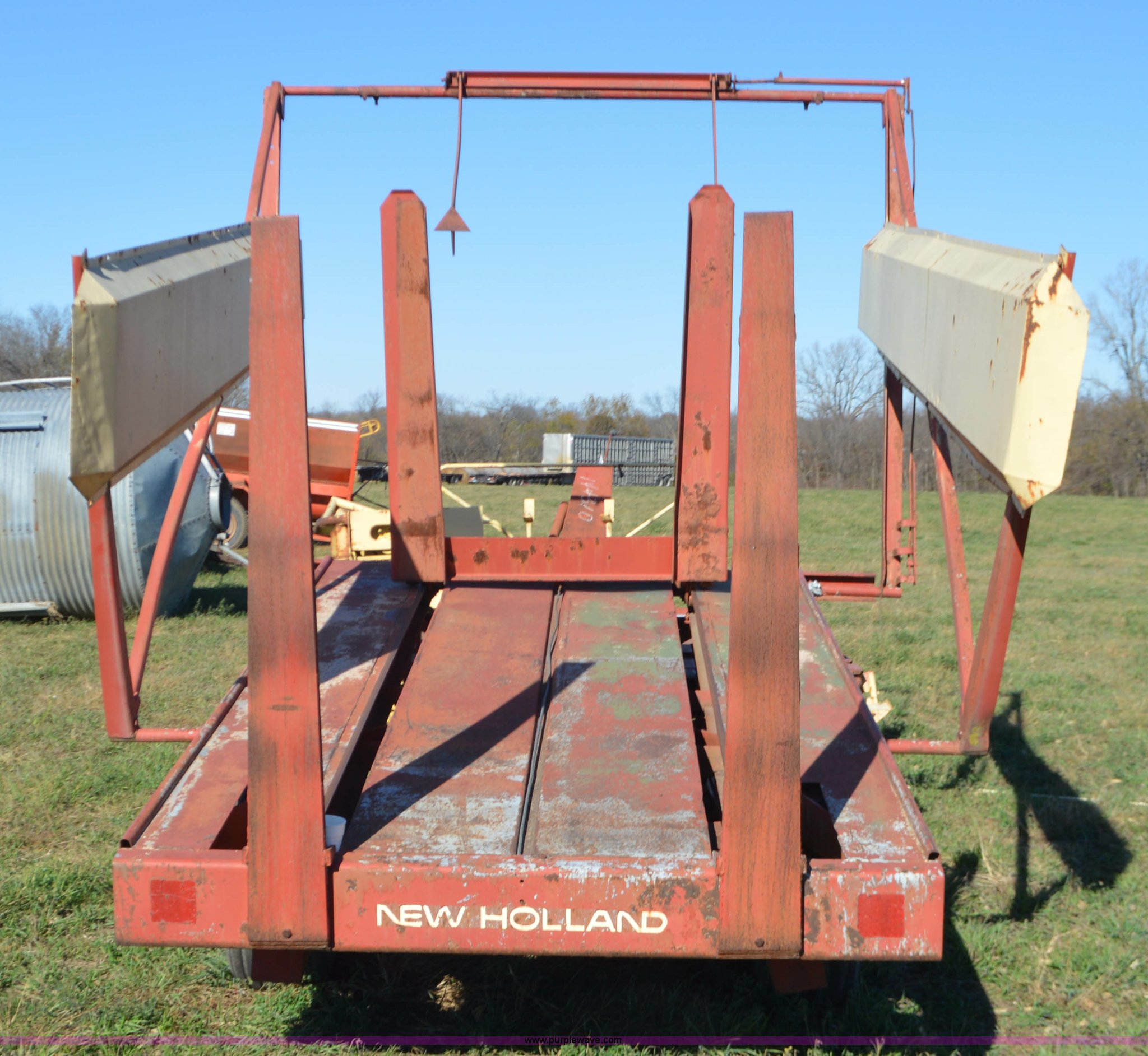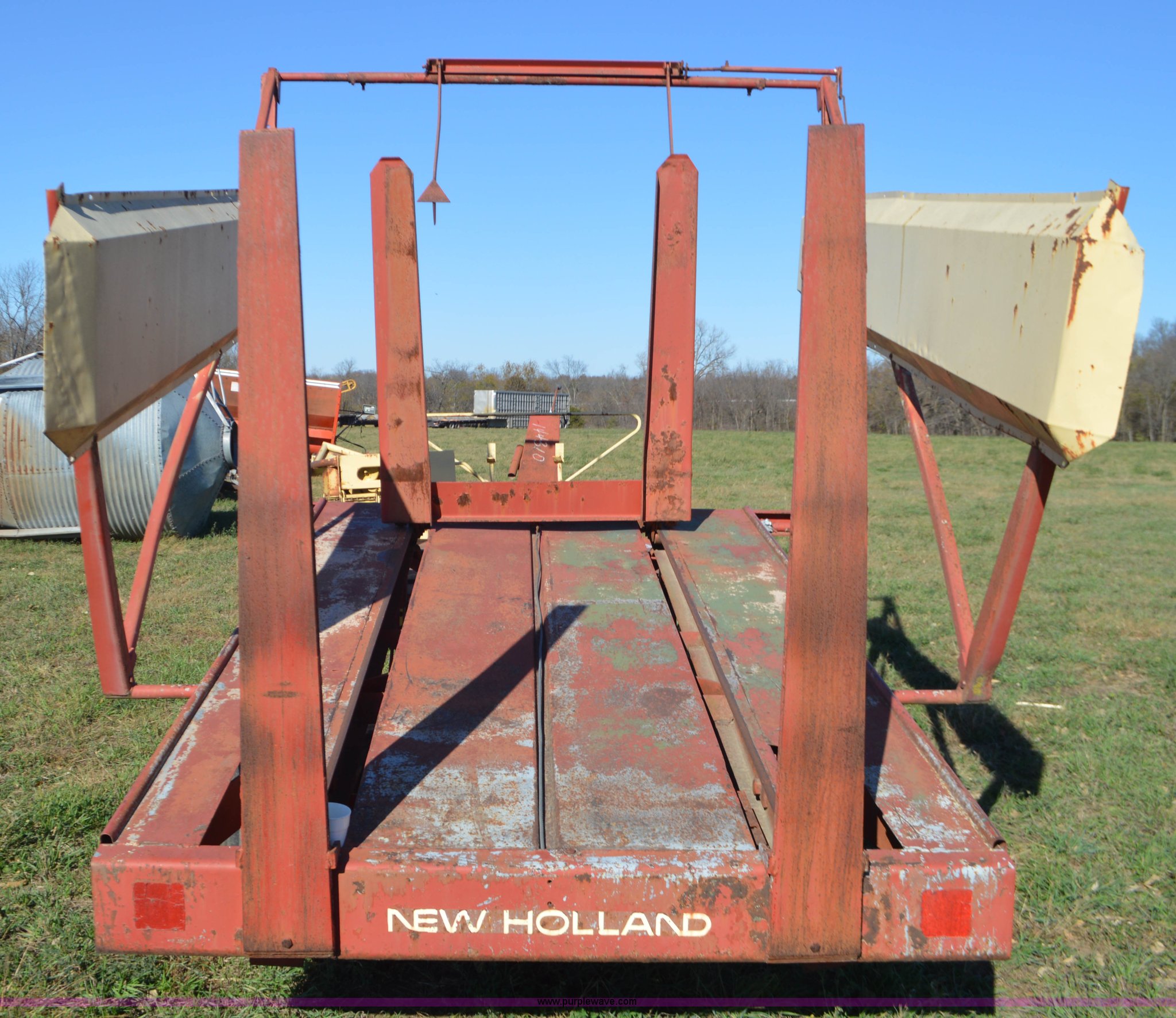 Purple Wave is selling a used Hay Handling in Missouri. This item is a New Holland 1010 Stackliner bale wagon with the following: 540 PTO, Manual jack, Pin hitch, 11-15 tires