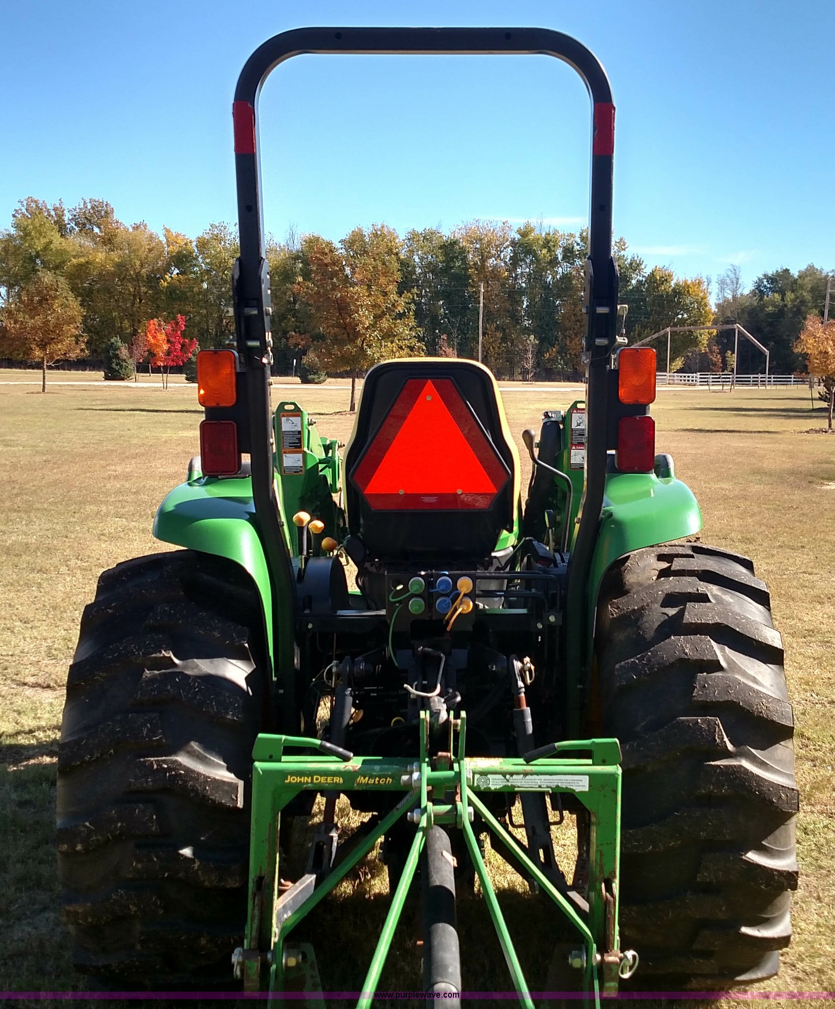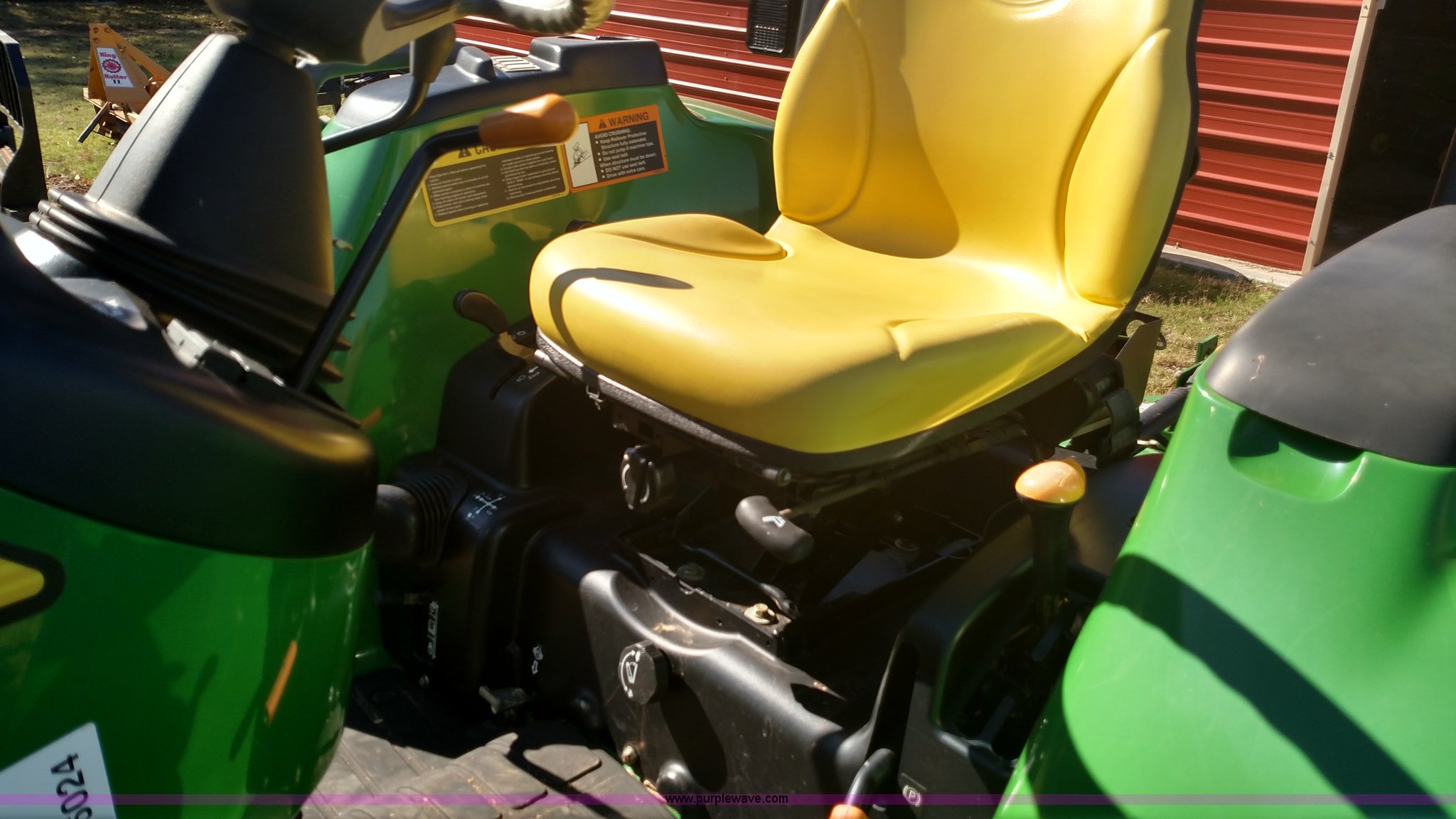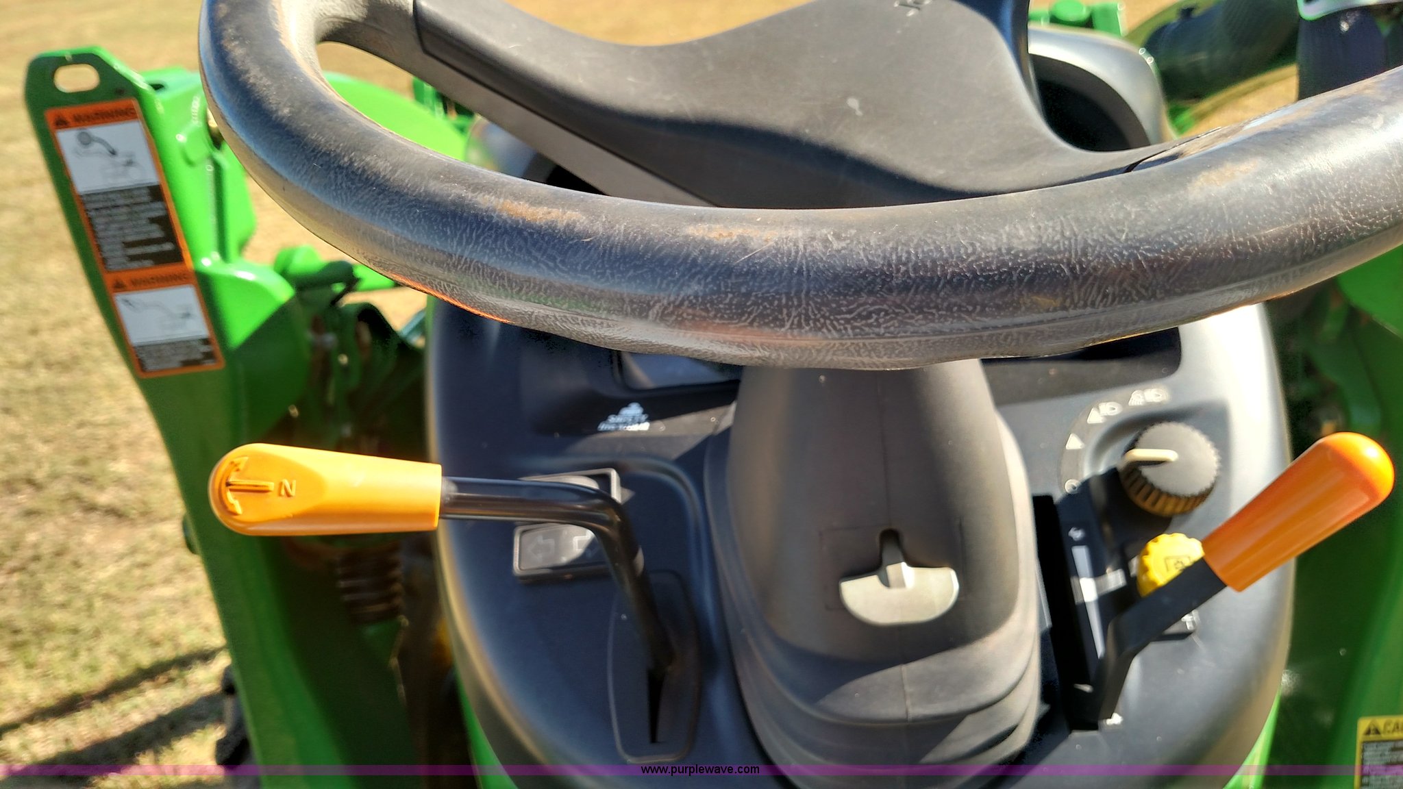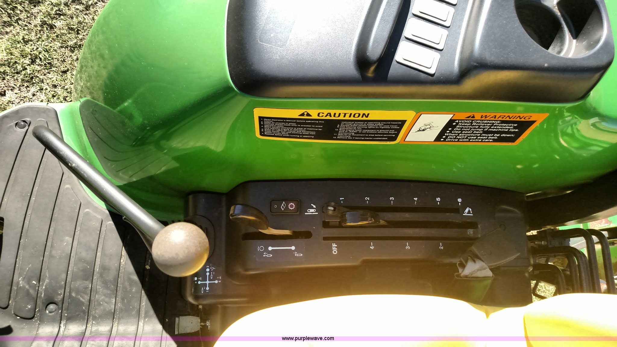 Purple Wave is selling a used Tractor in Oklahoma. This item is a 2006 John Deere 4520 compact utility tractor with the following: 385 hours on meter, Four cylinder turbo diesel engine, 12F-12R gears, Powr Reverser, 400CX loader, skid loader quick attach, Grill guard, C66 Worksite Pro bucket, Joystick loader control, Three point, Quick attach, 540 PTO, (3) rear hydraulic remotes, Wheel weights, 10-16.5 front tires, 17.5L-24 rear tires, Serial LV4520P347227
