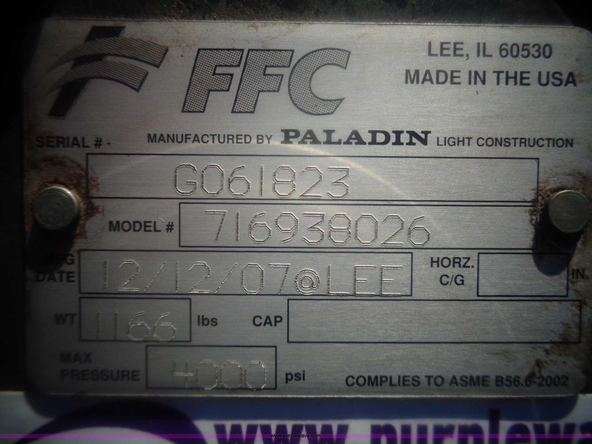 2007 New Holland snow blower skid steer attachment. Model 716938026, 7'W, 4,000 psi max pressure, 1,166 lbs. base operating weight. 4600 South Arden. Sioux Falls, SD 57103