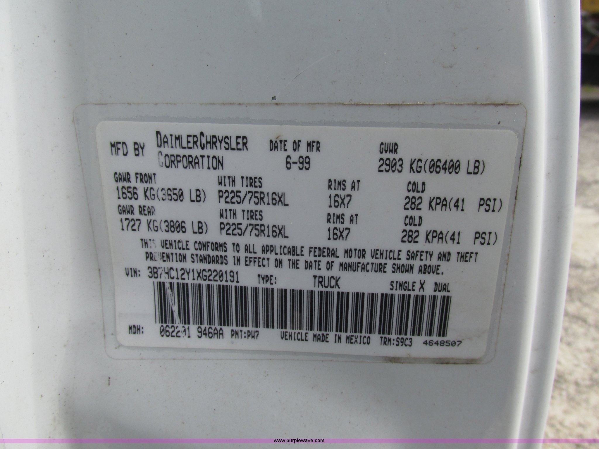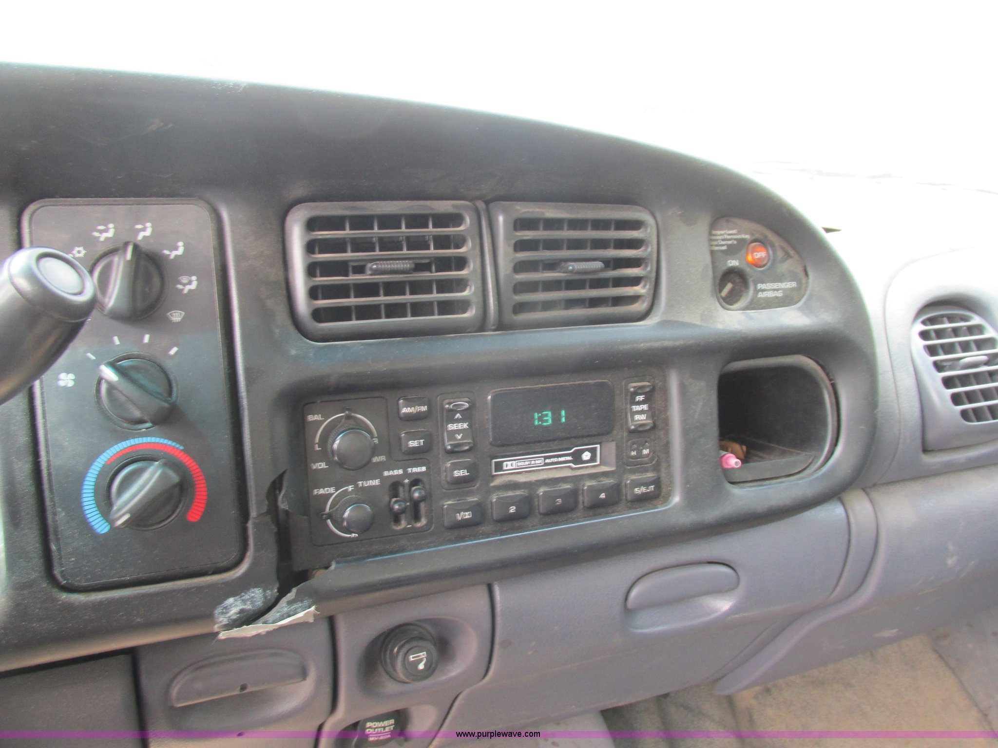 Purple Wave is selling a used 1/2 Ton Pickup or Van in Missouri. This item is a 1999 Dodge Ram 1500 Club Cab pickup truck with the following: 100,020 miles on odometer, 5.2L V8 OHV 16V gas engine, Automatic transmission, AC and heat, AM/FM, Manual windows and locks, LT225/75R16 tires, Interior/exterior cosmetic damage, Dash rust