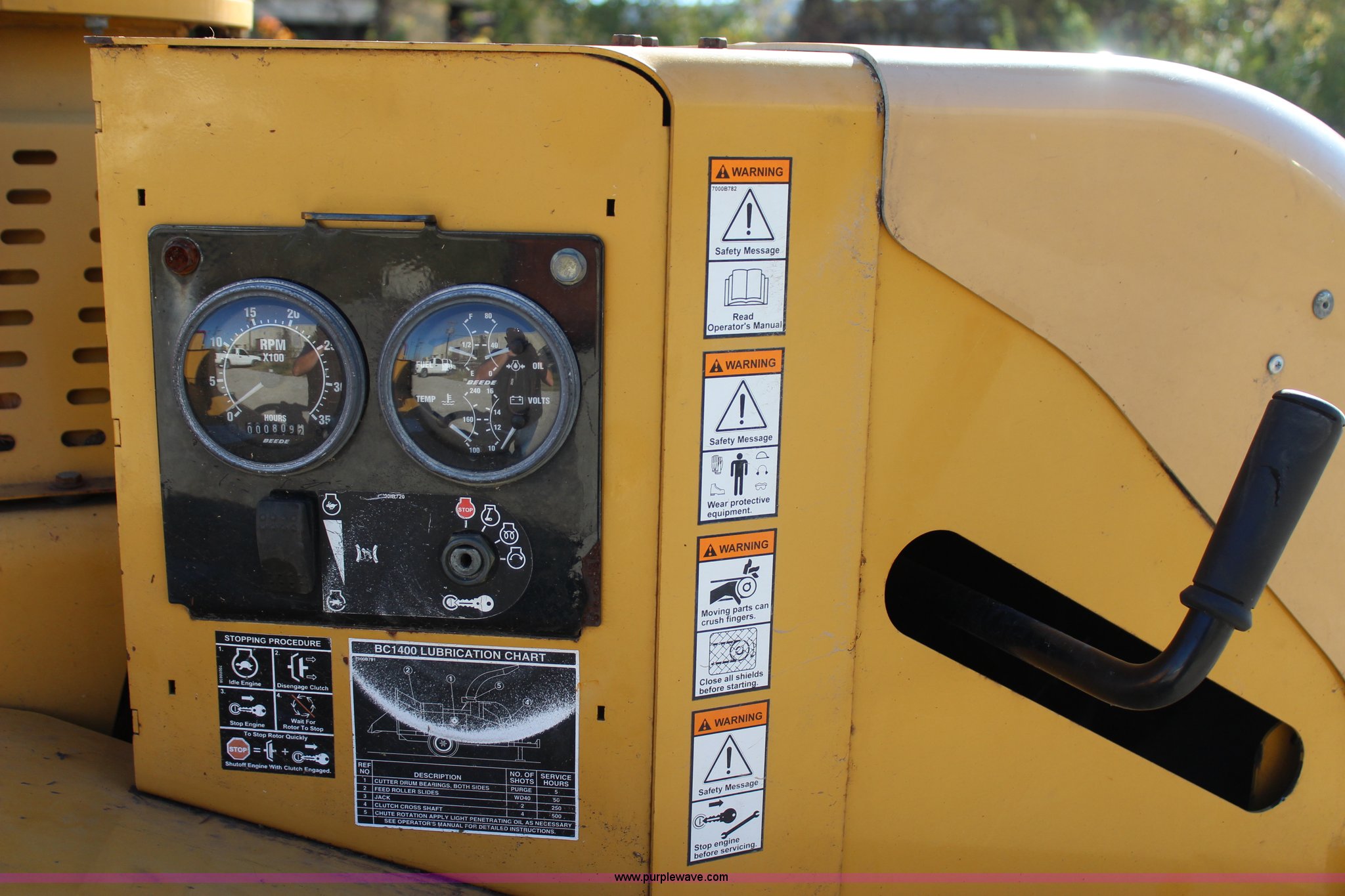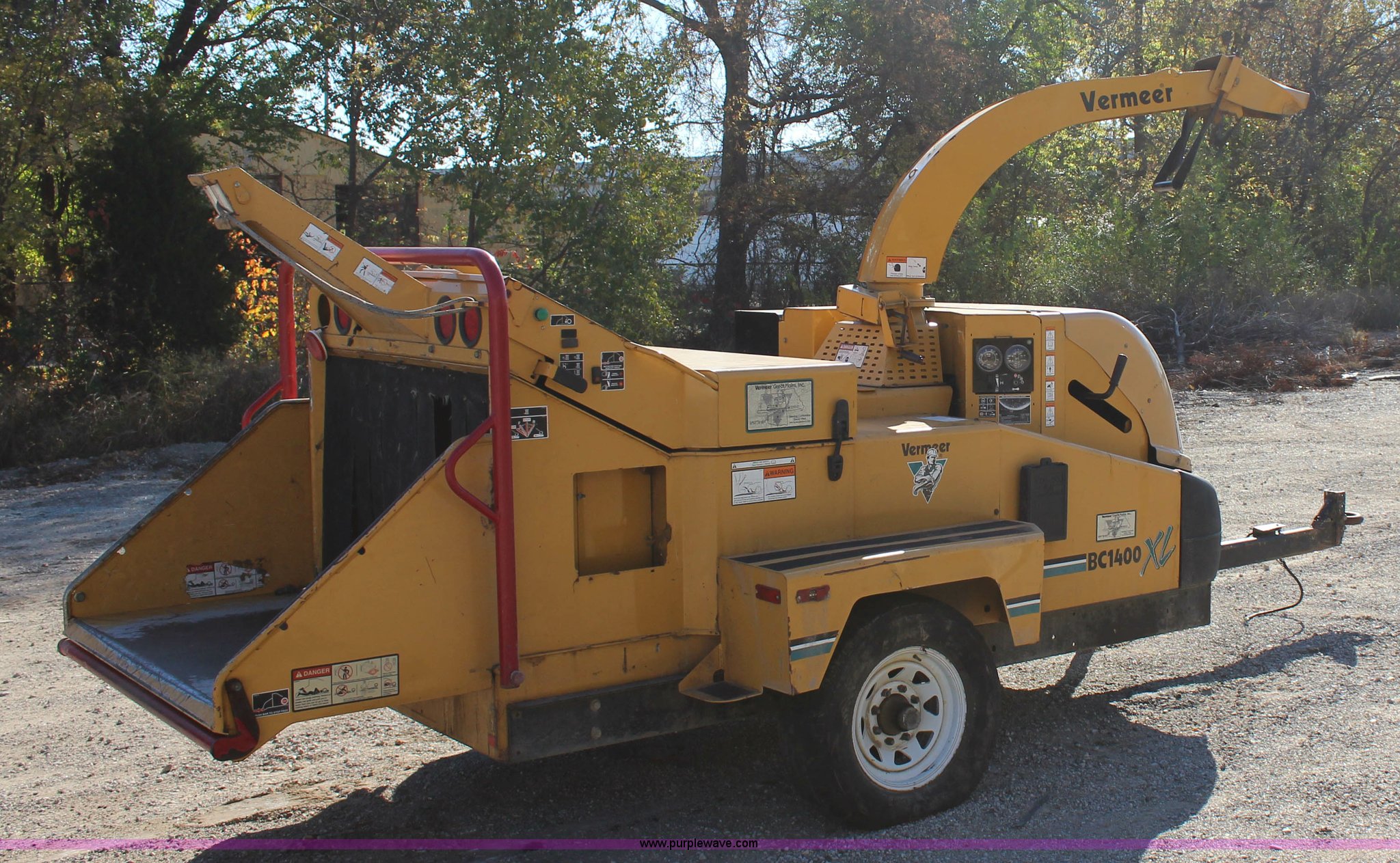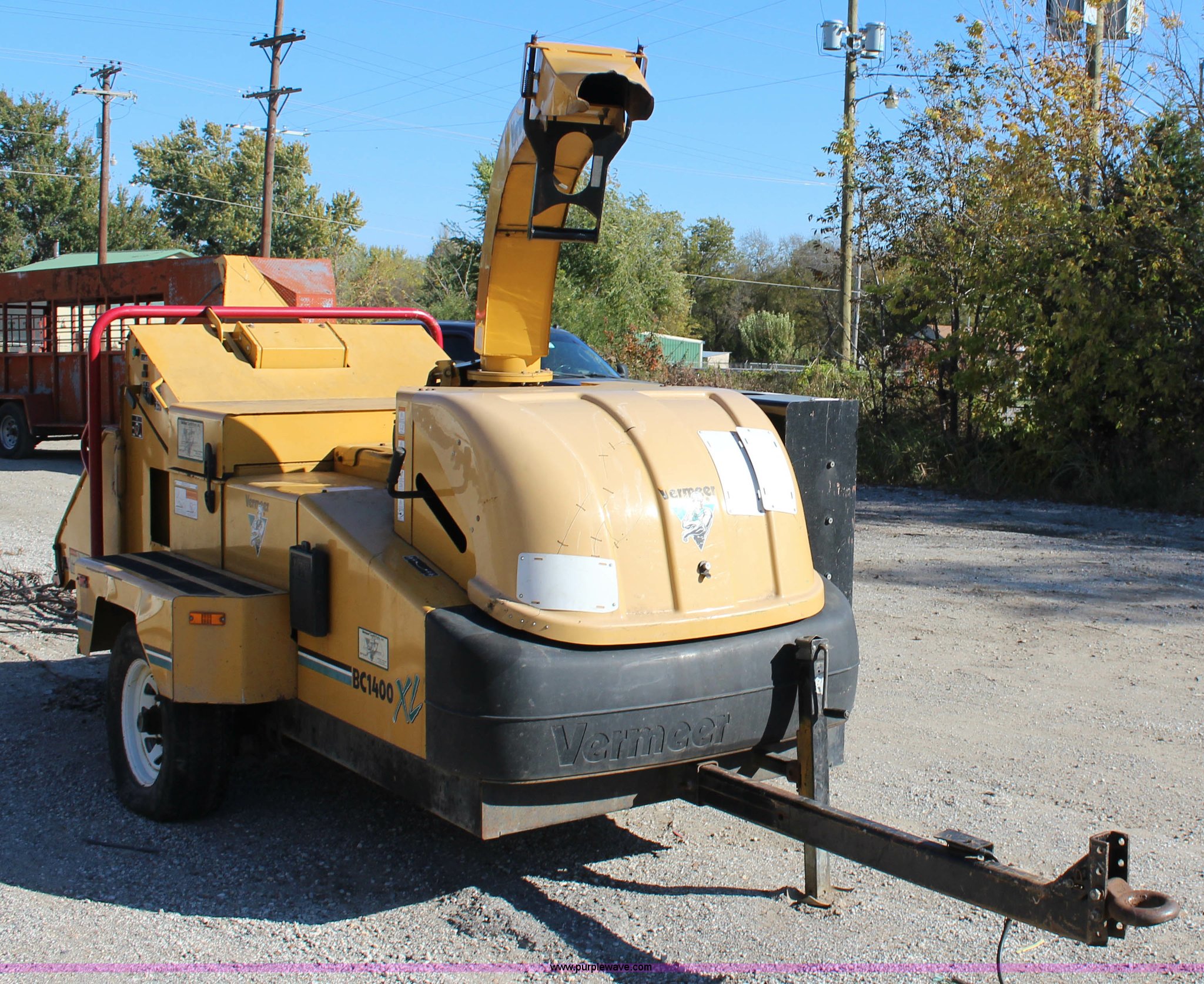 Purple Wave is selling a used Wood Chipper or Stump Grinder in Oklahoma. This item is a 2005 Vermeer BC1400 chipper with the following: 809 hours on meter, Caterpillar 3054C diesel engine, Smart feed control system, Hand operated chute controls, Winch, 200 lbs maximum capacity, 150'L cable, Front mounted jack stand, Pin hitch, LT265/75R16 tires, GVWR 3,500 lbs, Operator's manual