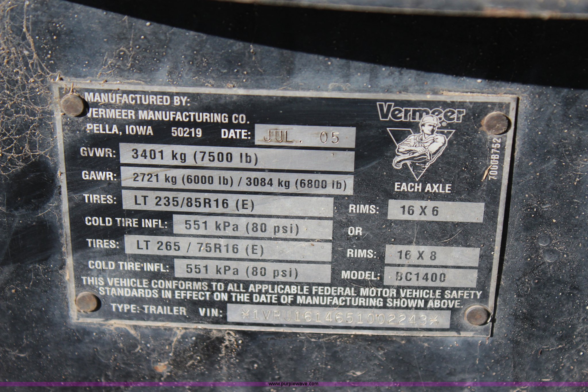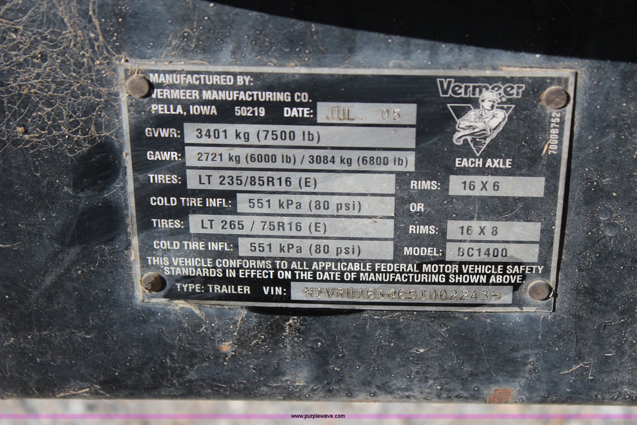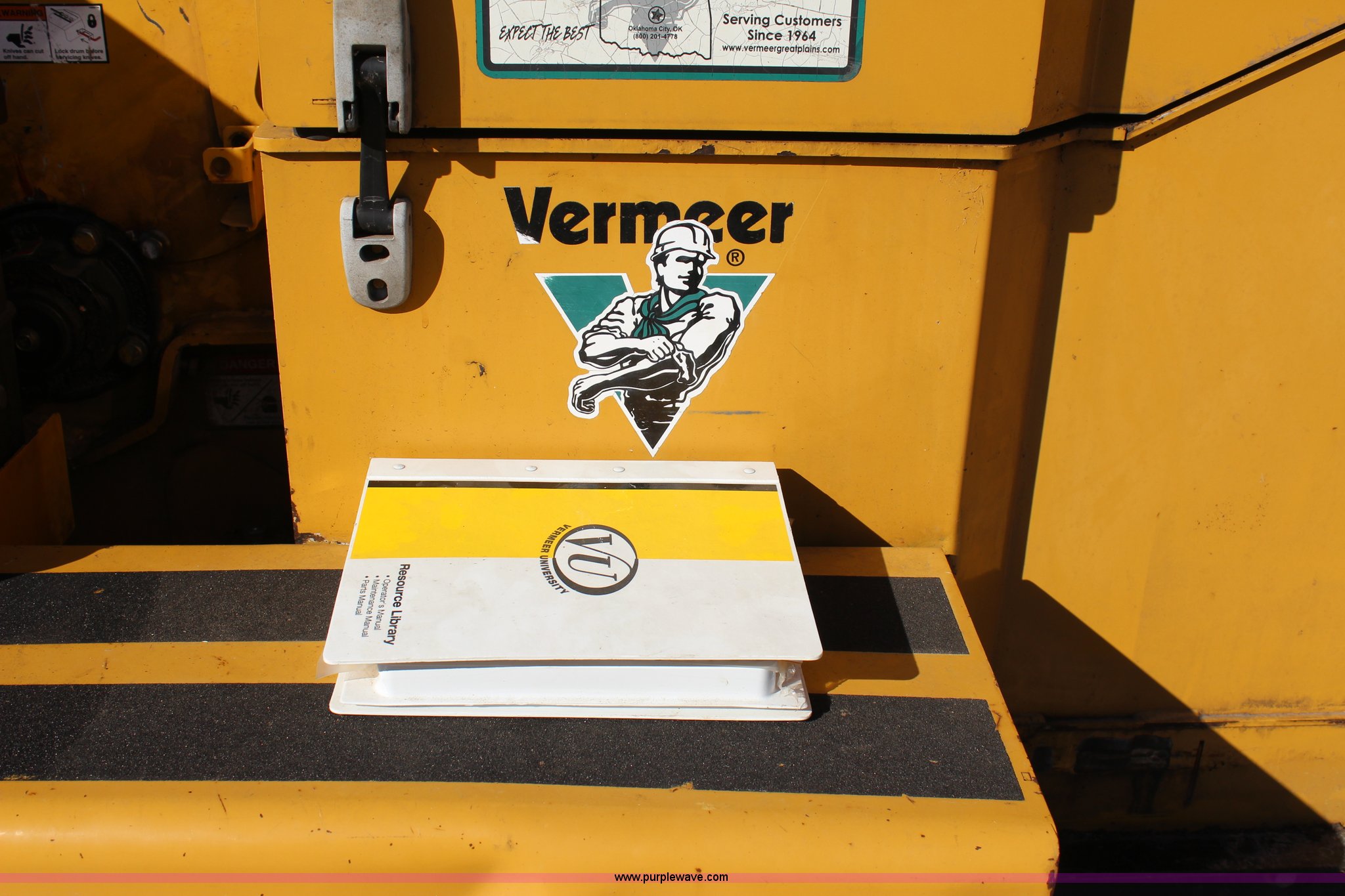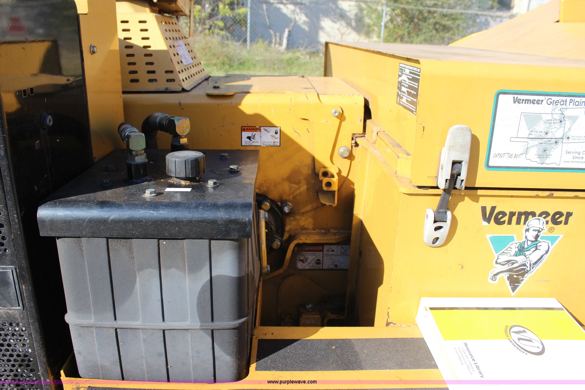 Purple Wave is selling a used Wood Chipper or Stump Grinder in Oklahoma. This item is a 2005 Vermeer BC1400 chipper with the following: 809 hours on meter, Caterpillar 3054C diesel engine, Smart feed control system, Hand operated chute controls, Winch, 200 lbs maximum capacity, 150'L cable, Front mounted jack stand, Pin hitch, LT265/75R16 tires, GVWR 3,500 lbs, Operator's manual