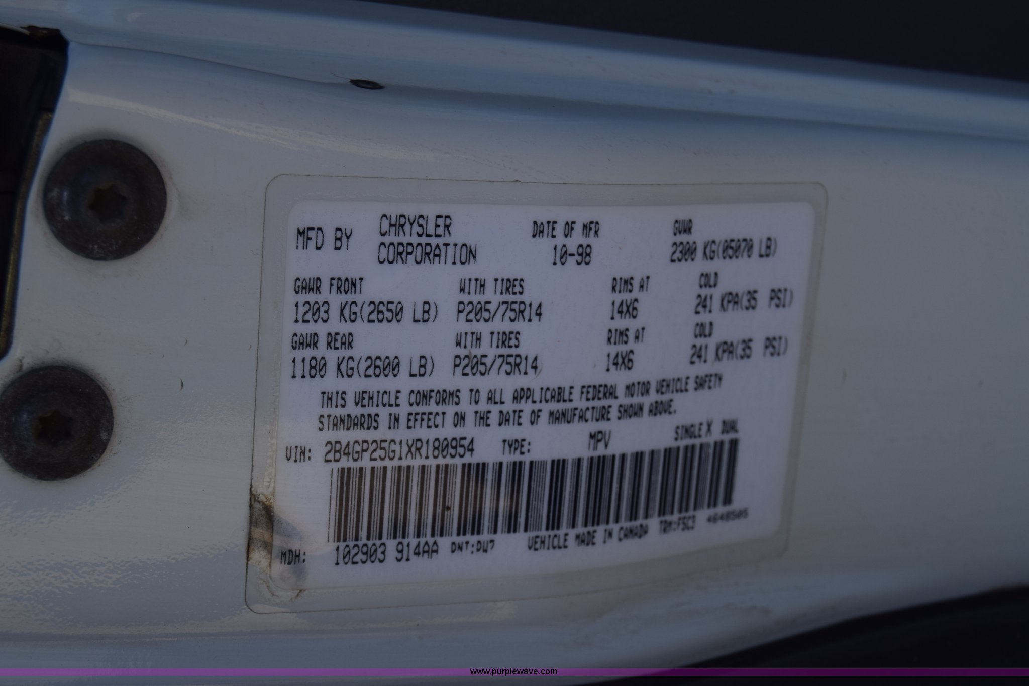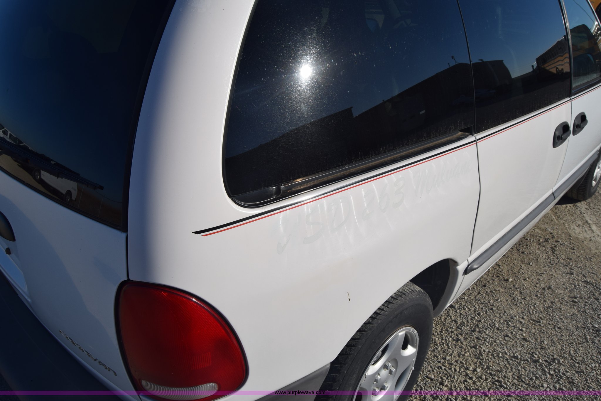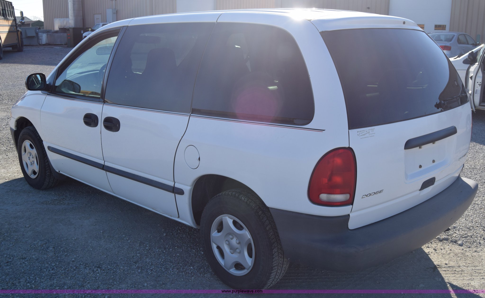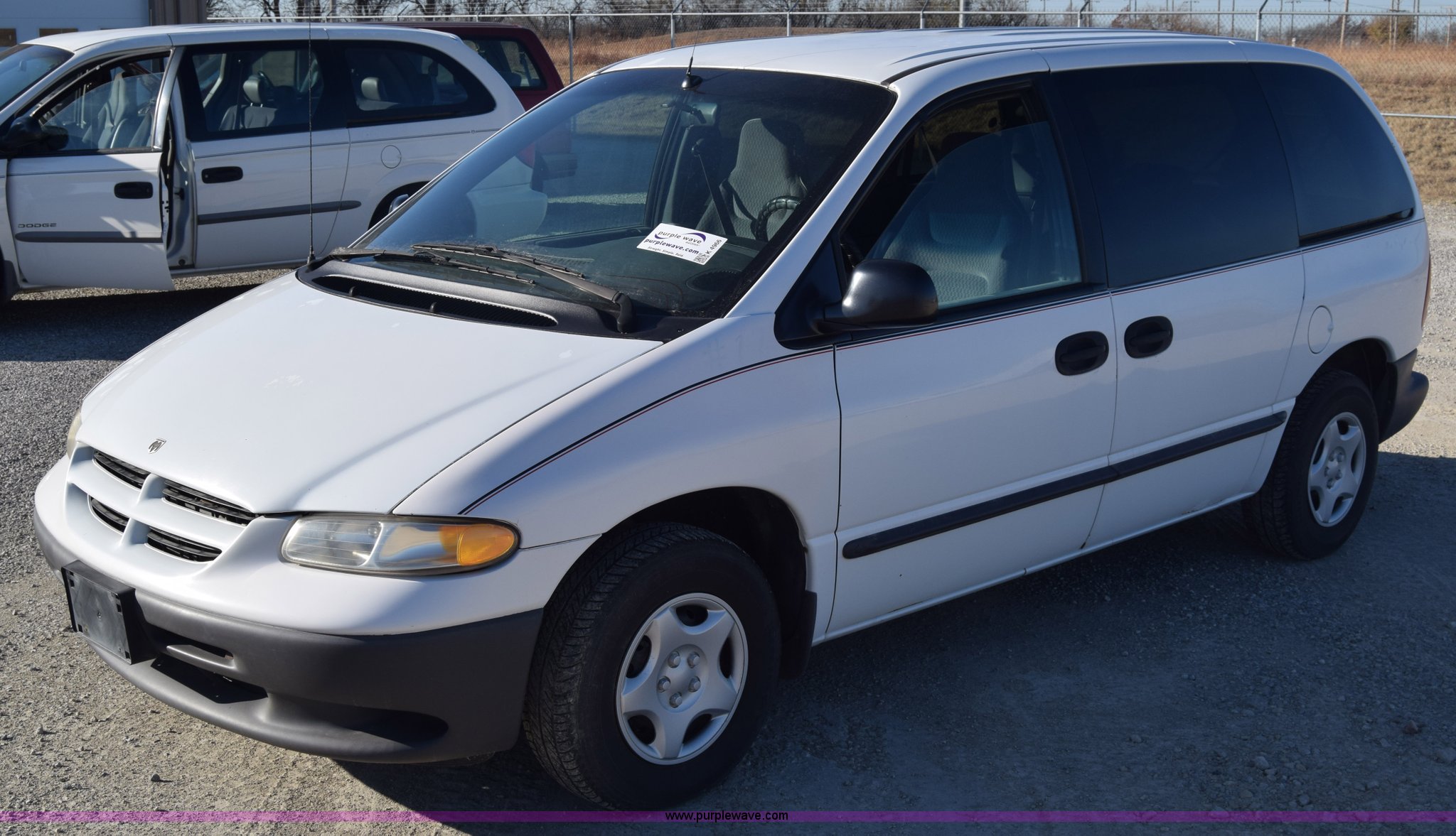Purple Wave is selling a used Passenger Vehicle in Kansas. This item is a 1999 Dodge Caravan van with the following: 122,109 miles on odometer, 3.3L V6 OHV 12V gas engine, Automatic transmission, AC and heat, Cruise, AM/FM, Manual windows and locks, Cloth interior, 205/75R14 tires, Interior/exterior cosmetic damage, Unit# V-17